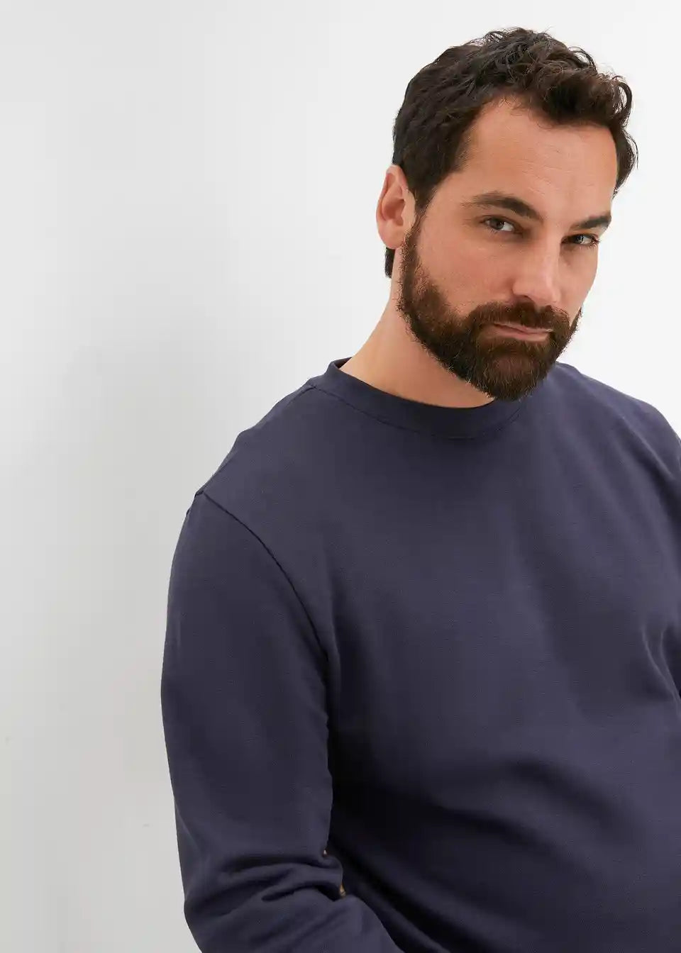 Športni pulover z okroglim izrezom, z notranje strani mehko brušen