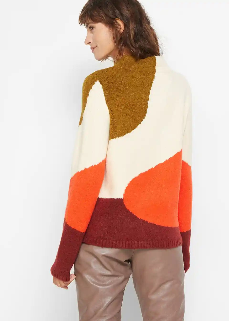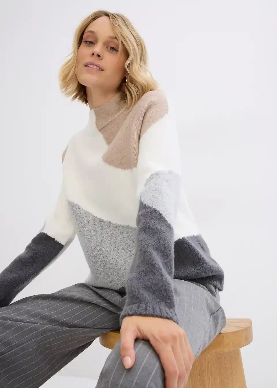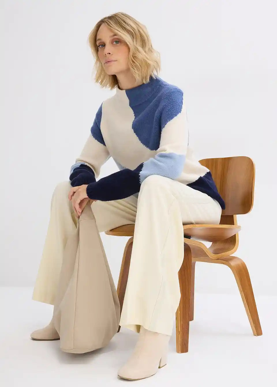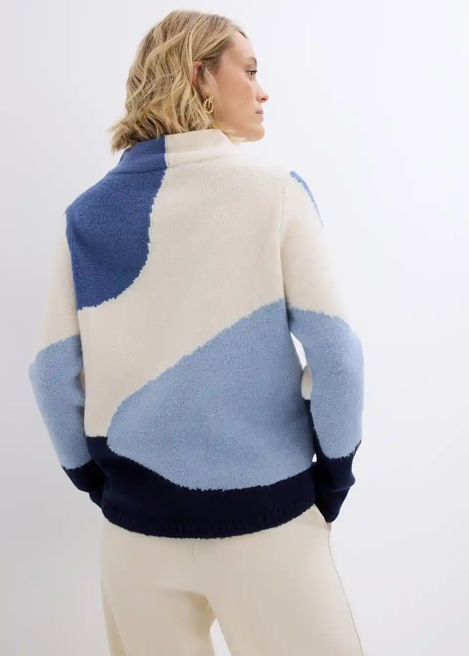 Udoben pulover z ohlapnim krojem in stoječim ovratnikom.