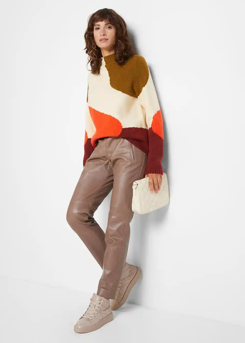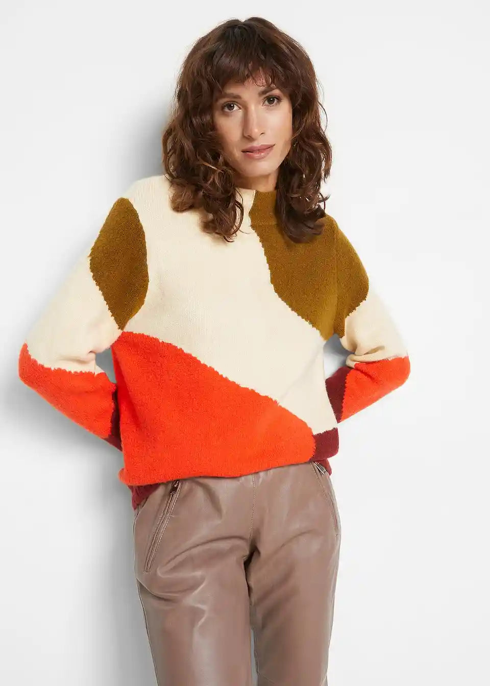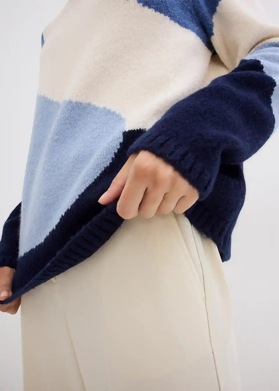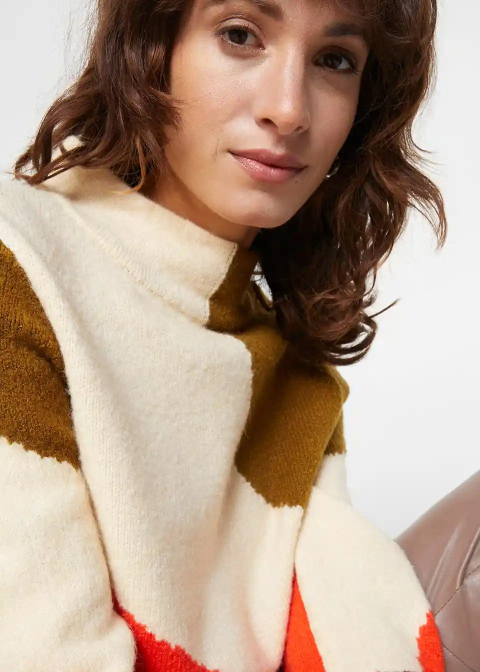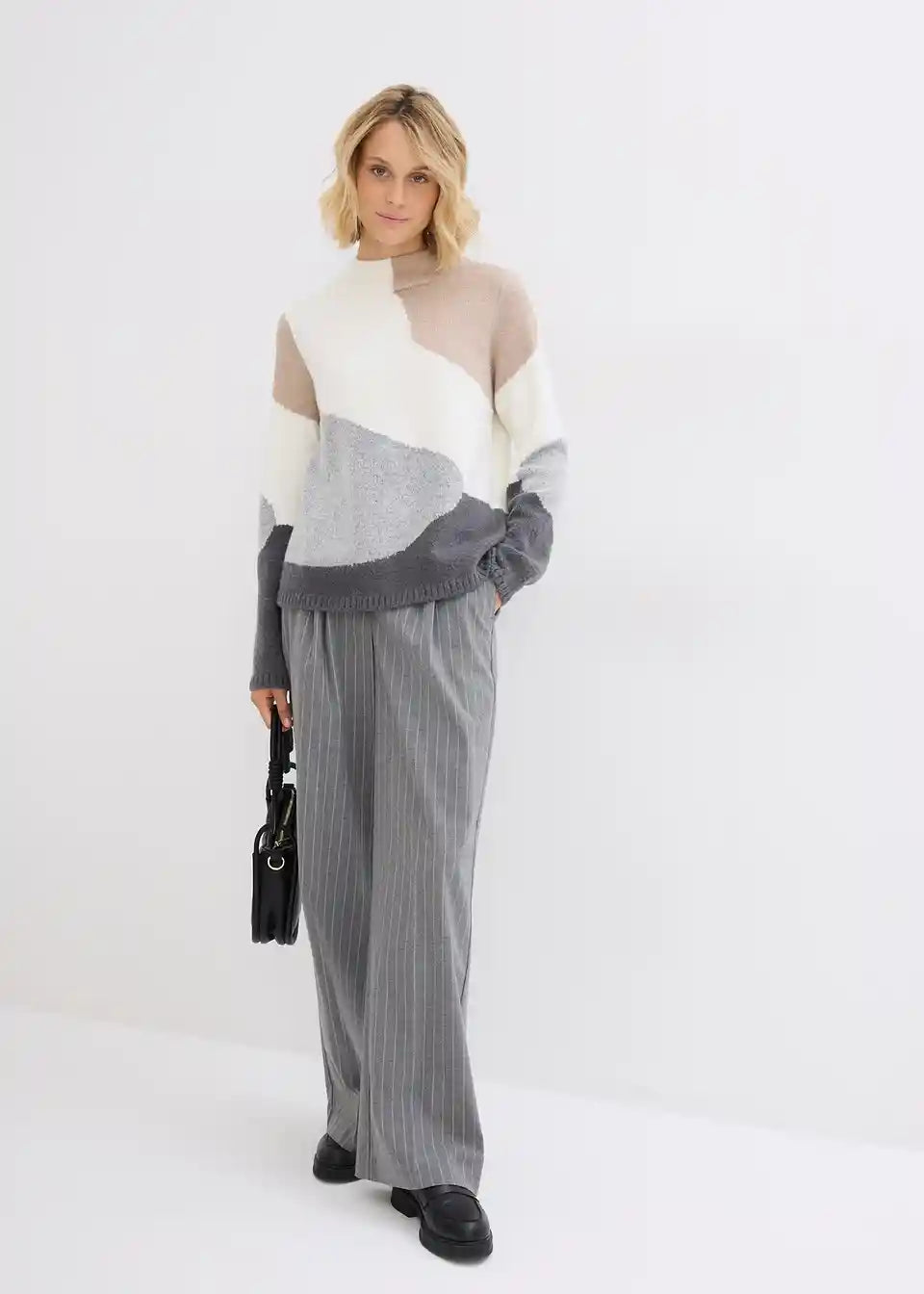 Udoben pulover z ohlapnim krojem in stoječim ovratnikom.