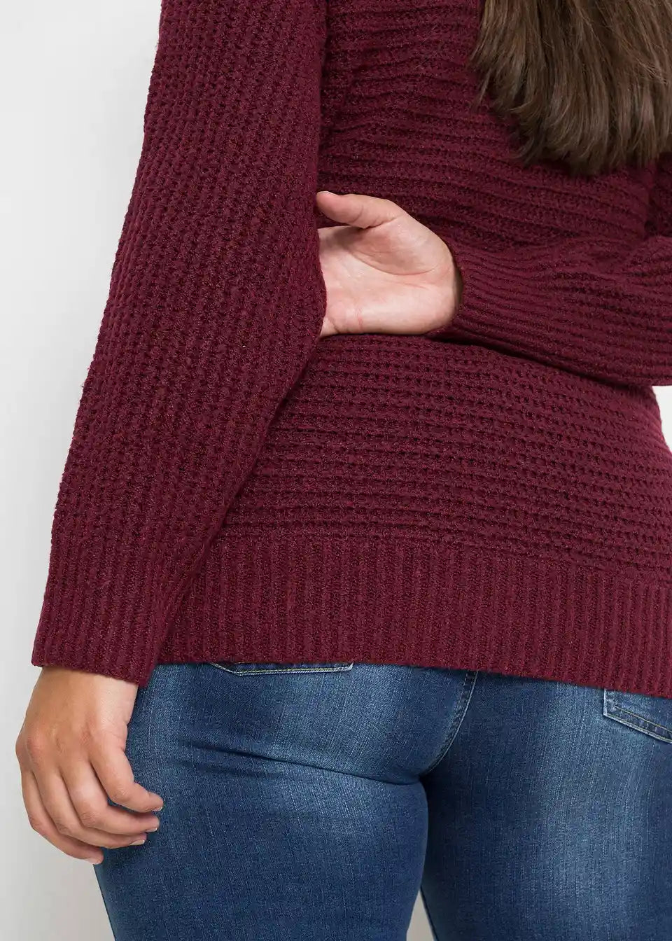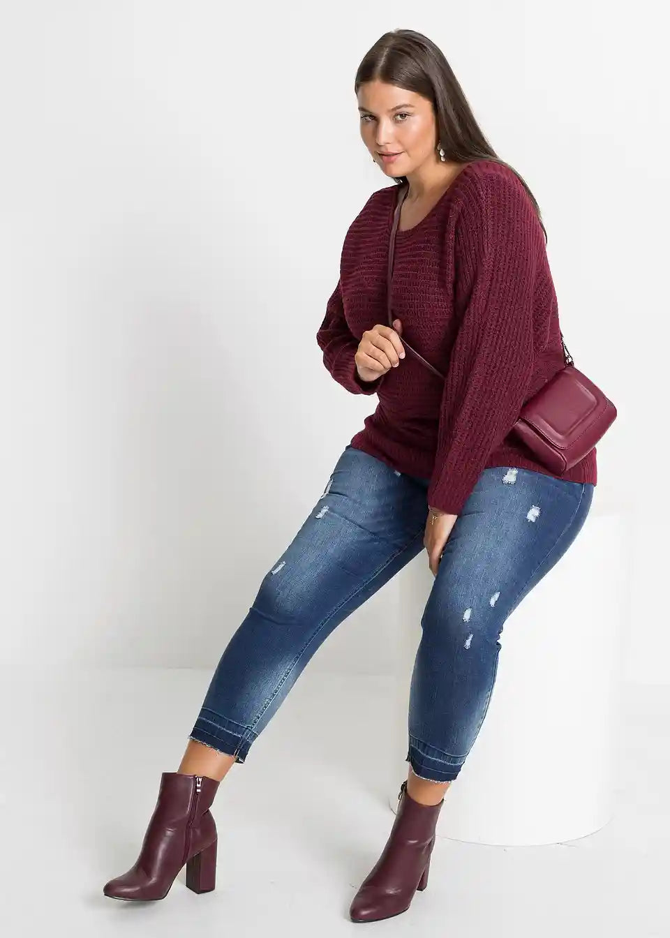 Različni elementi prispevajo k brezčasni sproščenosti in visokemu udobju tega privlačnega puloverja. Grob plet daje temu posebnemu modelu z ladijskim izrezom moden videz. Ramena se brezšivno povezujejo v široko krojene netopirjeve rokave. Kul stil lahko dosežete s pajkicami iz imitacije usnja in čevlji z živalskim potiskom. Tesen kroj kavbojk in elegantni čevlji z visoko peto prav tako odlično dopolnjujejo ta pulover z širokimi rebrastimi obrobami na izrezu, rokavih in robu iz kolekcije BODYFLIRT.