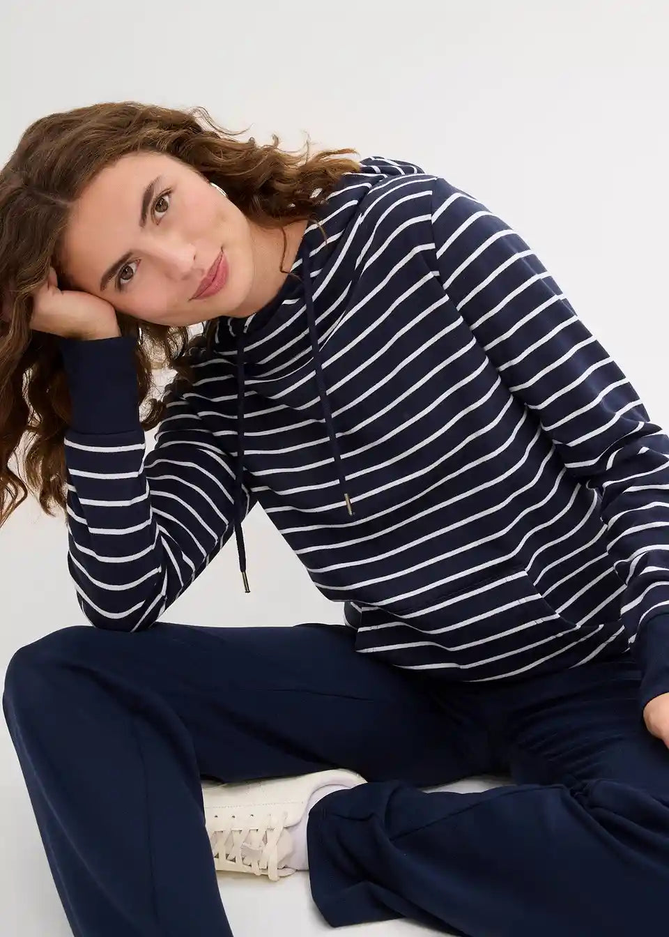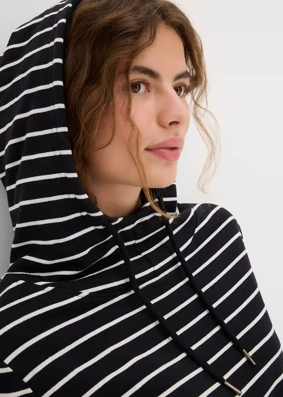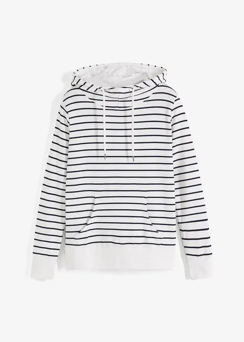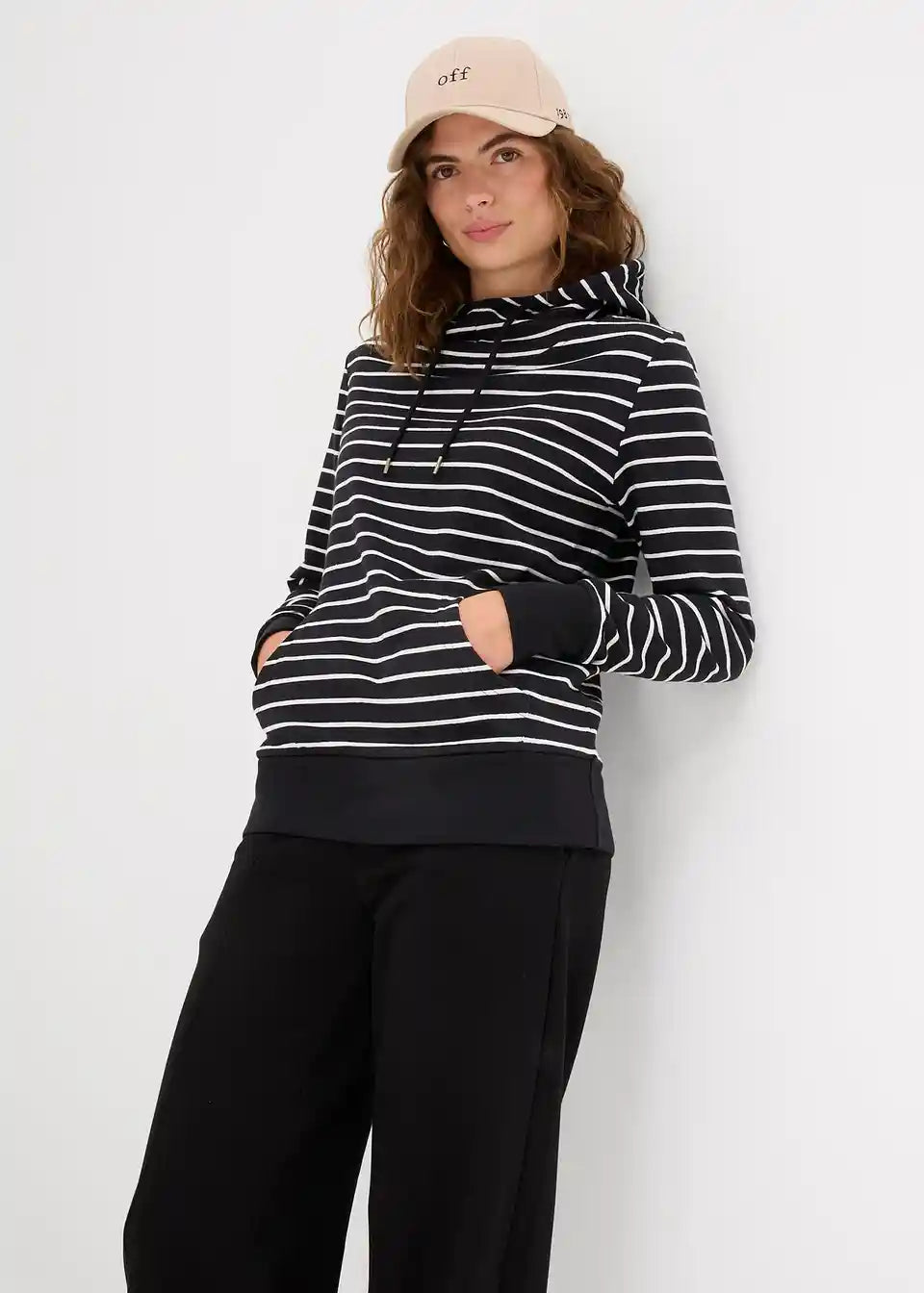 Vrsta pokončnega ovratnika povezuje ta pulover s kapuco. Izgleda trendovsko in povečuje udobje. Lep model s tipično vrvico in kenguru žepom ima elastične manšete za dober oprijem. Zelo sproščeno krojeni pulover RAINBOW se lepo ujema z vsakršnimi kavbojkami. Superge v srebrni ali neonski barvi poskrbijo za poudarke.