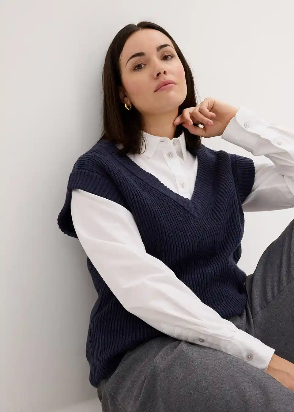 Priložnostno krojen pulover brez rokavov z V-izrezom