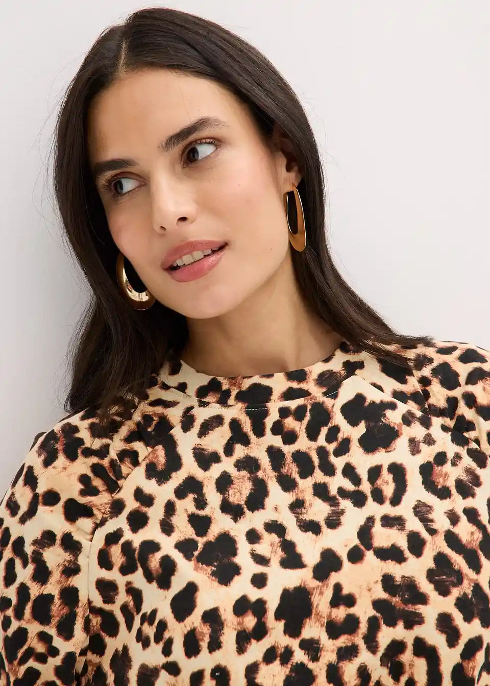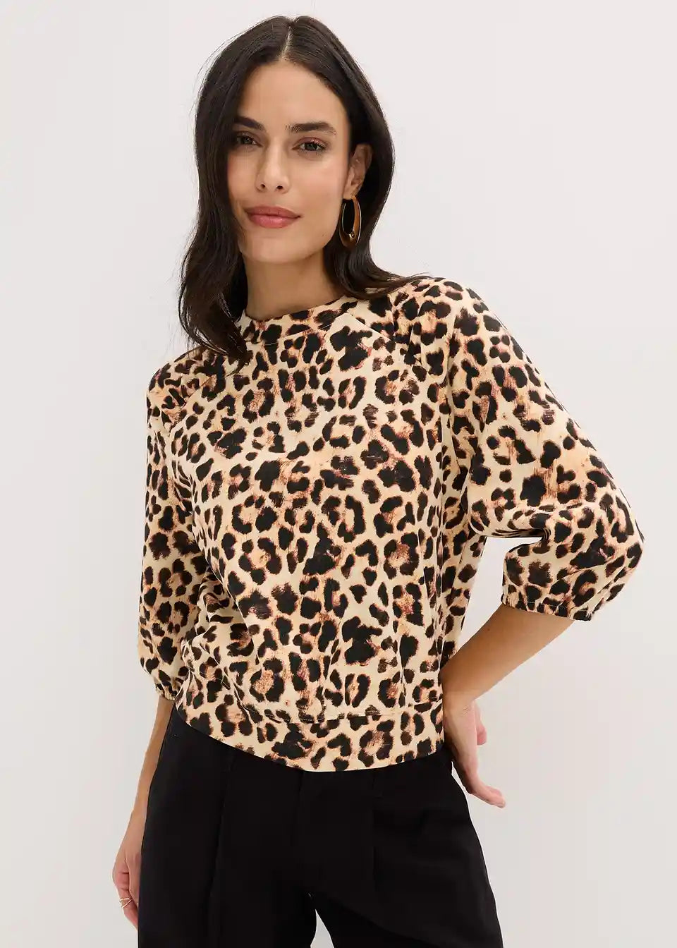 Moderen pulover iz čistega ekološkega bombaža z leopardjim potiskom