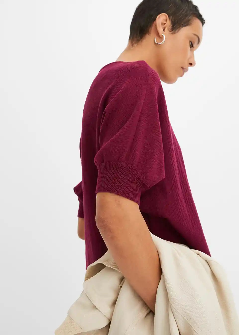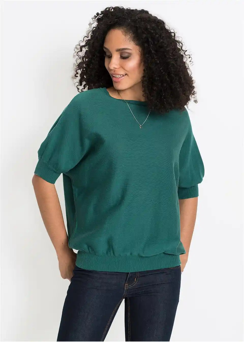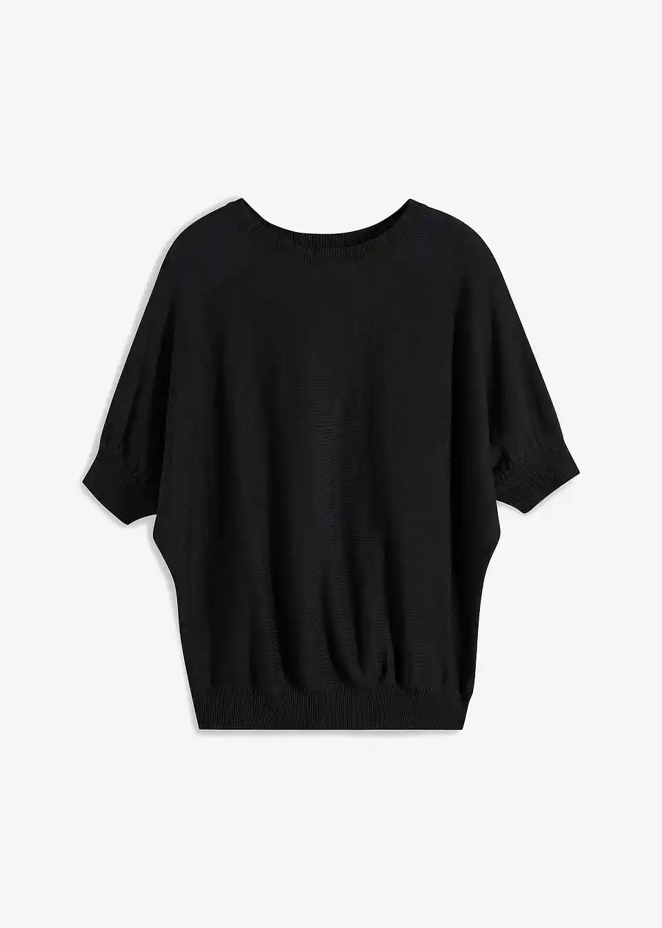 Kako lahko preprosto oblačilo s finimi detajli dobi poseben značaj, prikazuje ta privlačen pulover znamke BODYFLIRT. Širok okrogel izrez poudarja dekolte. Netopirski rokavi dajejo modelu igriv in hkrati ležeren videz. Rebrasti robovi na spodnjem robu in na koncu kratkih rokavov ustvarjajo kontrast. Ta ljubek pulover je odlično kombinabilen. Ne glede na to, ali ga nosite z legicami, najljubšimi kavbojkami ali usnjenim krilom, ta prijeten model bo vašemu outfitu dal preprosto osnovo.