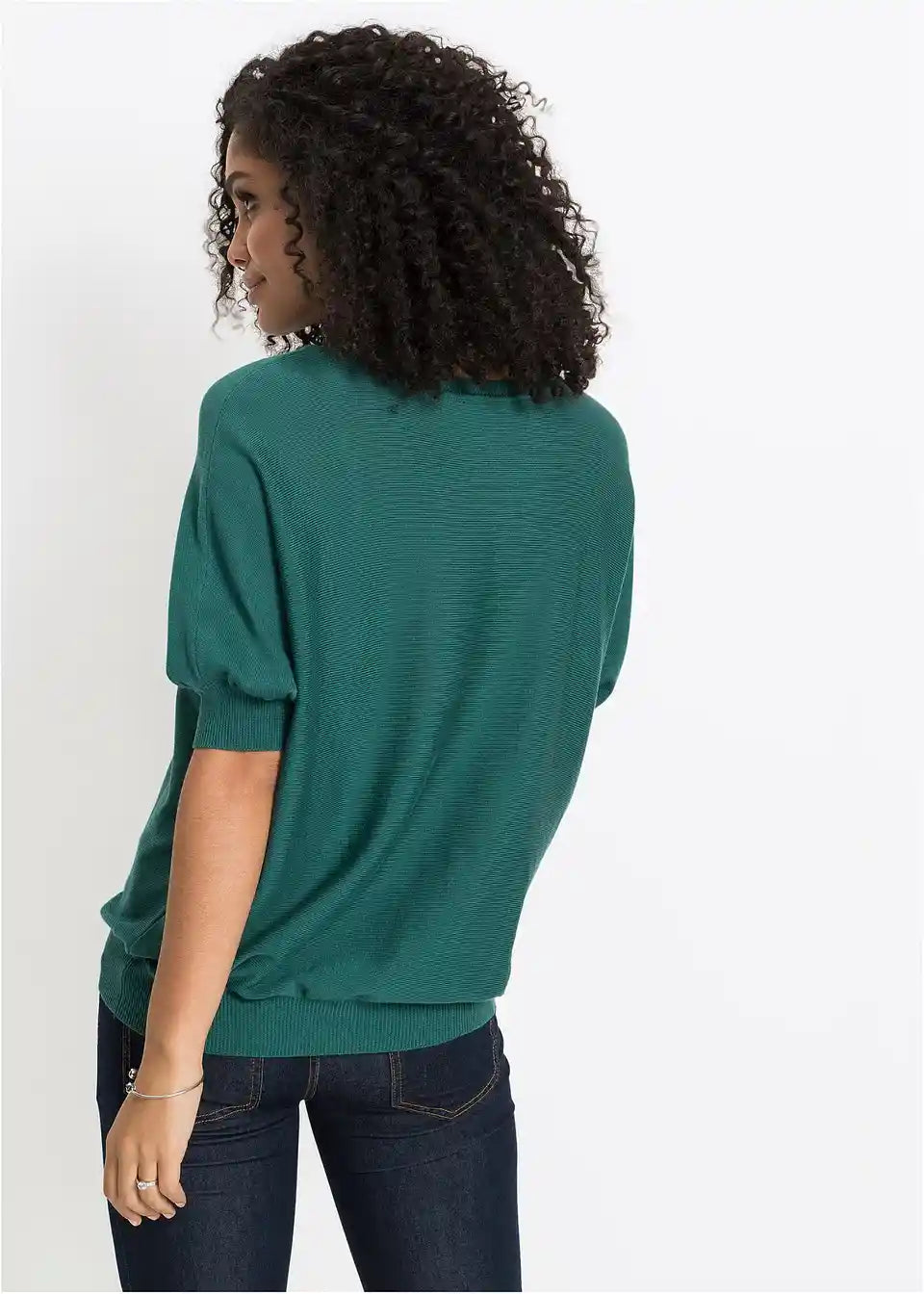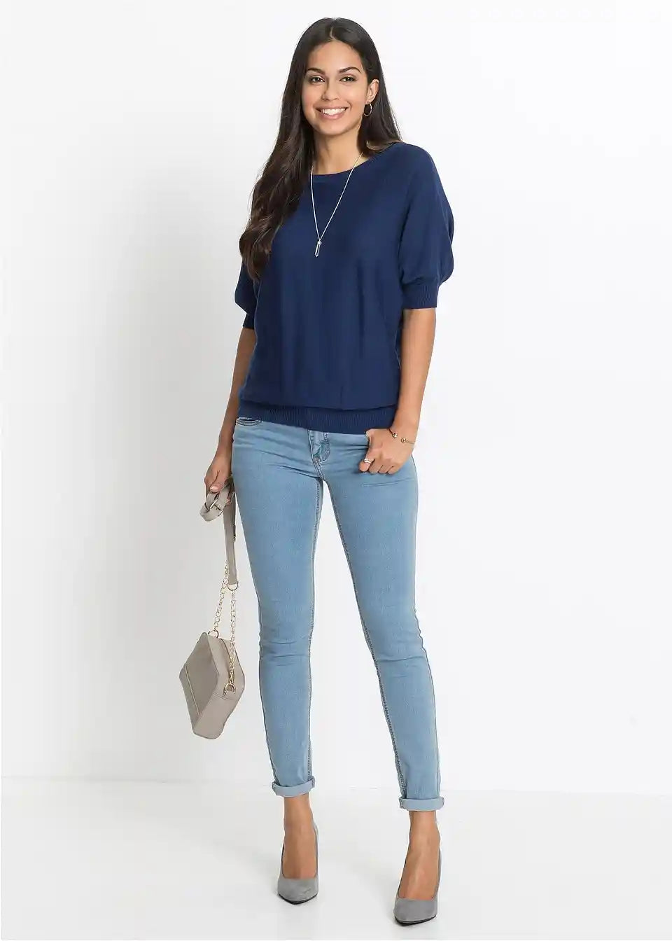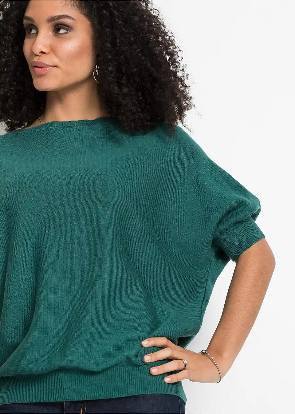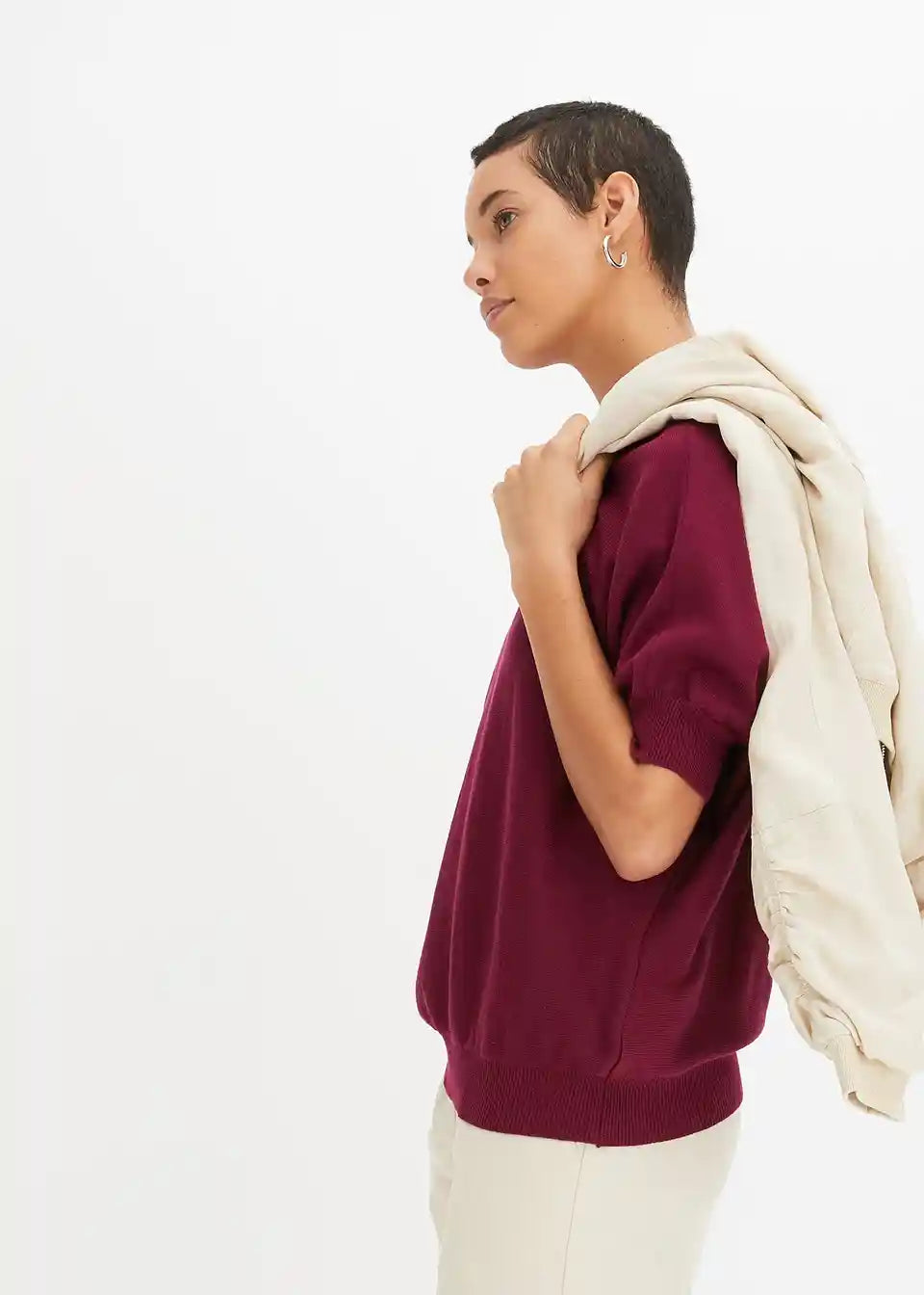Kako lahko preprosto oblačilo s finimi detajli dobi poseben značaj, prikazuje ta privlačen pulover znamke BODYFLIRT. Širok okrogel izrez poudarja dekolte. Netopirski rokavi dajejo modelu igriv in hkrati ležeren videz. Rebrasti robovi na spodnjem robu in na koncu kratkih rokavov ustvarjajo kontrast. Ta ljubek pulover je odlično kombinabilen. Ne glede na to, ali ga nosite z legicami, najljubšimi kavbojkami ali usnjenim krilom, ta prijeten model bo vašemu outfitu dal preprosto osnovo.