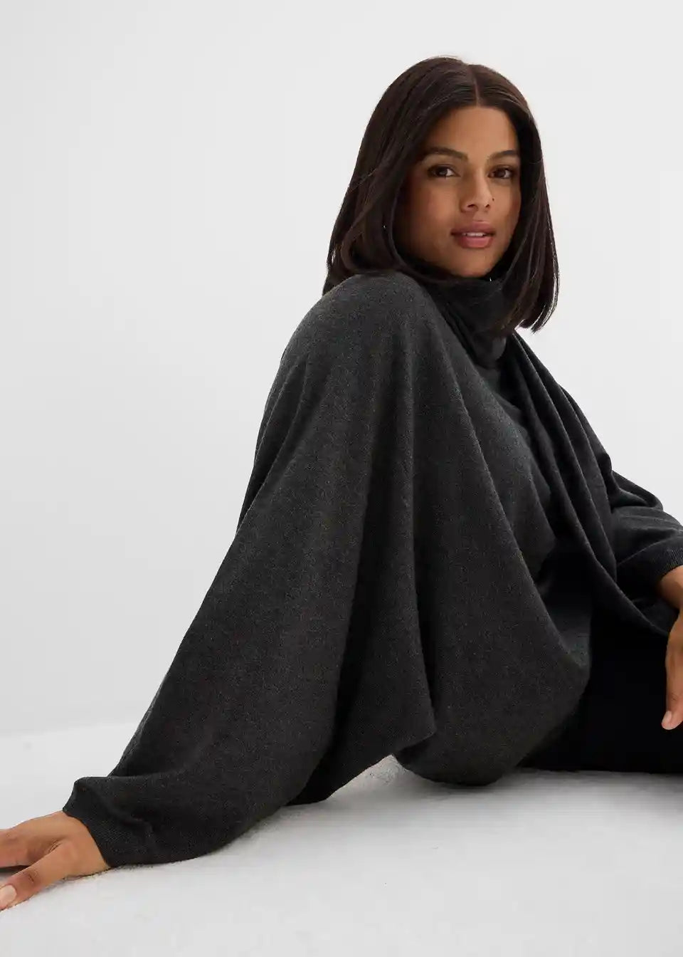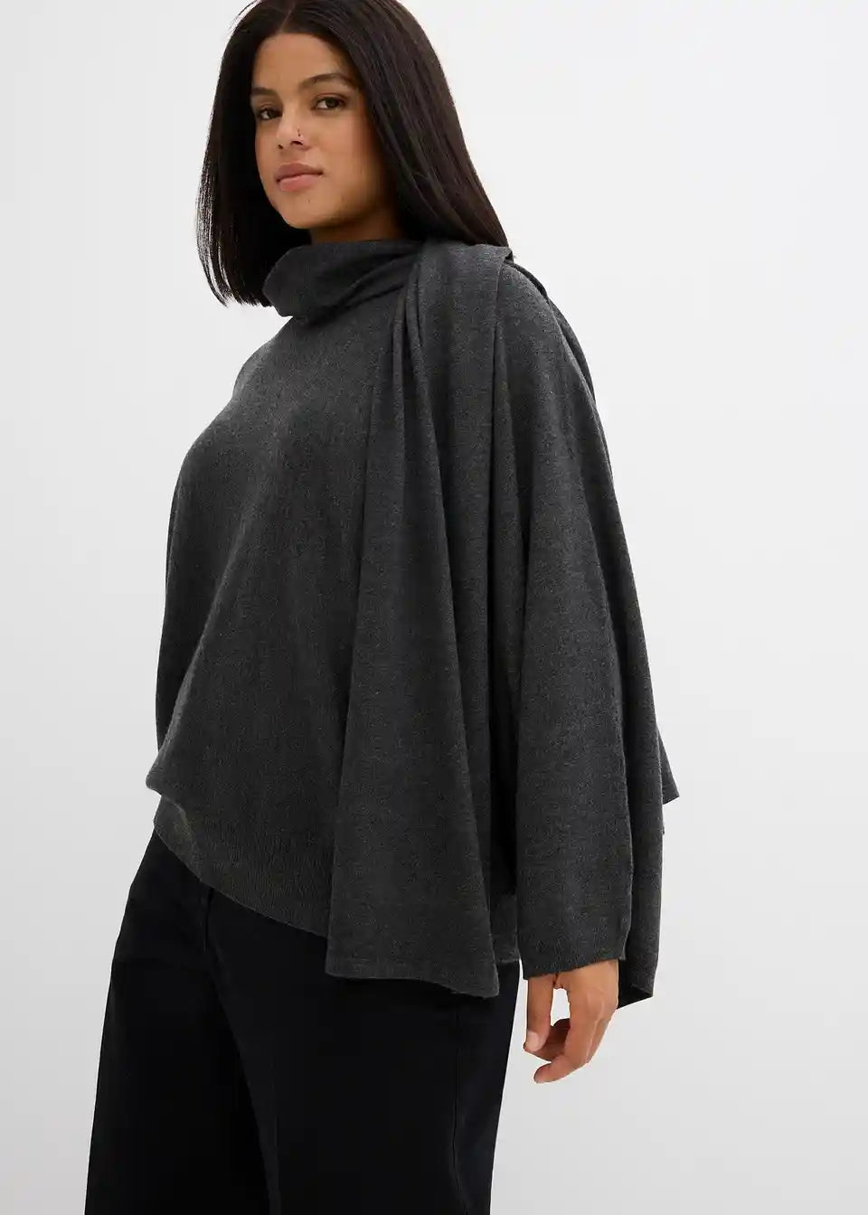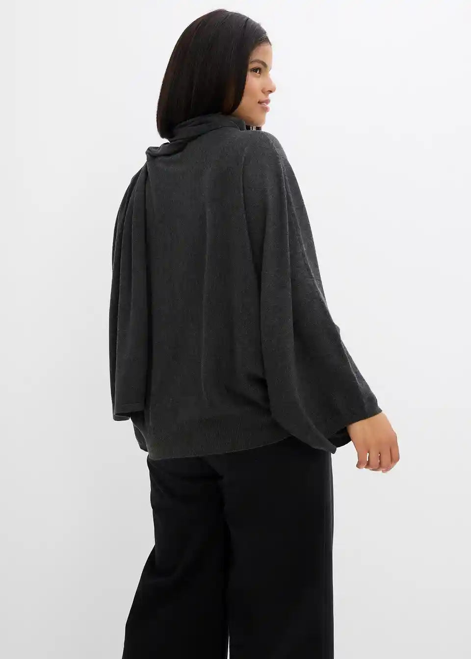 Široko krojen pulover s širokimi rokavi in šalom