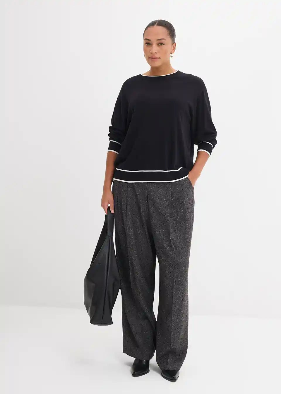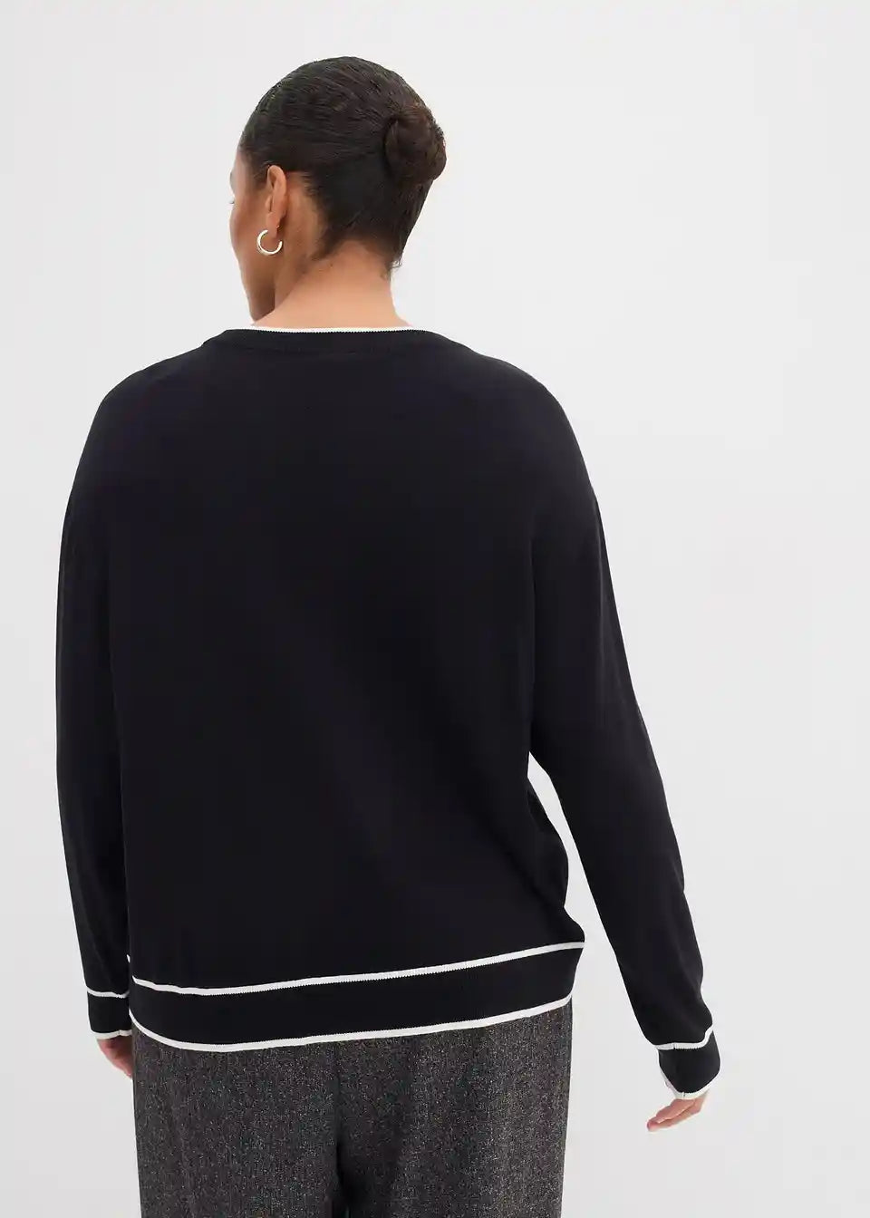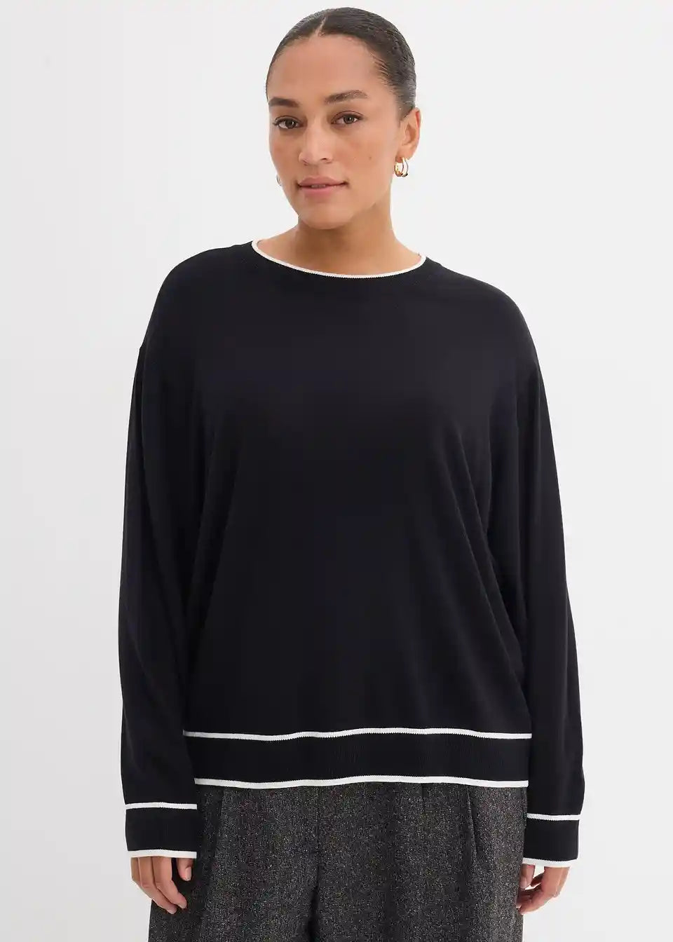 Pleten pulover s kontrastnimi patentnimi obrobami