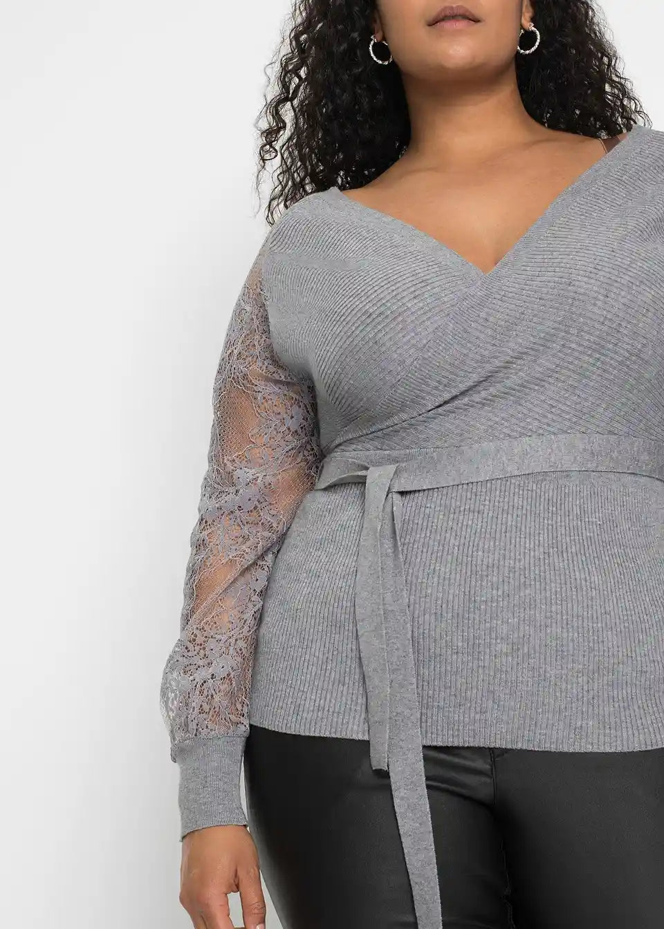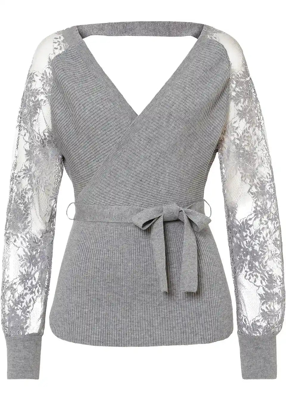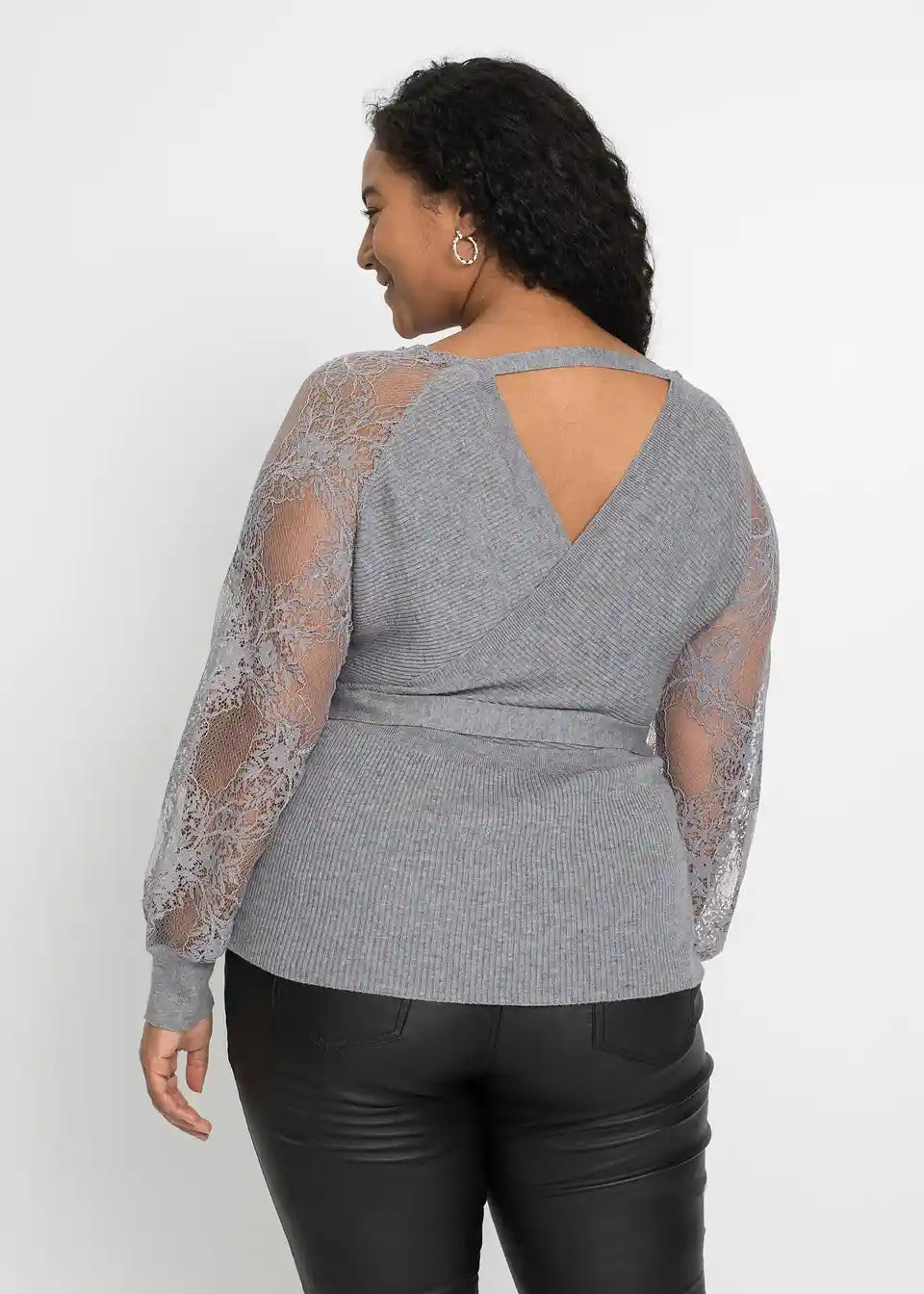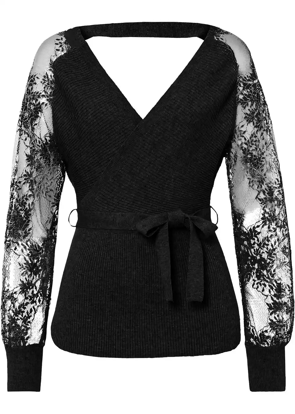 Sodoben pulover z elegantnimi čipkastimi rokavi