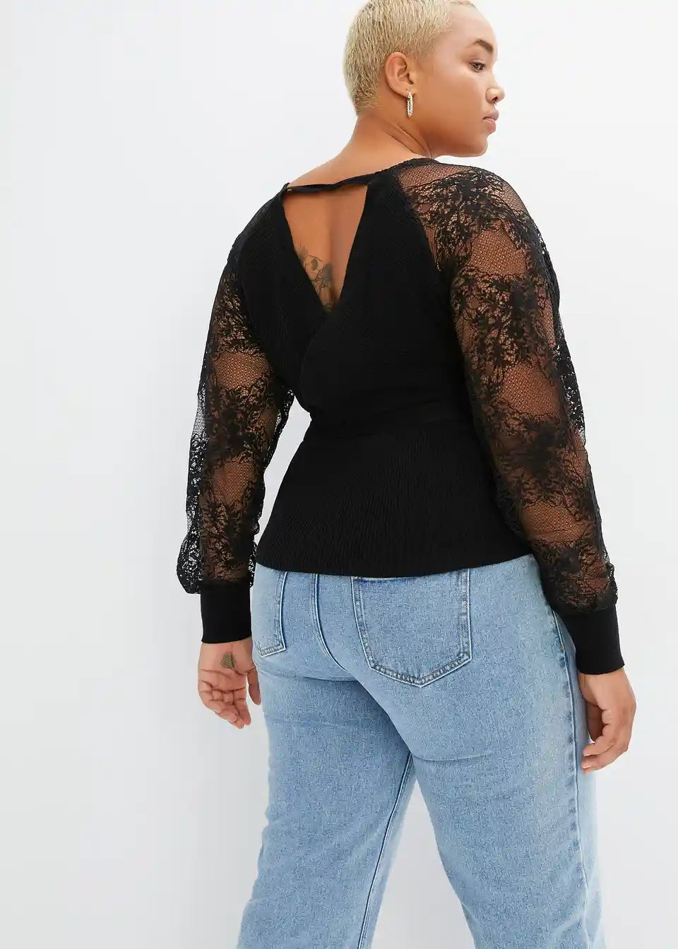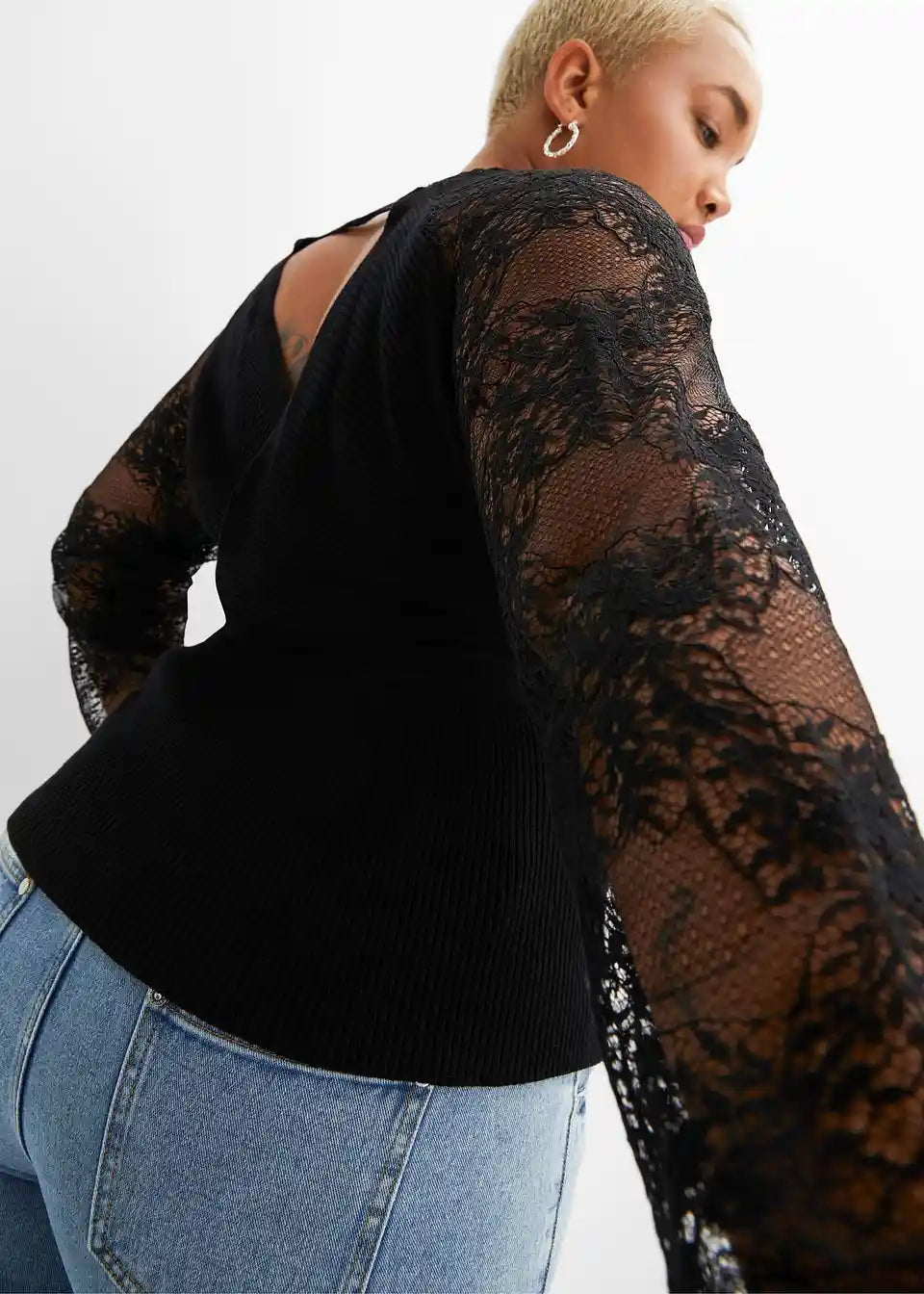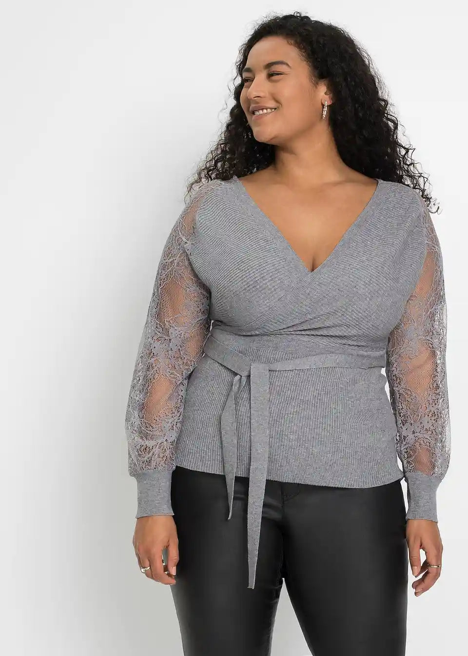 Sodoben pulover z elegantnimi čipkastimi rokavi