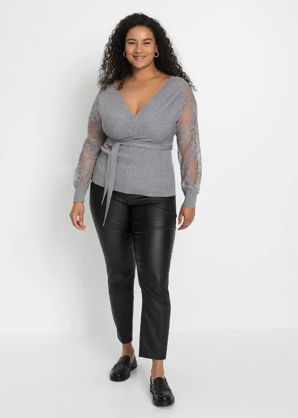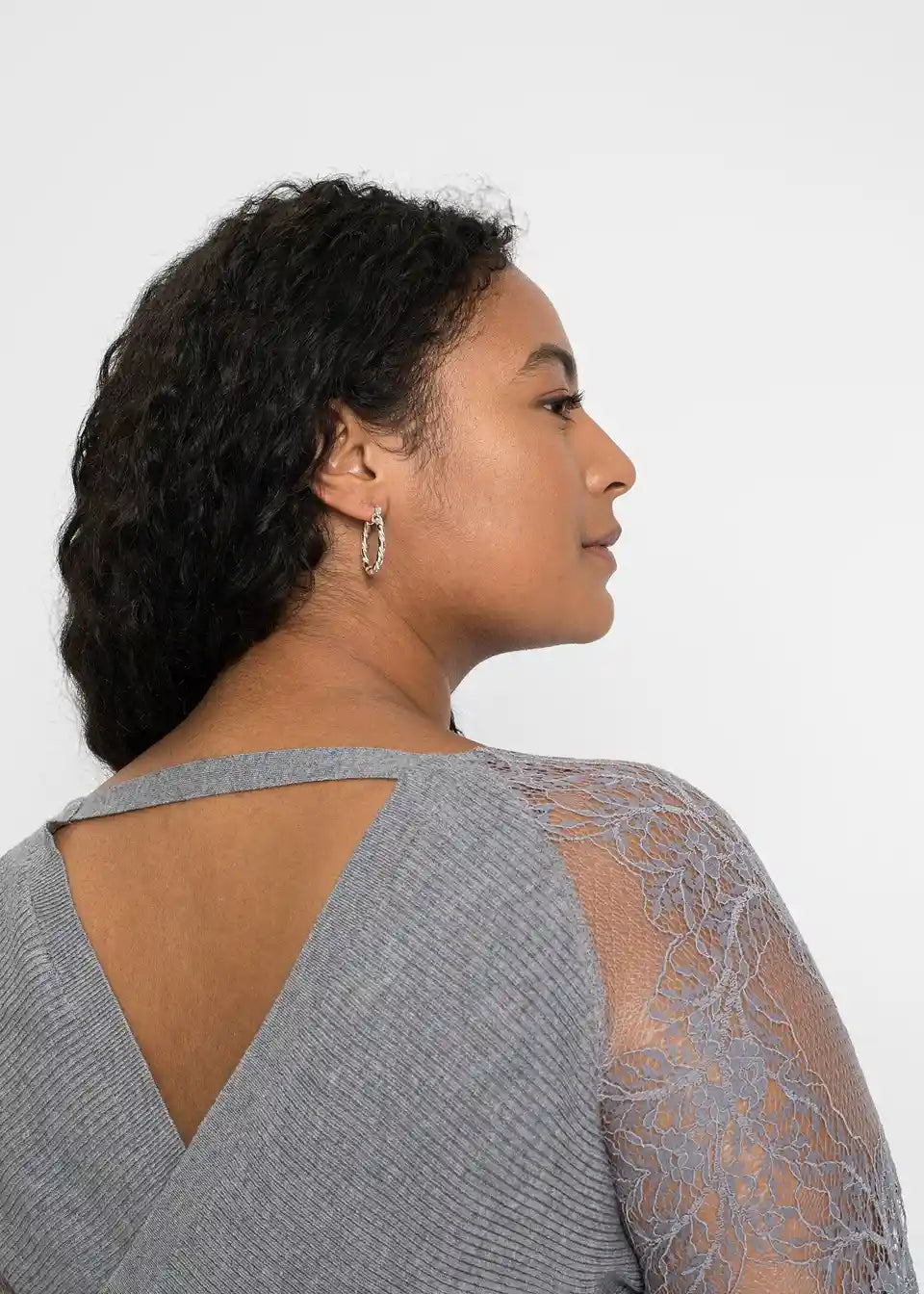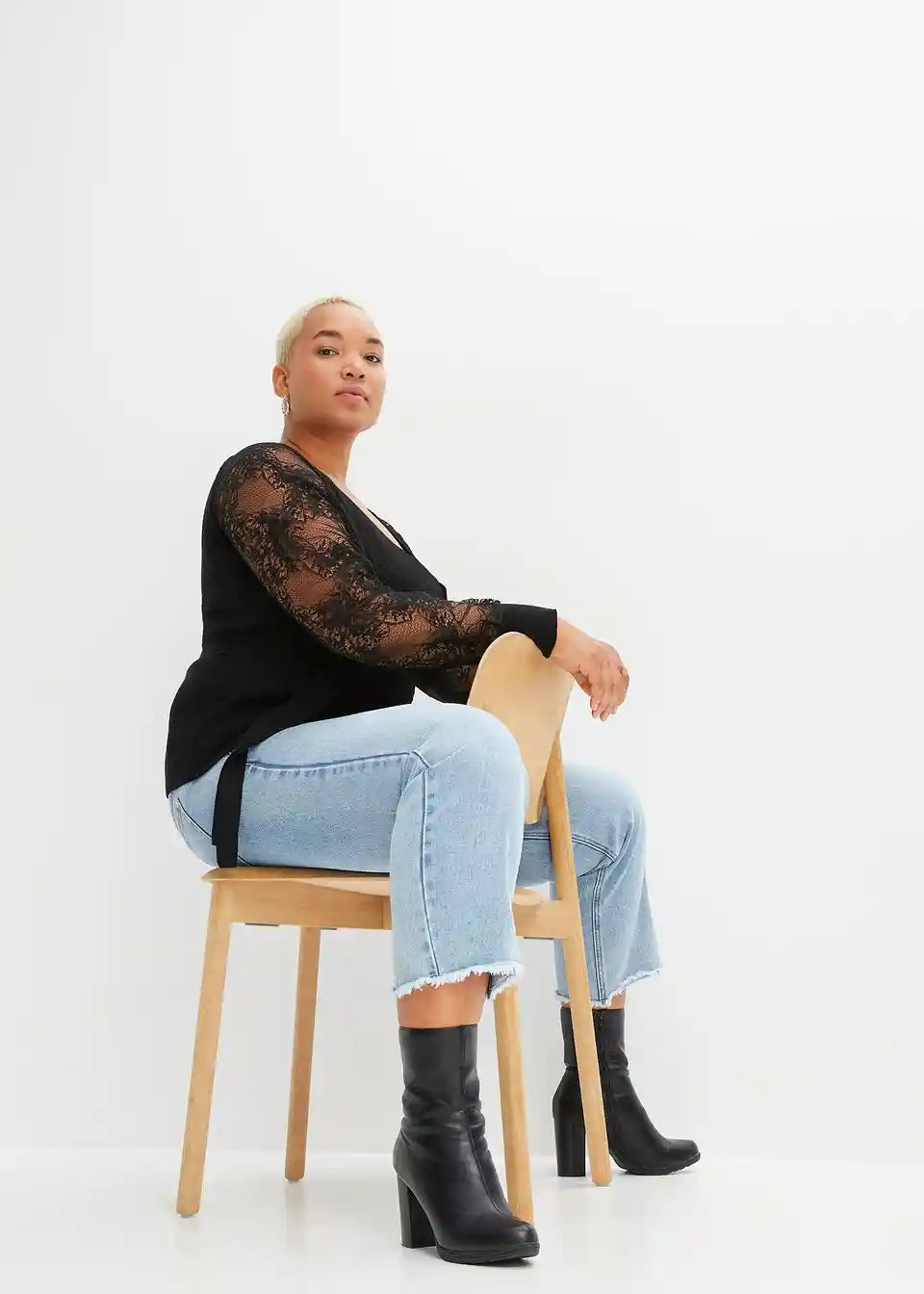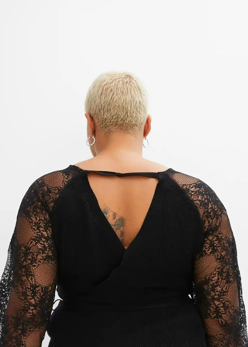 Sodoben pulover z elegantnimi čipkastimi rokavi