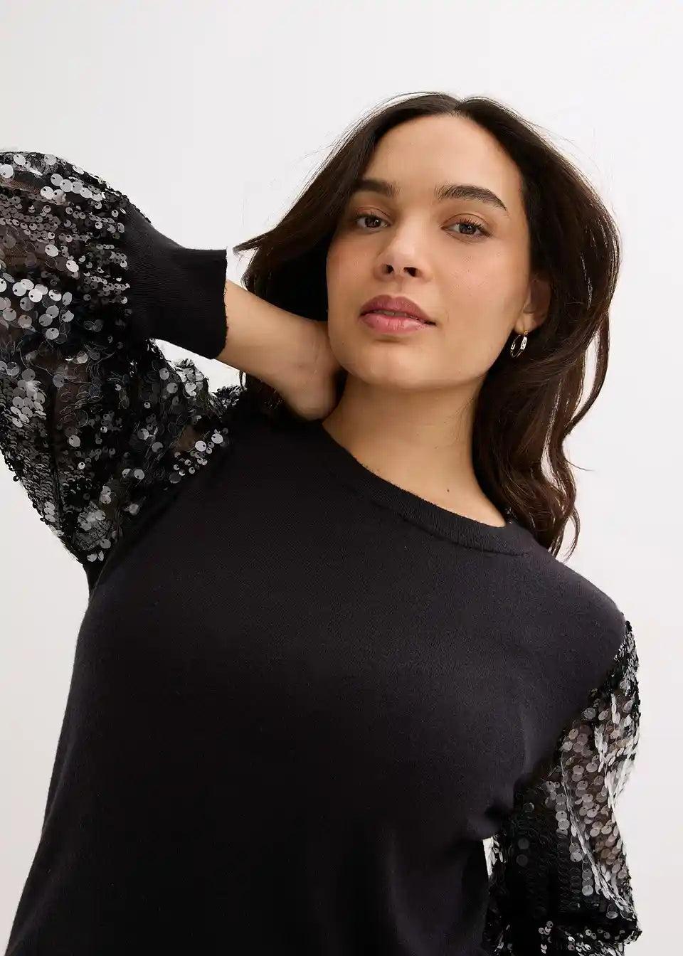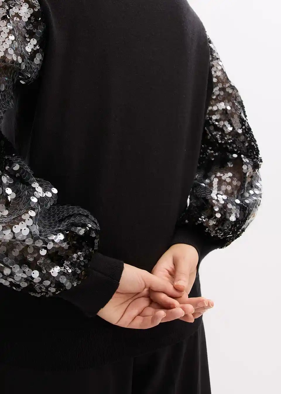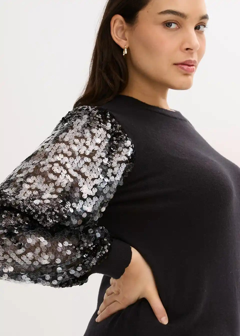 Moden pulover z rahlo voluminoznimi rokavi z bleščicami