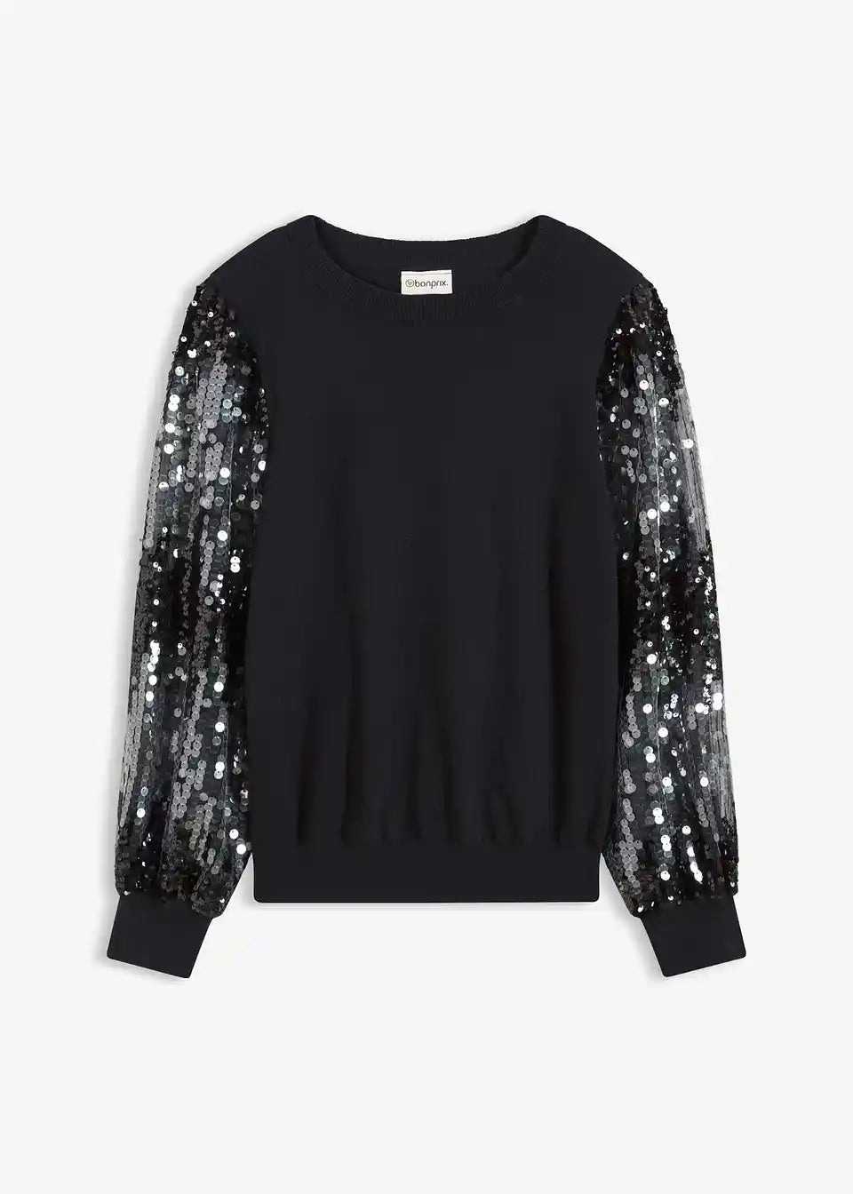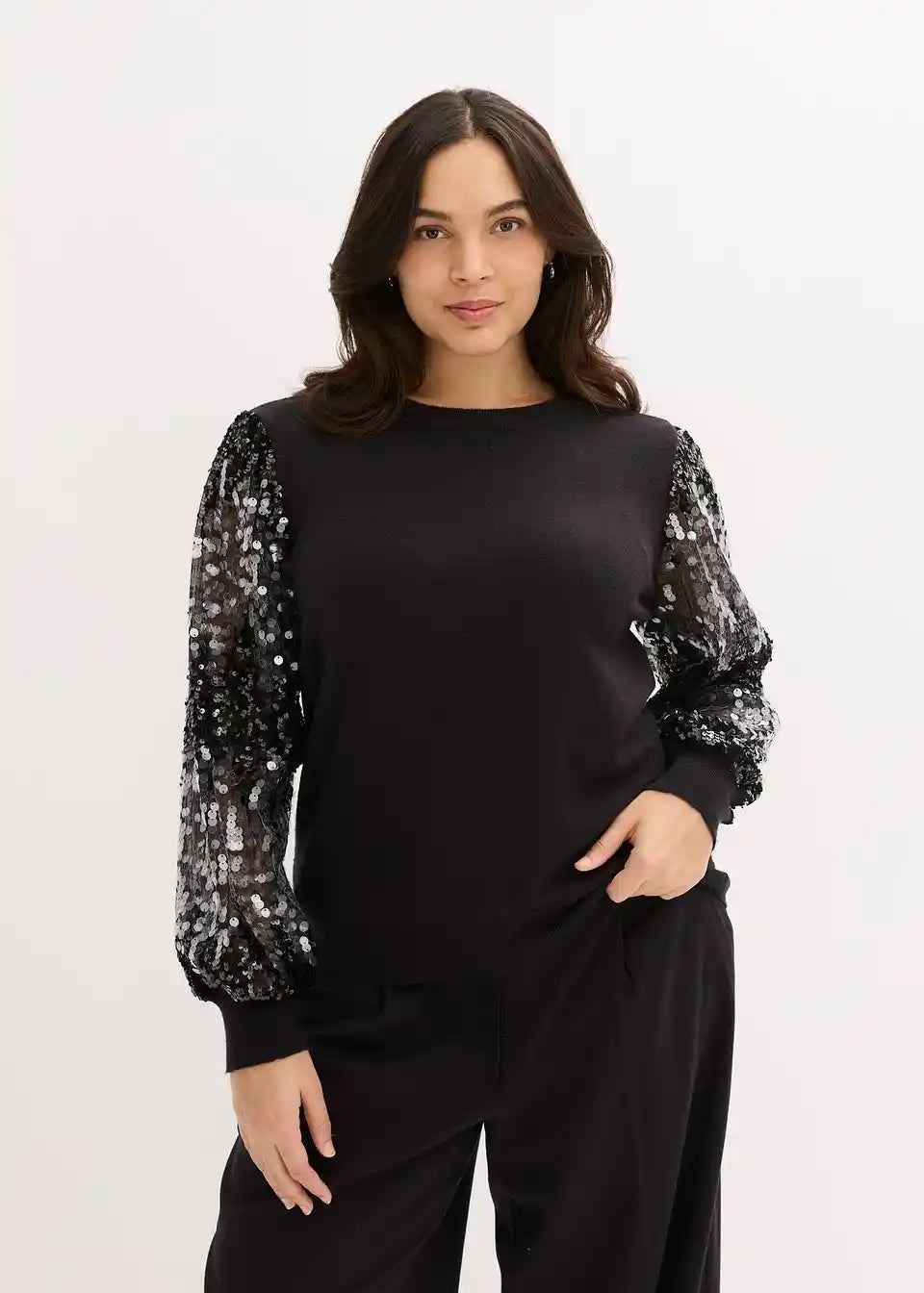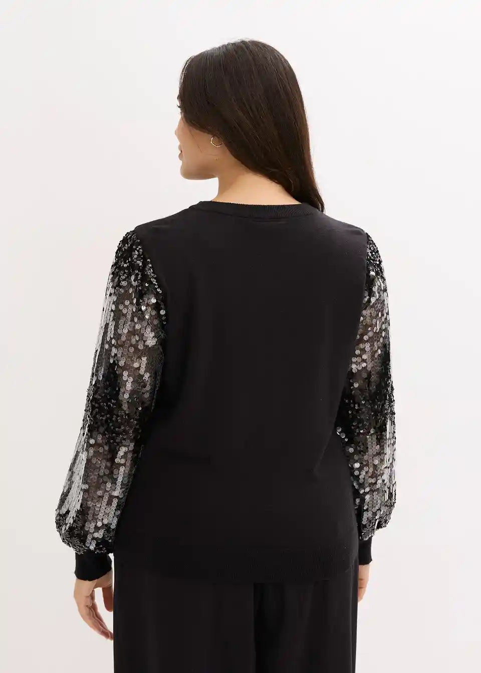 Moden pulover z rahlo voluminoznimi rokavi z bleščicami