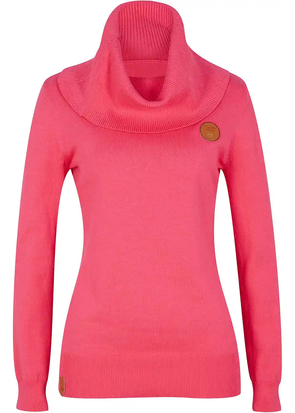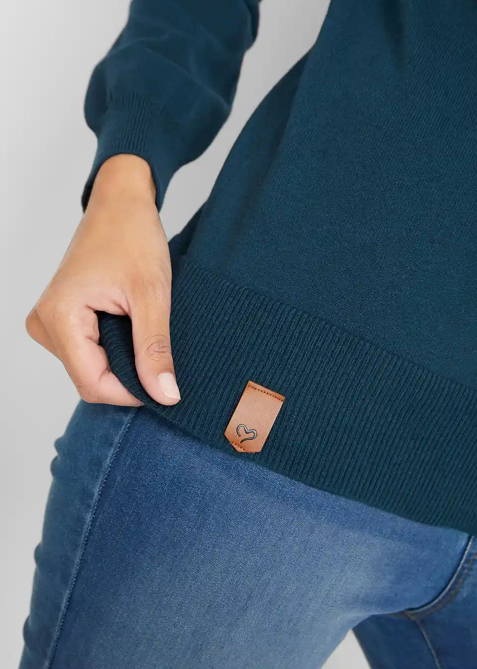 Udoben pulover z rol ovratnikom in usnjenimi dodatki