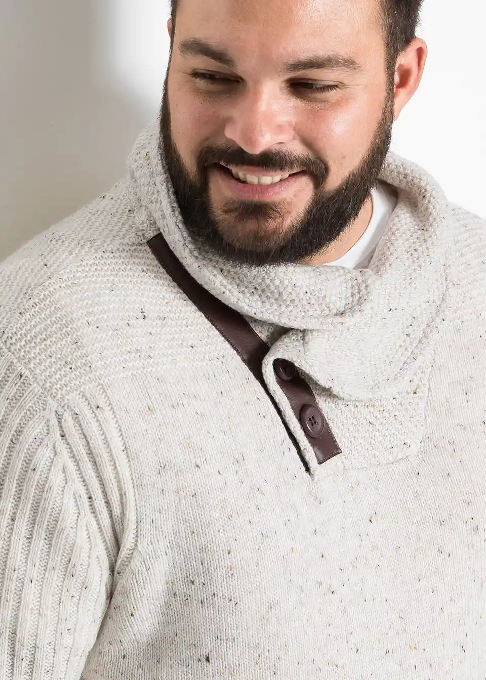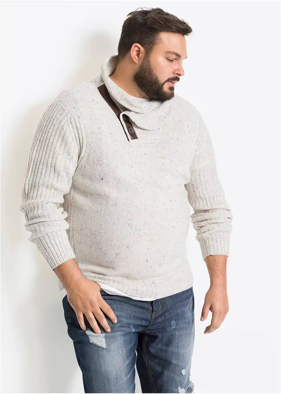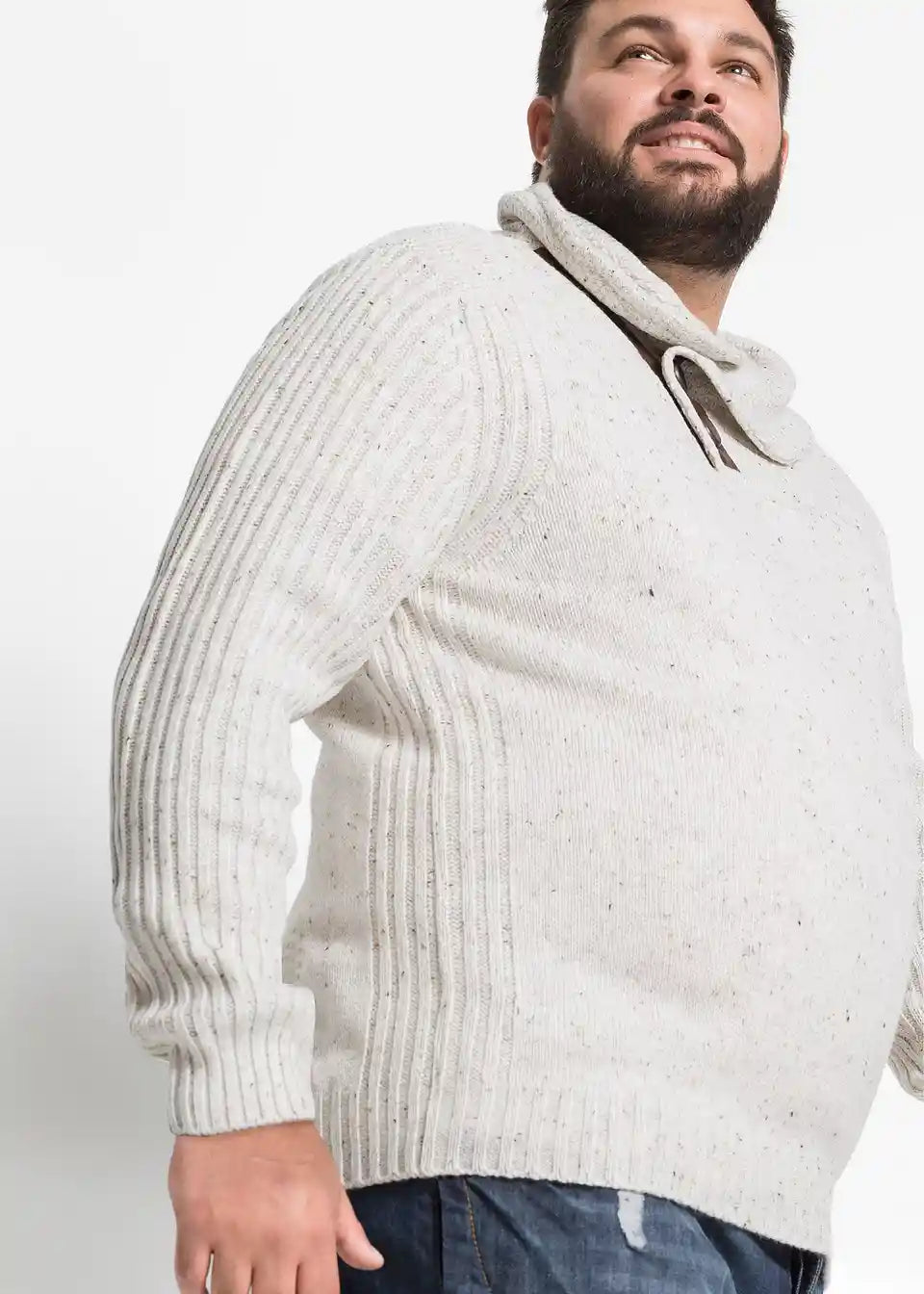 Iz različnega strukturiranega pletenja. Z zapenjanjem na gumb na ovratniku.