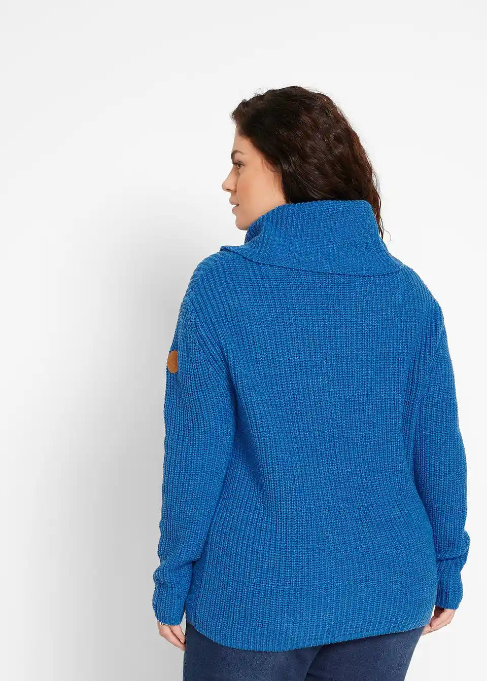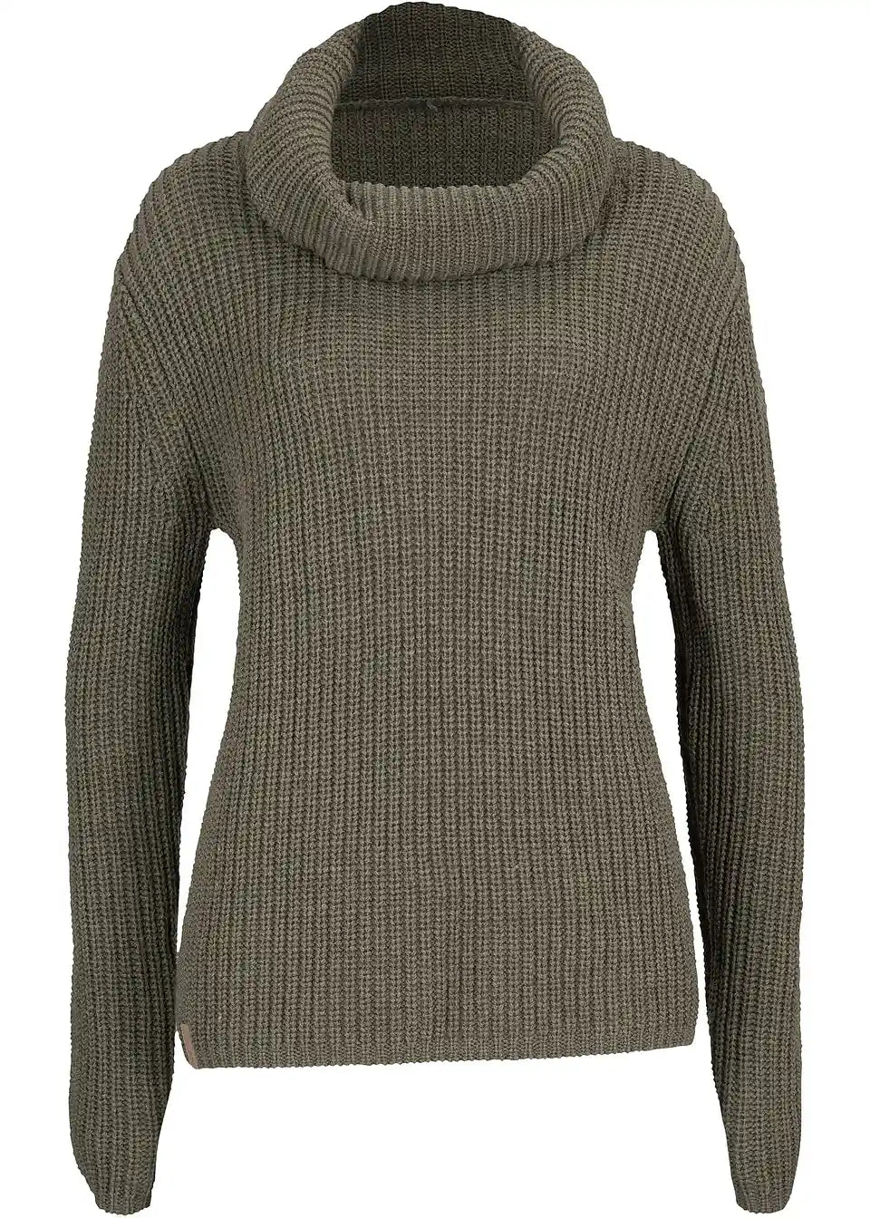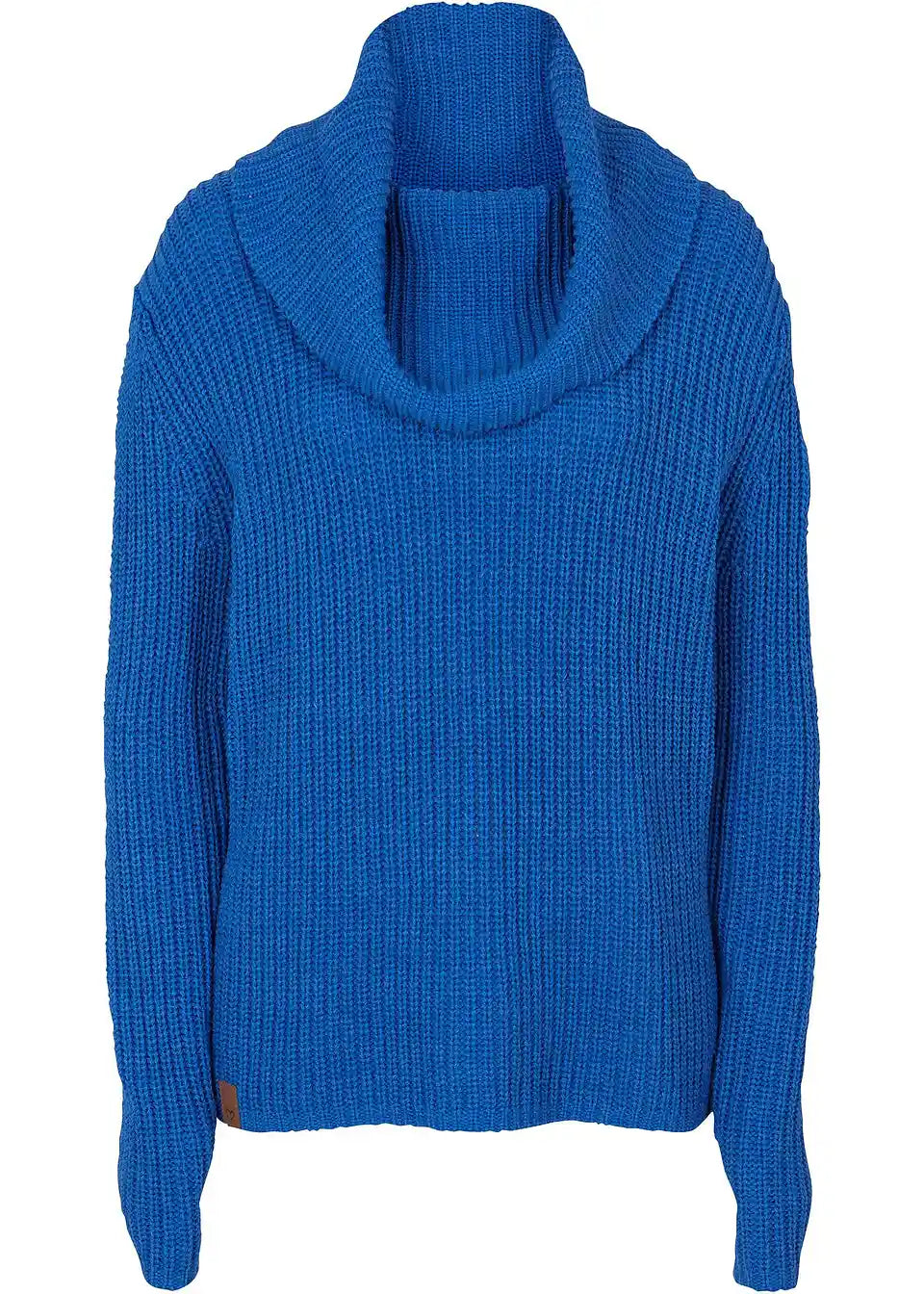 Moden pulover iz pletiva s širokim puli ovratnikom in spuščeno ramensko zasnovo