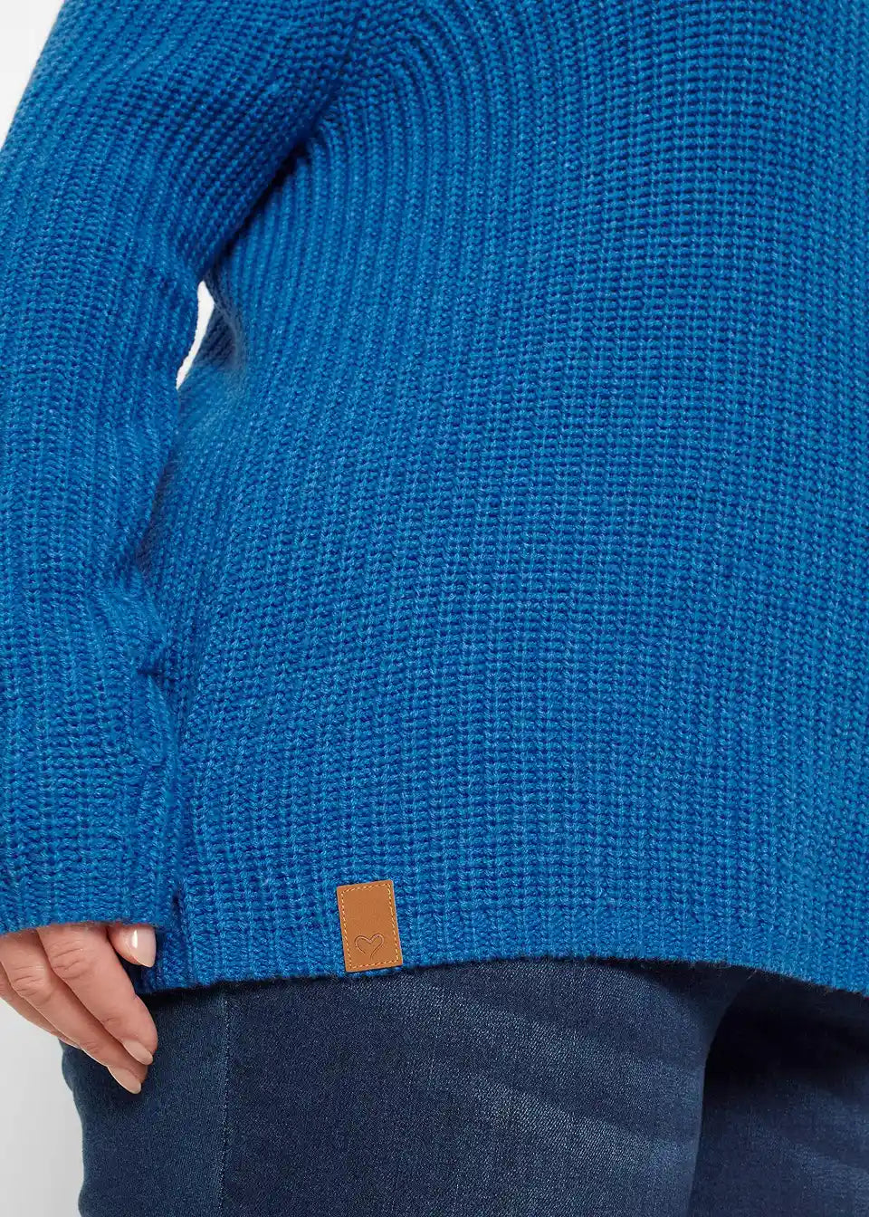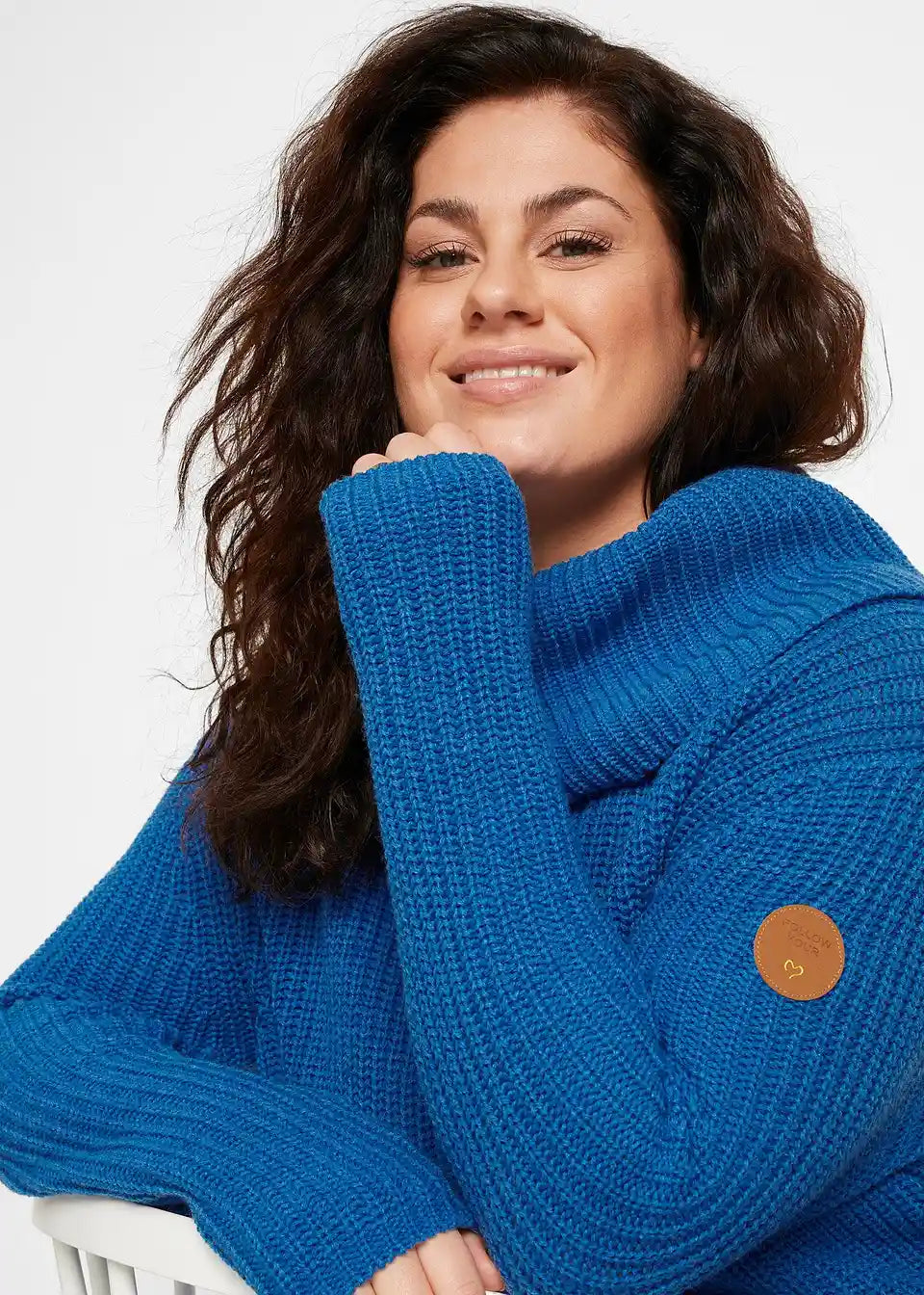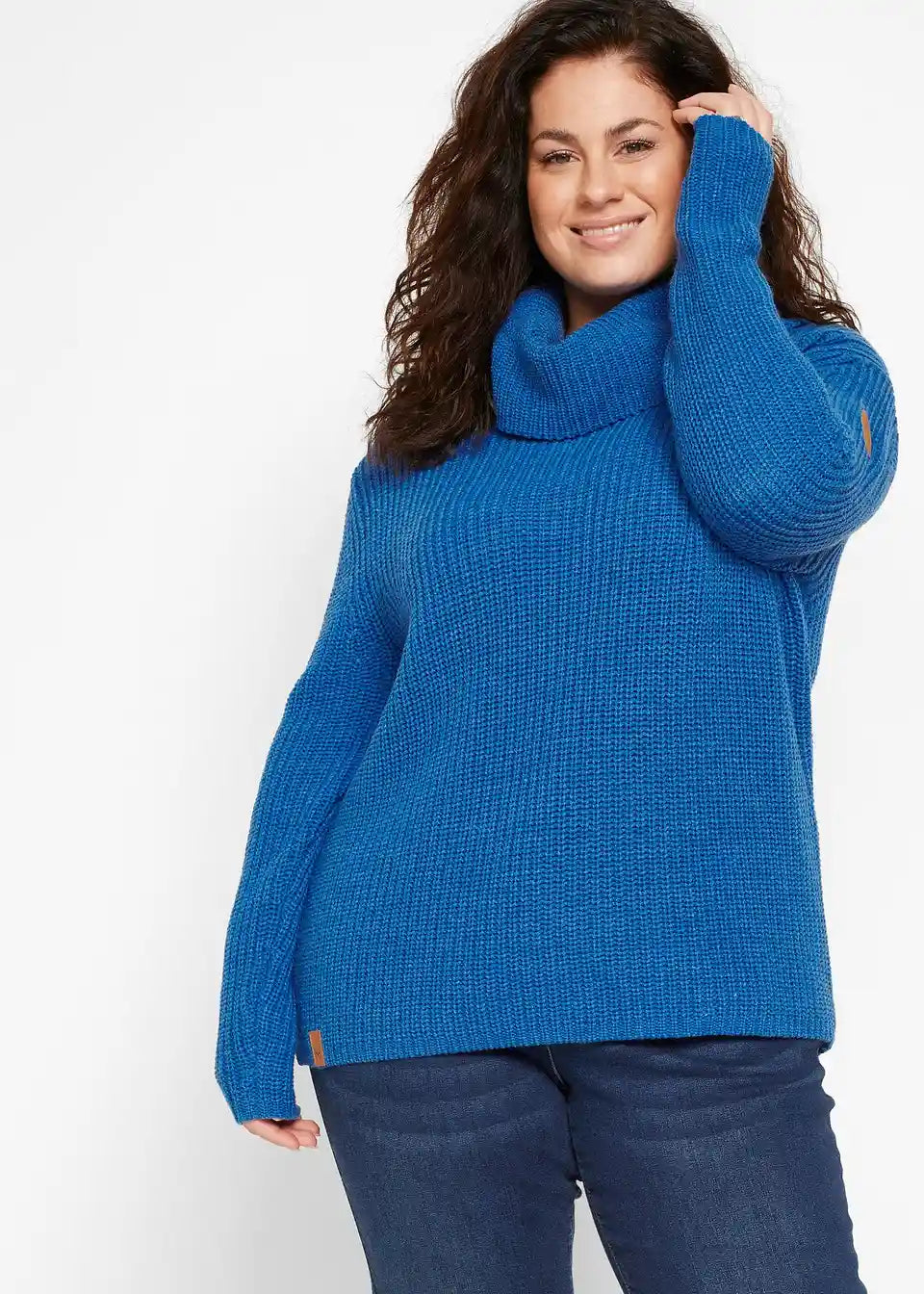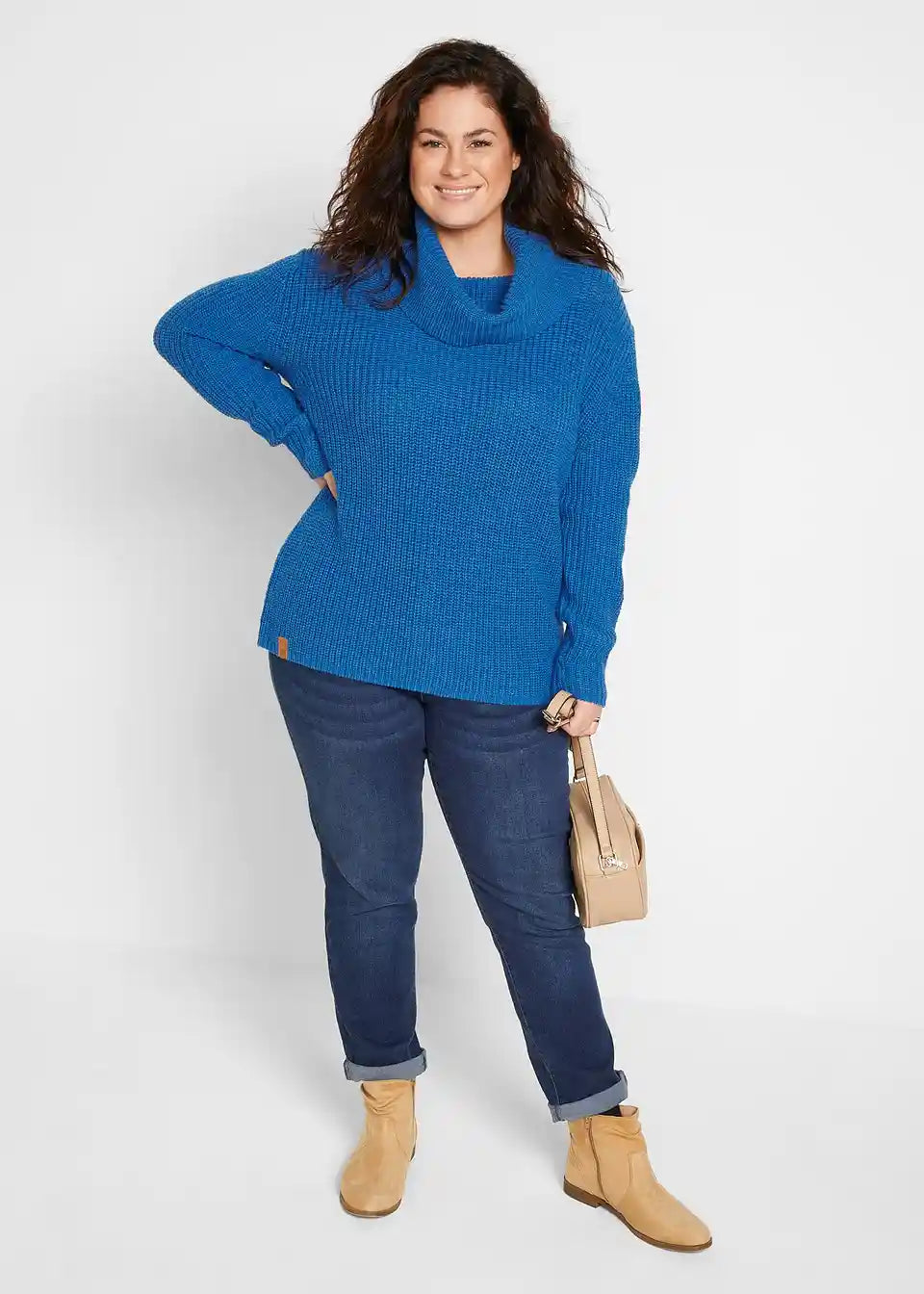 Moden pulover iz pletiva s širokim puli ovratnikom in spuščeno ramensko zasnovo