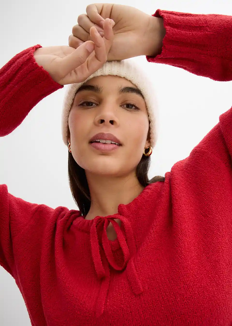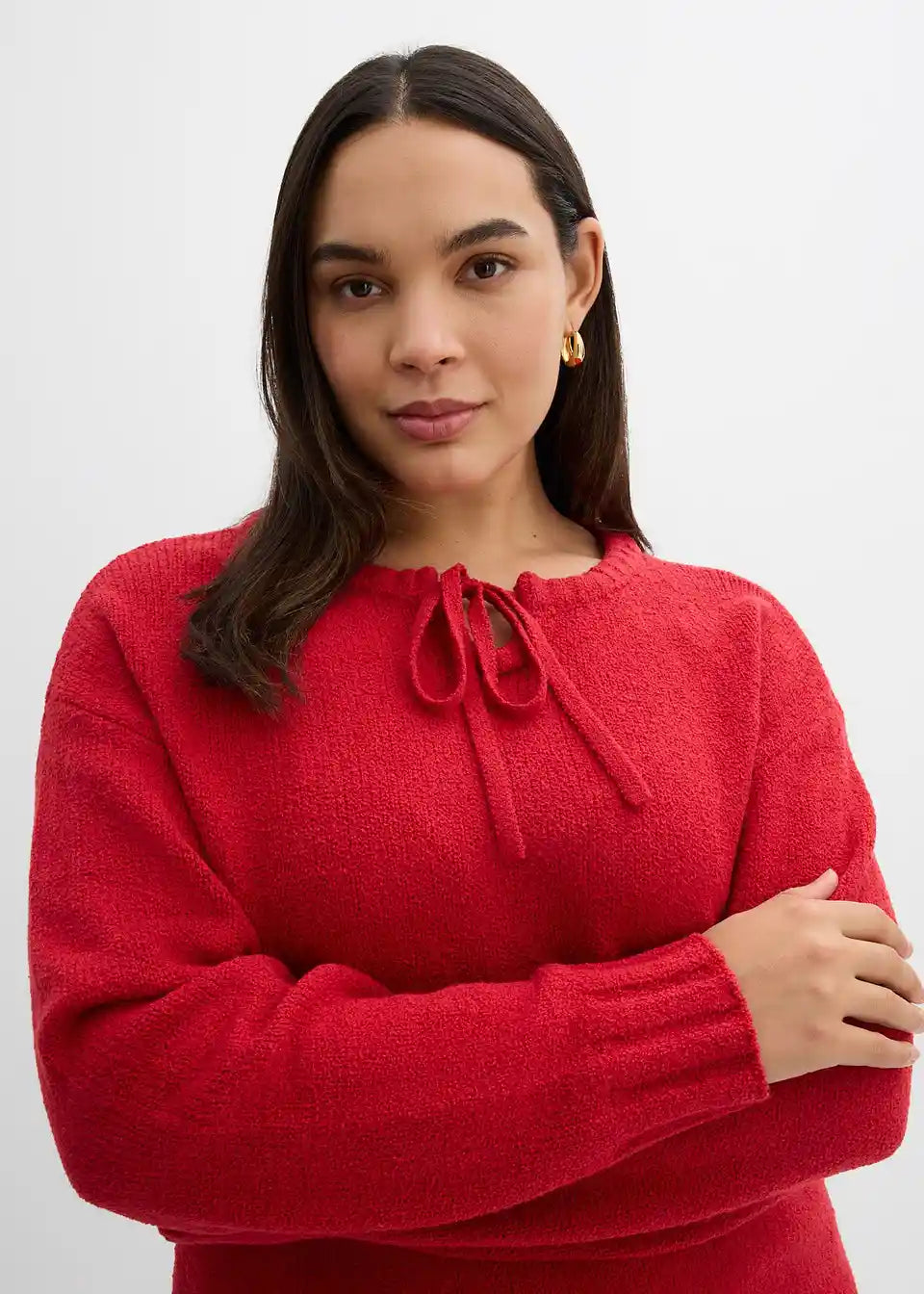 Grobo pleten pulover s trakom za zavezovanje