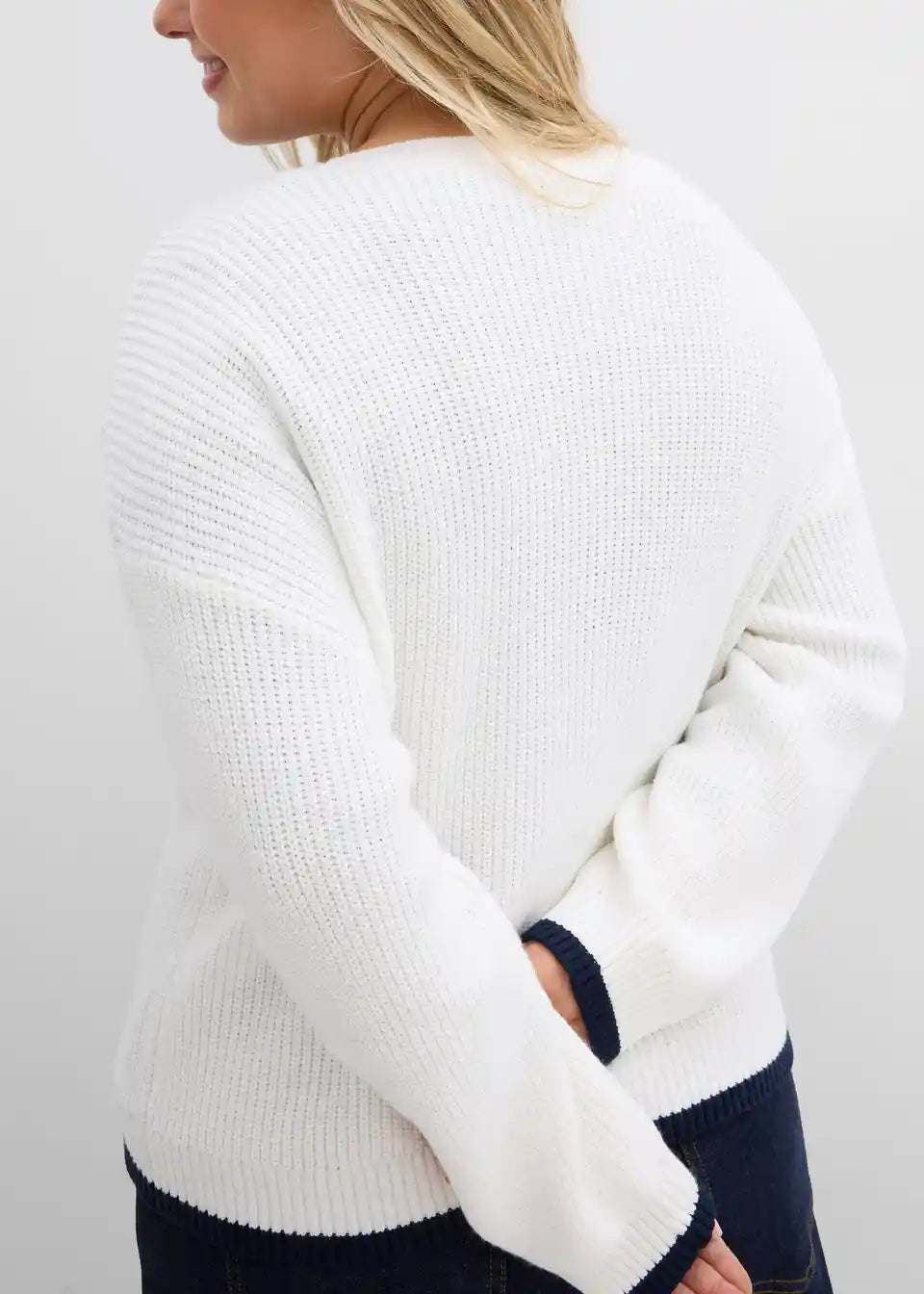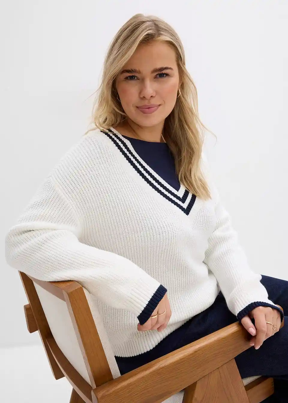Ohlapen pulover z V-izrezom in v rokave podaljšanimi ramami