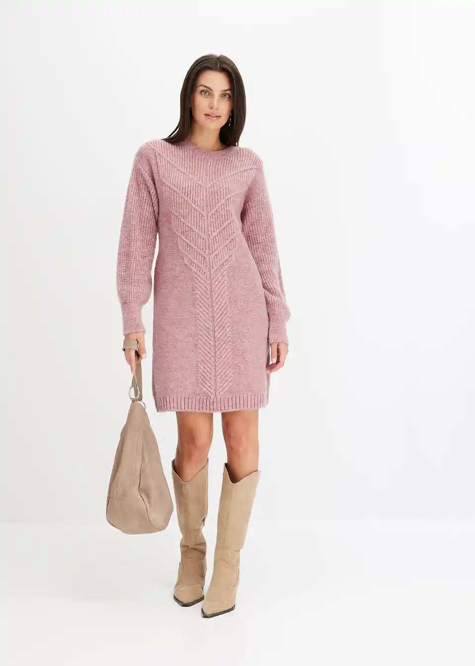 Moderno in ženstveno: Oversized pulover obleka z modernim pletenim vzorcem