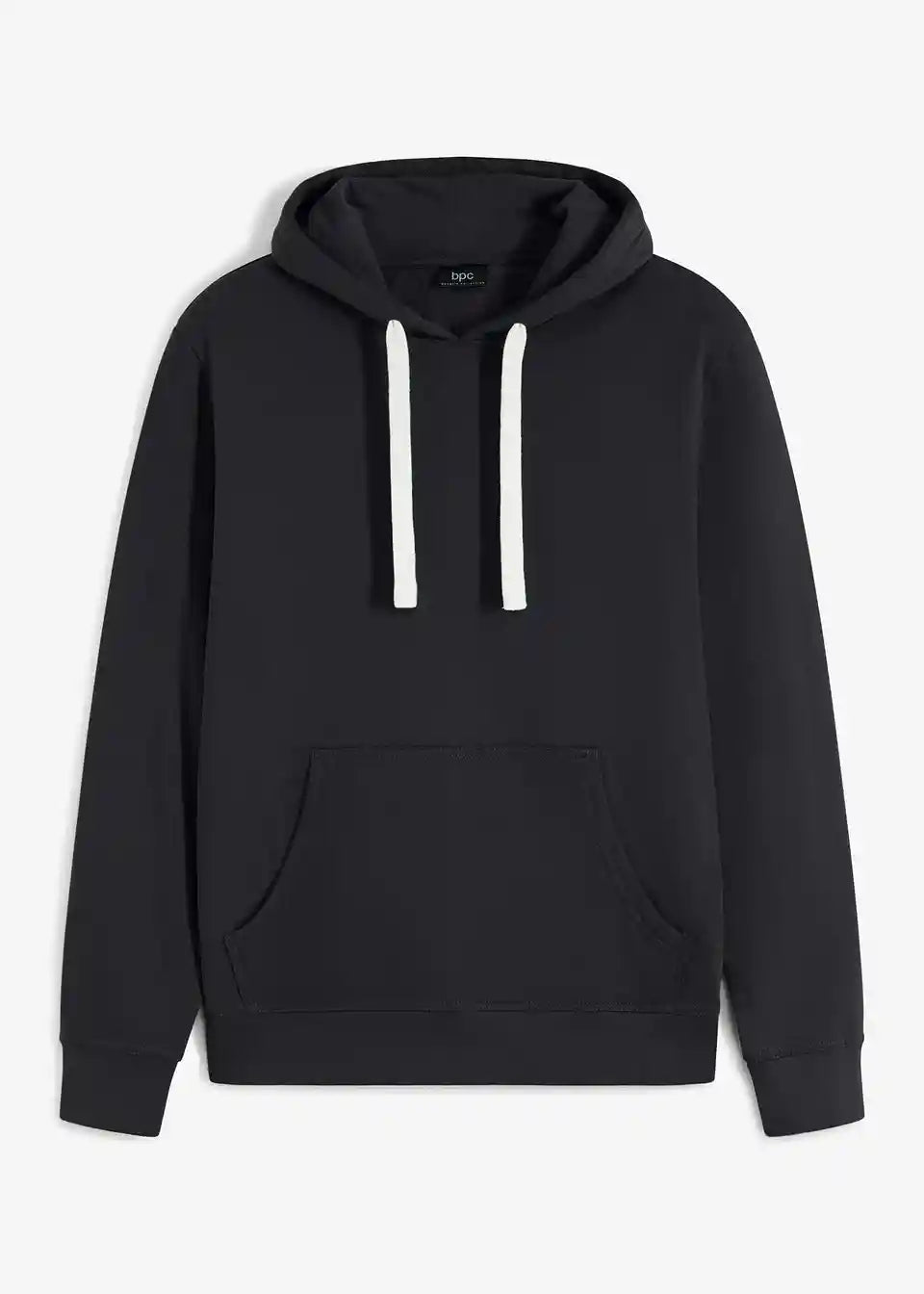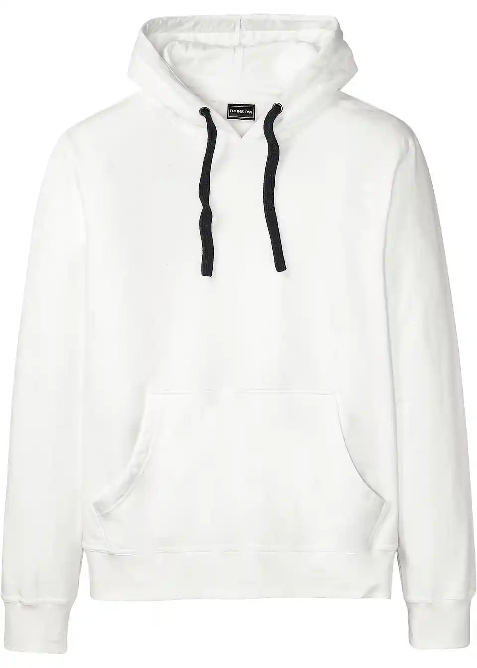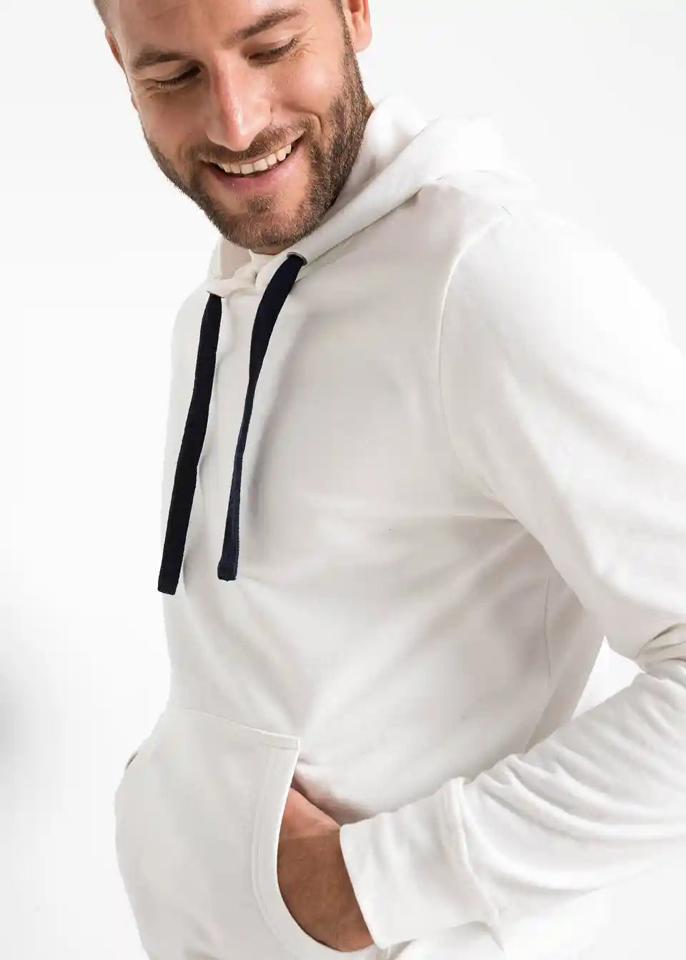 Sodoben osnovni pulover s kapuco in vrvicami v kontrastnih barvah, mehko brušen na notranji strani