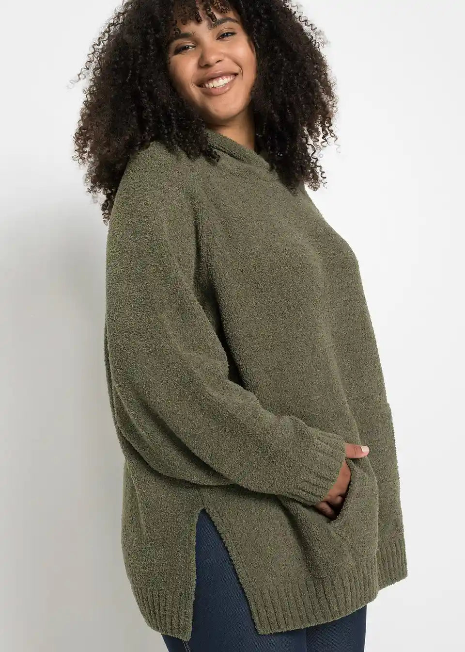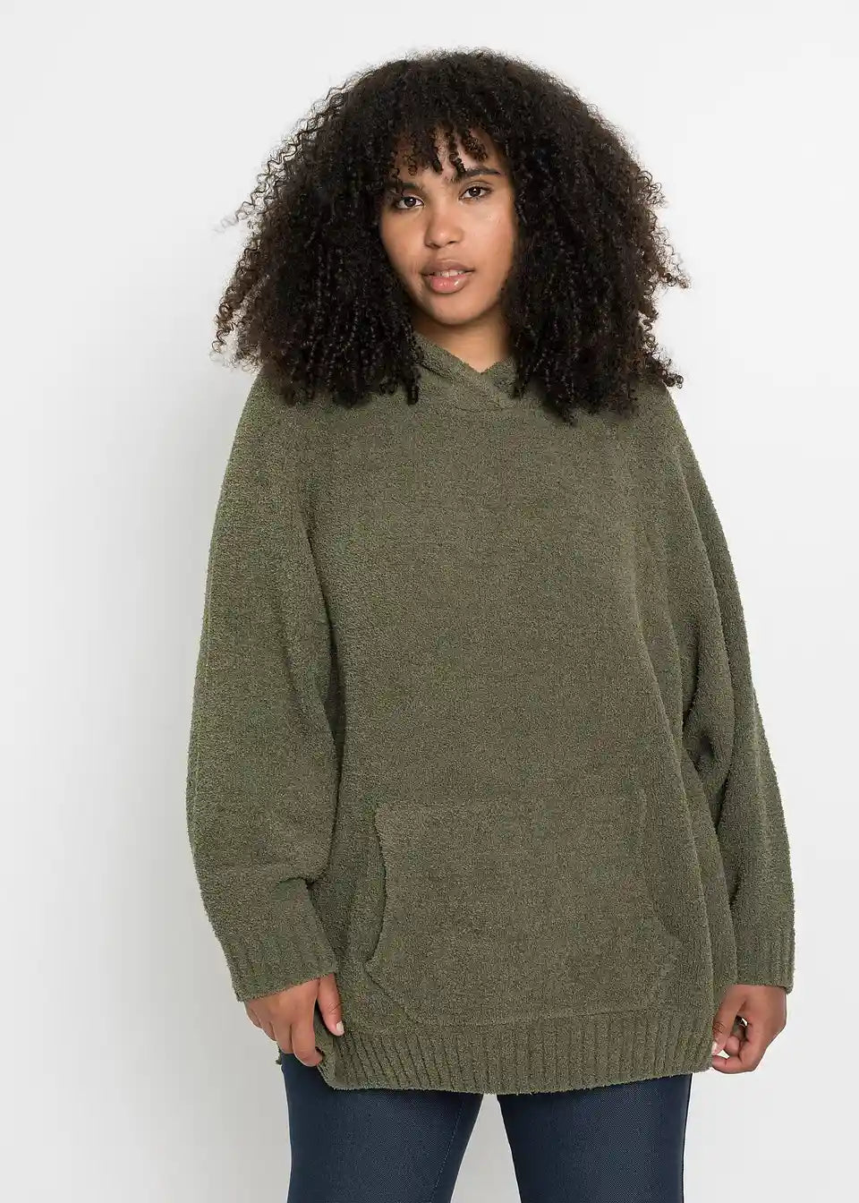 Zimski pulover z velikim žepom, širšega kroja