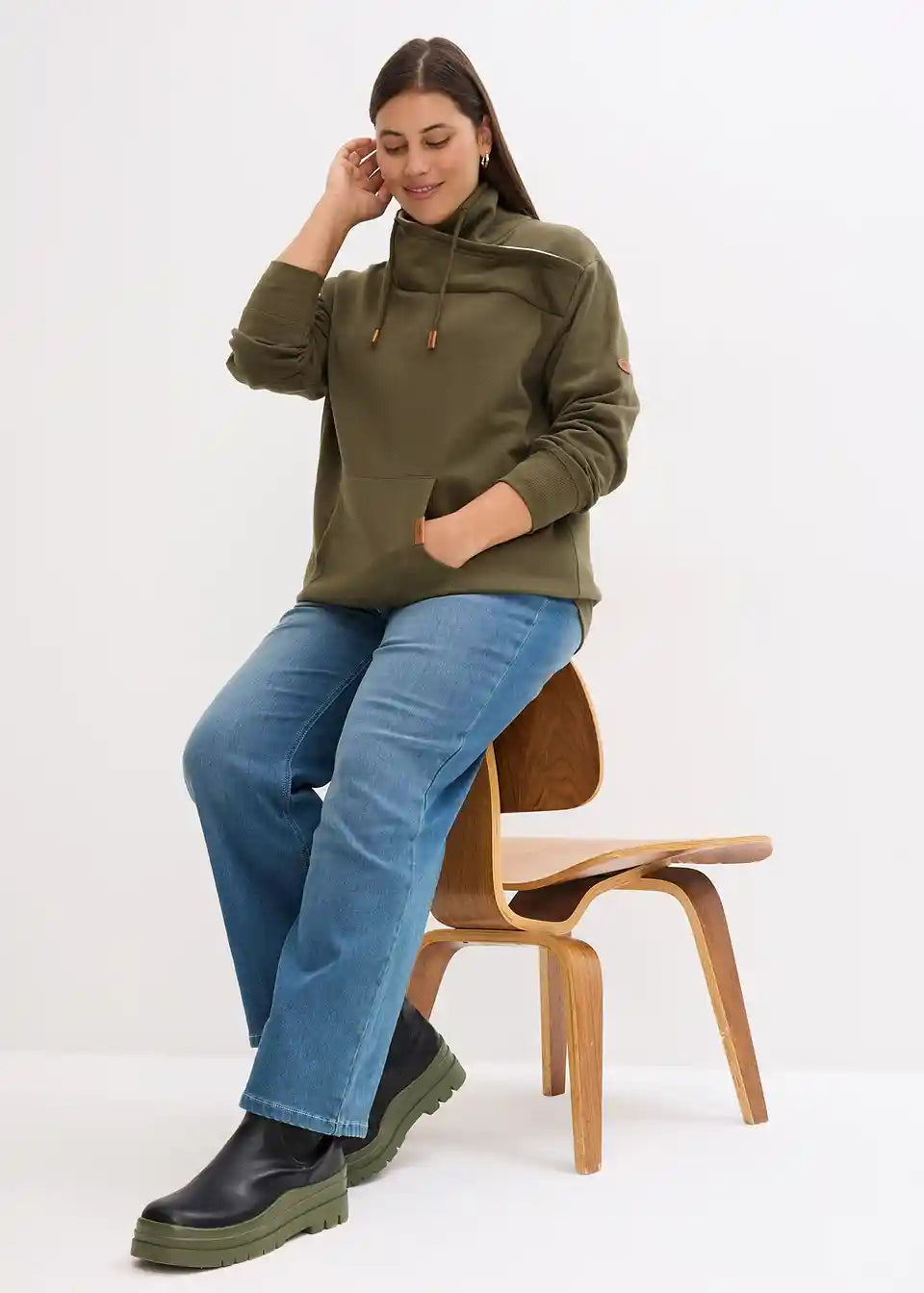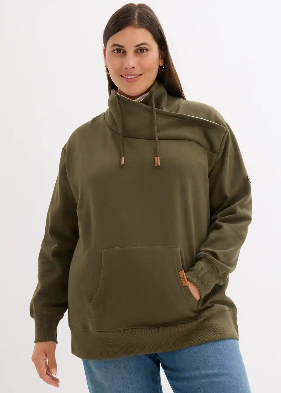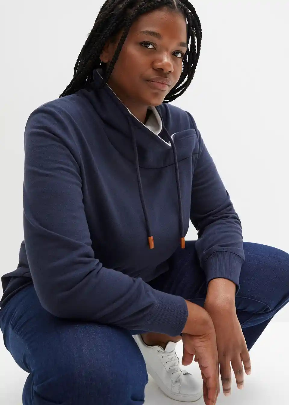 Majica iz trikoja s šal ovratnikom in mehkim plišem