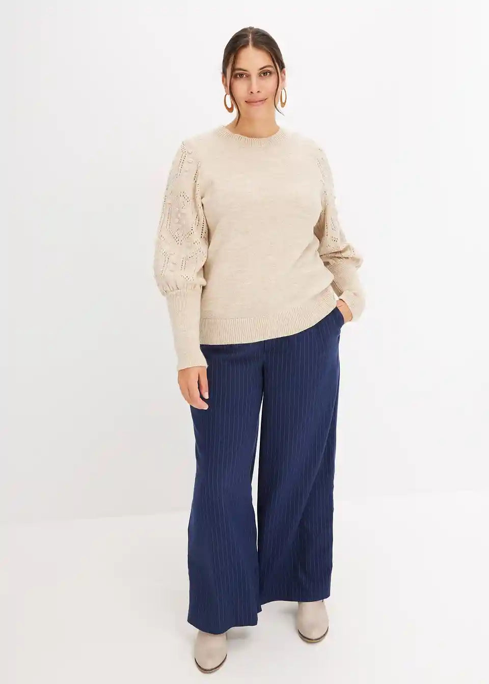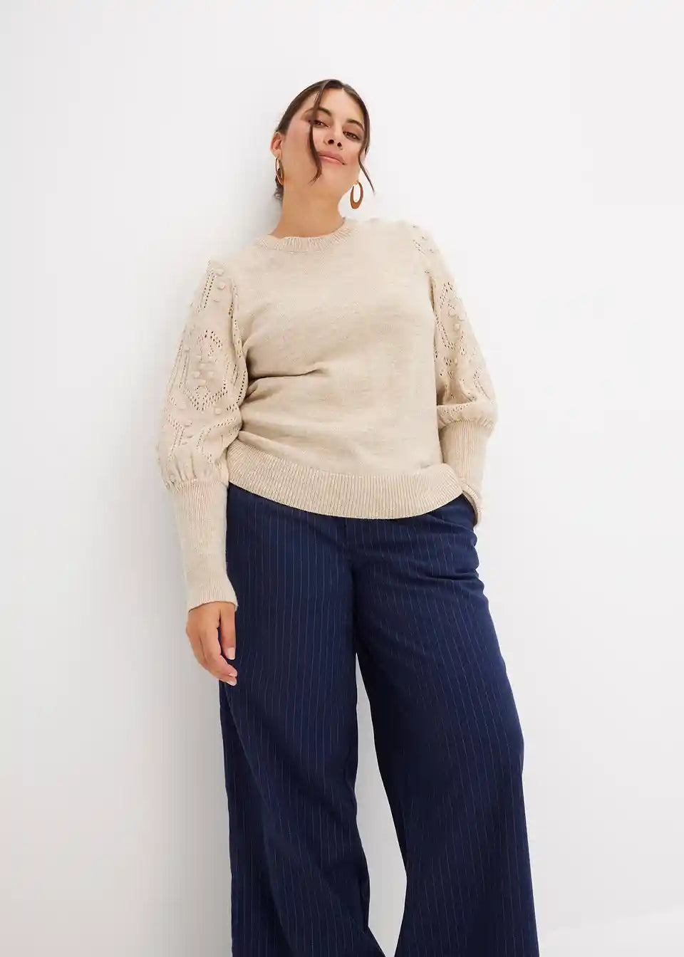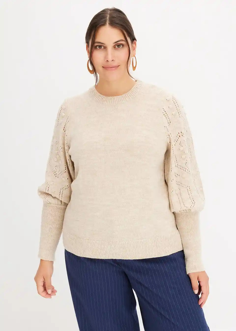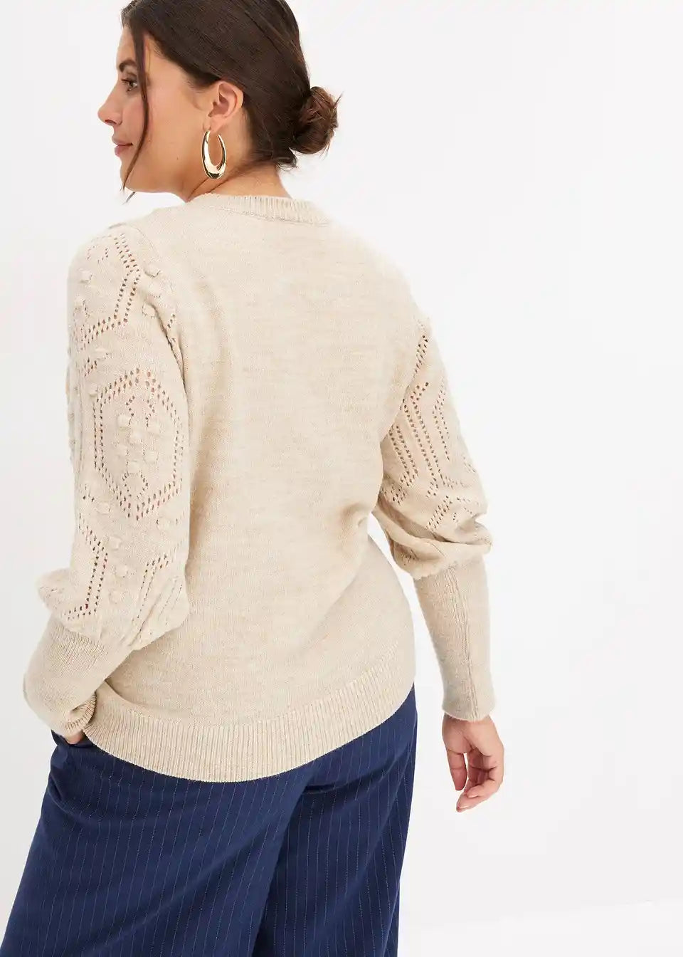 Pulover z ajour vzorcem na rokavih