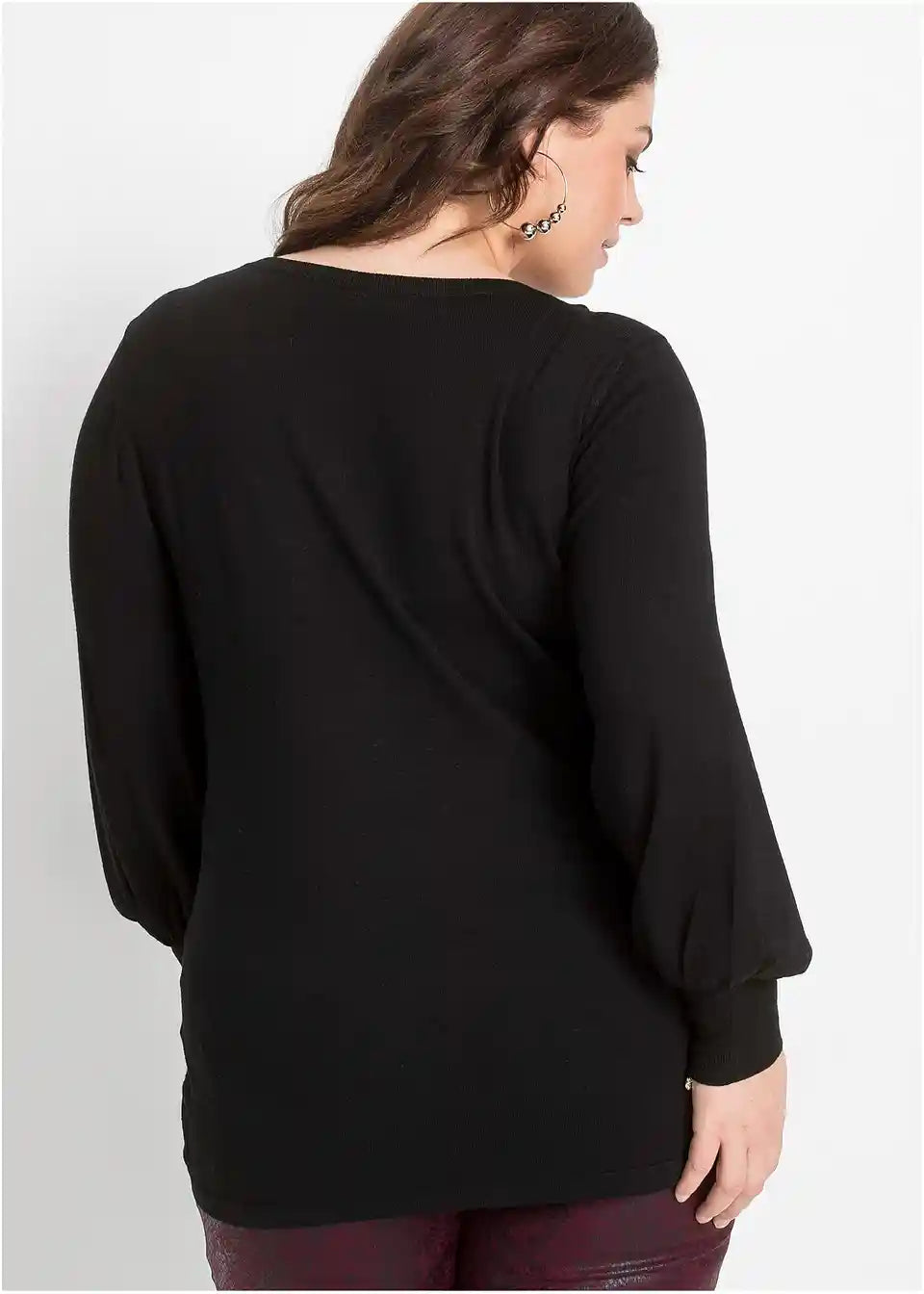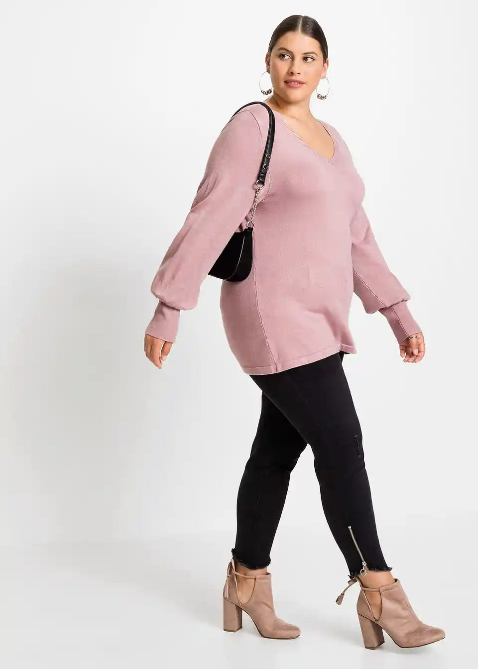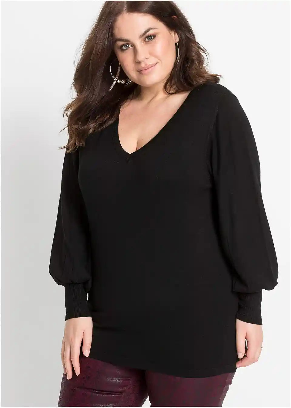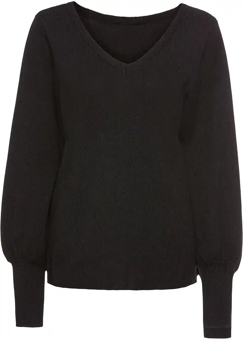 Ne glede na to, ali želite eleganten ali ležeren videz – ta privlačen pulover blagovne znamke BODYFLIRT je vsestransko kombinativen in čudovit poudarek. Eleganten pulover ima široke balonaste rokave, ki se proti zapestju zožajo in zaključijo s širokim patentom. Globok V-izrez poudari privlačen videz puloverja z balonastimi rokavi, ki sega čez boke.