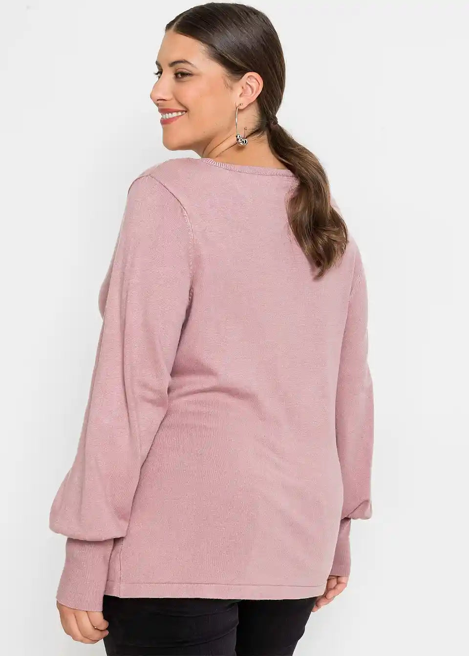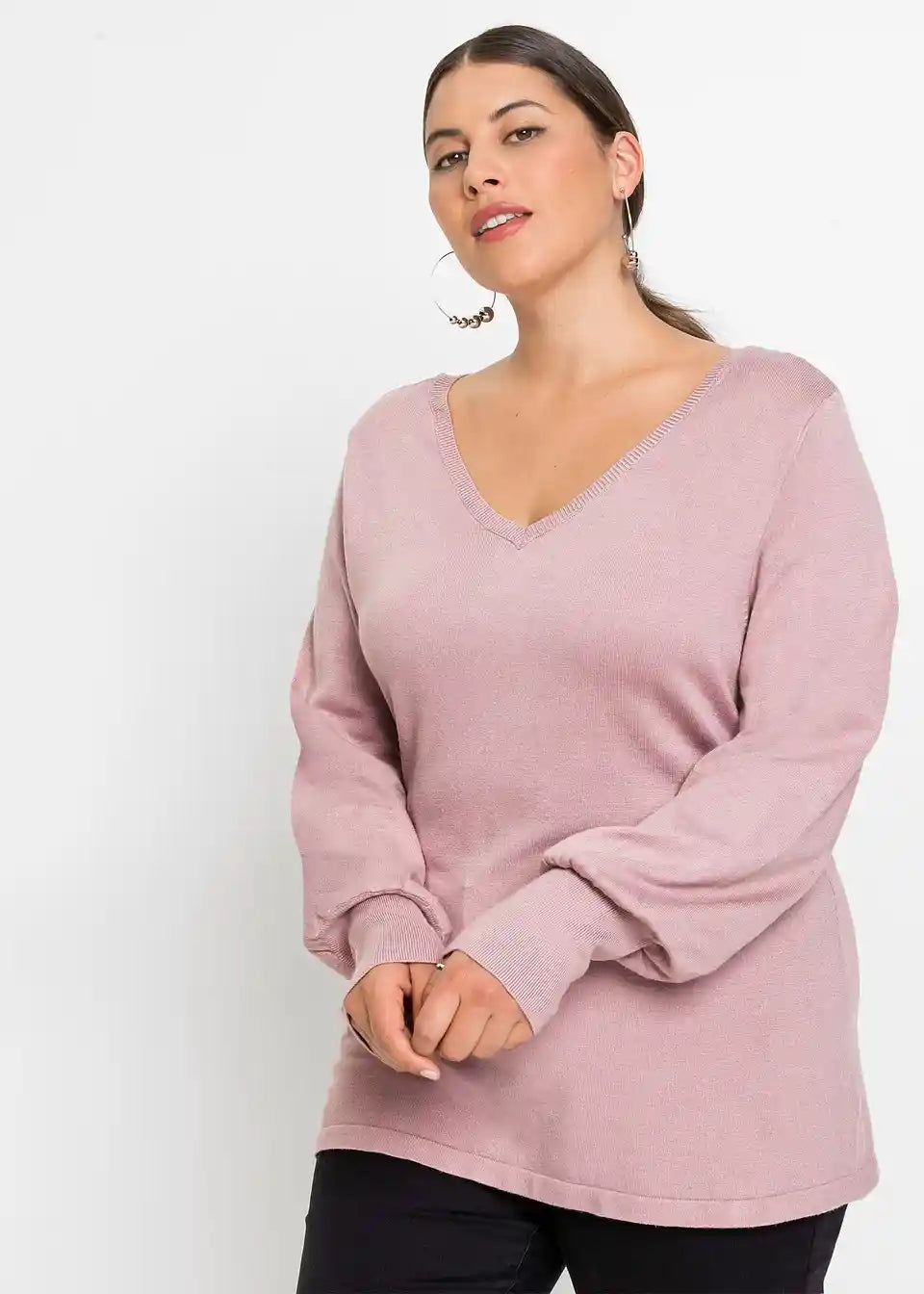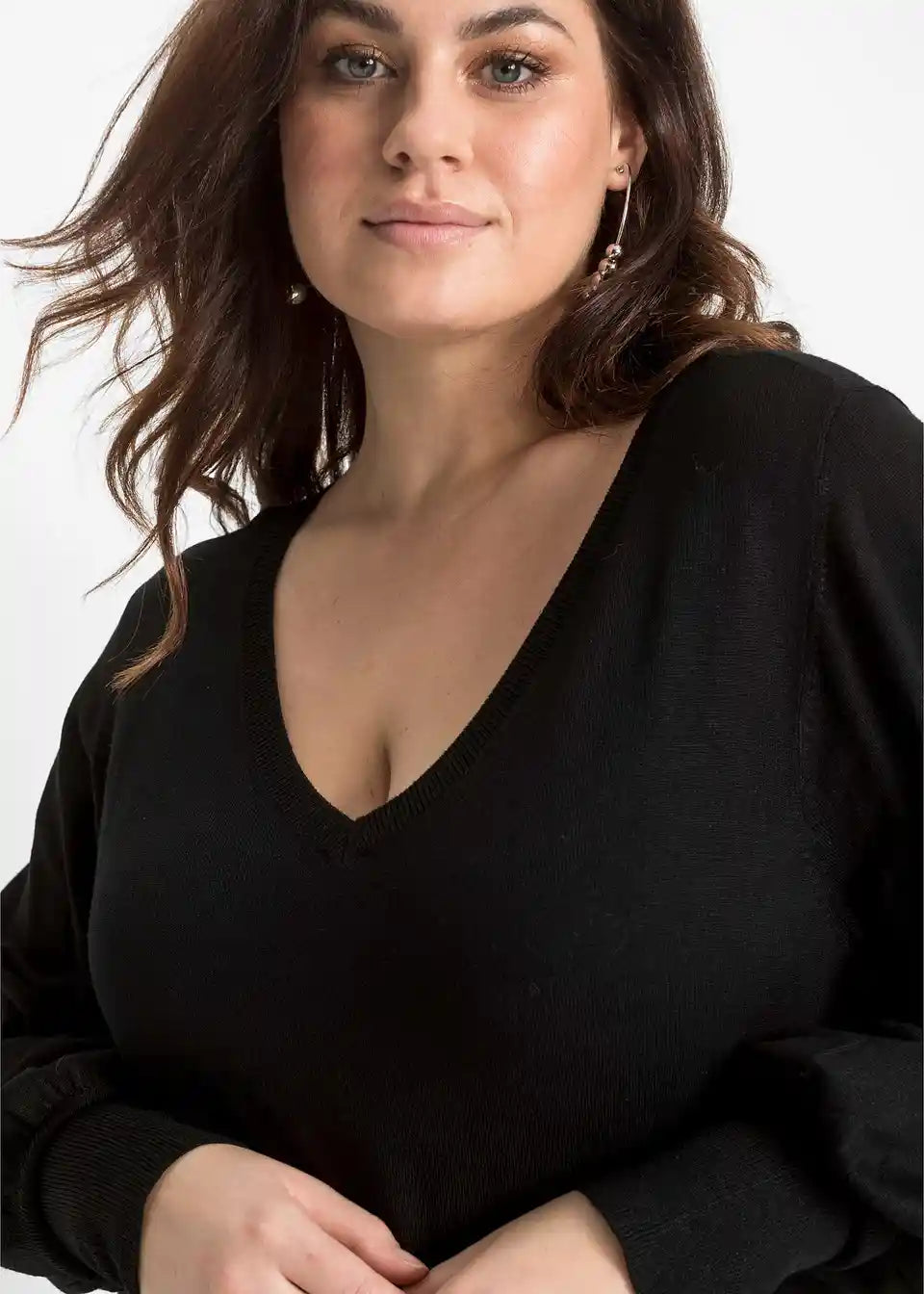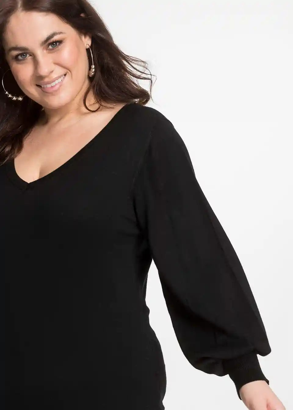 Ne glede na to, ali želite eleganten ali ležeren videz – ta privlačen pulover blagovne znamke BODYFLIRT je vsestransko kombinativen in čudovit poudarek. Eleganten pulover ima široke balonaste rokave, ki se proti zapestju zožajo in zaključijo s širokim patentom. Globok V-izrez poudari privlačen videz puloverja z balonastimi rokavi, ki sega čez boke.