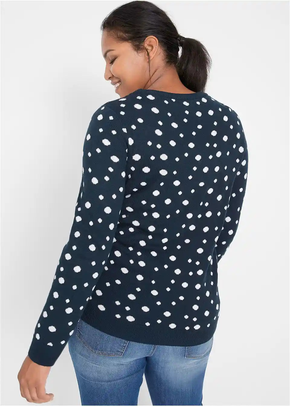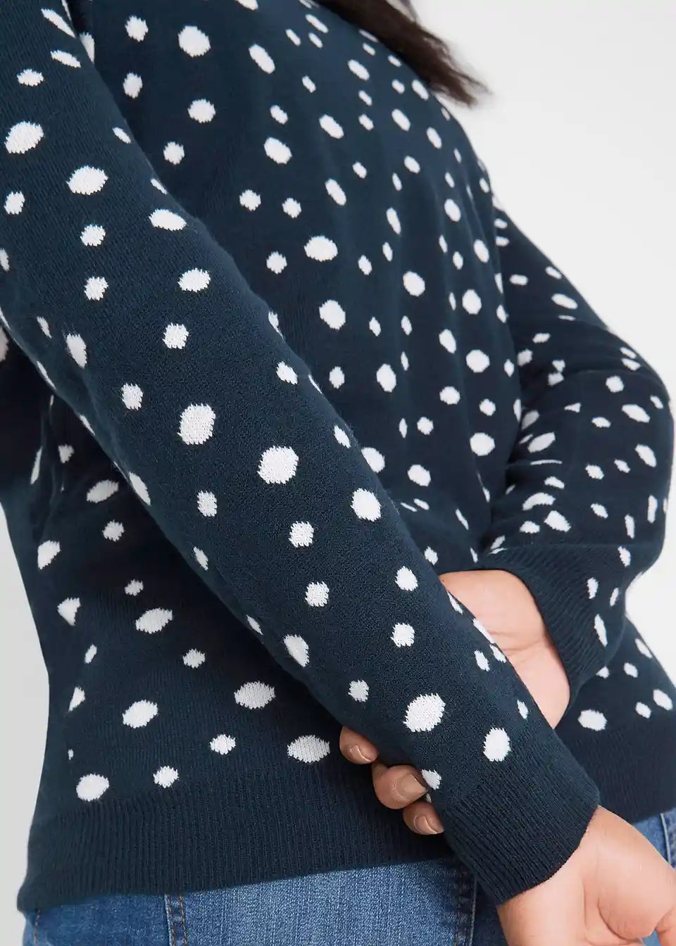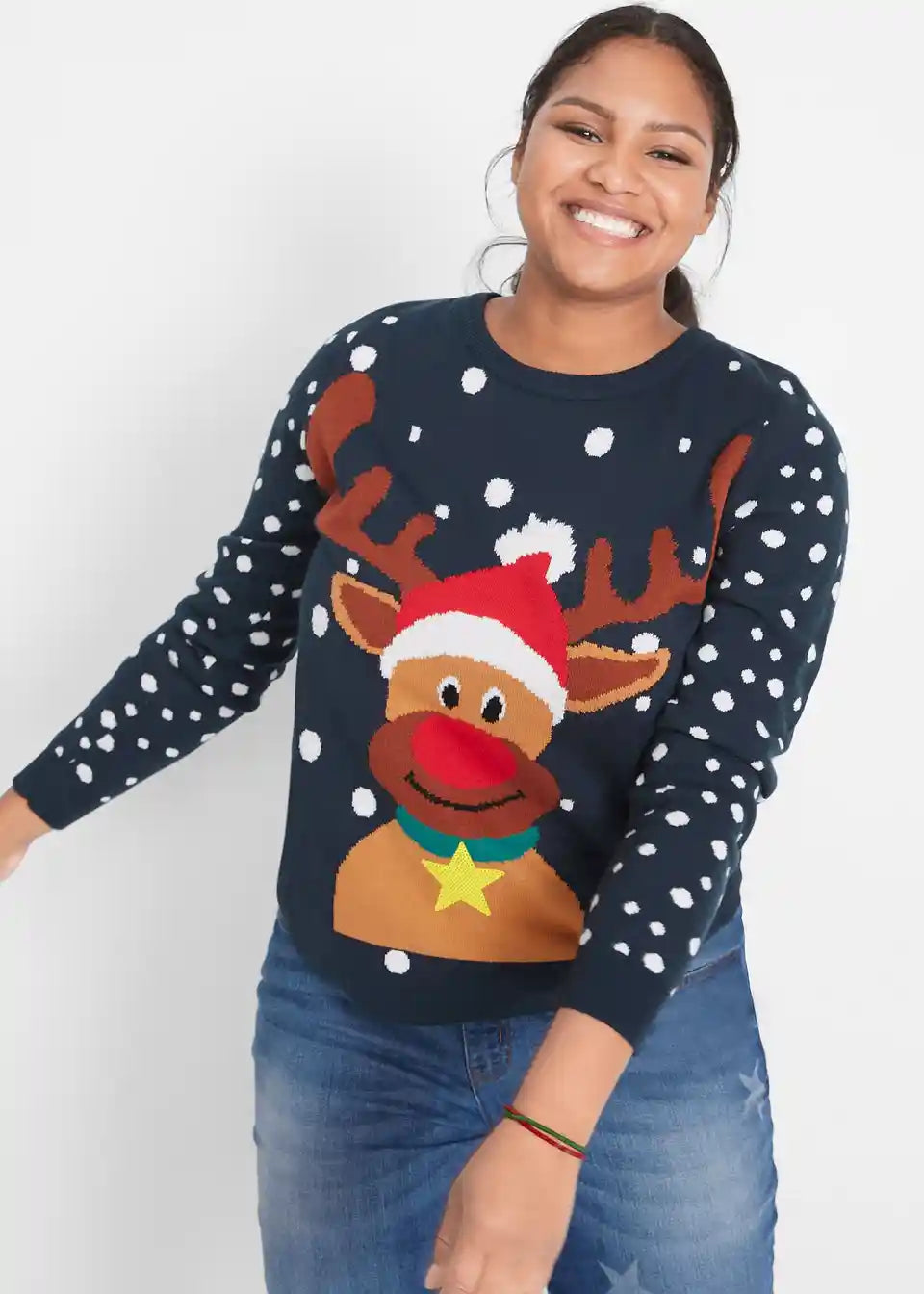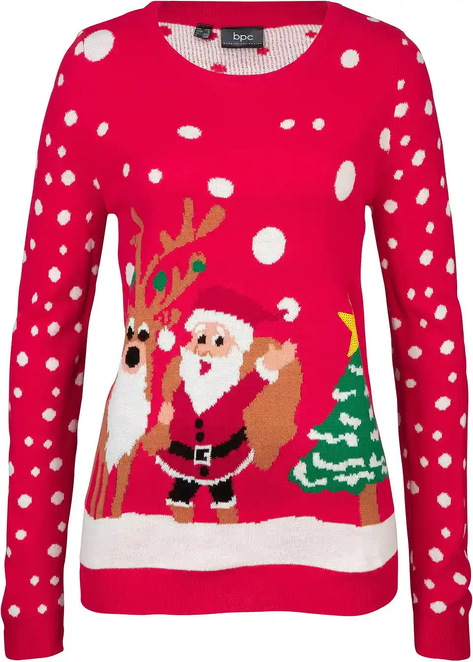 Pleten pulover z božičnim motivom in okroglim izrezom
