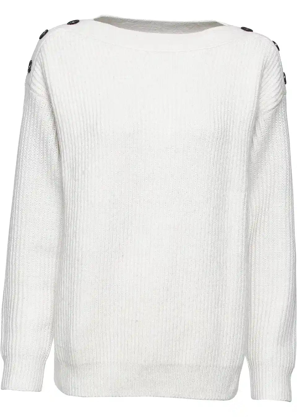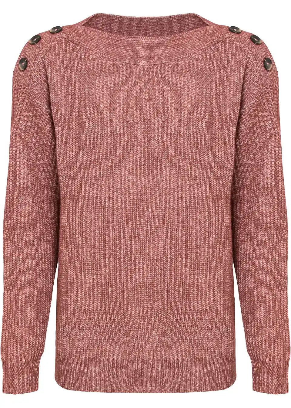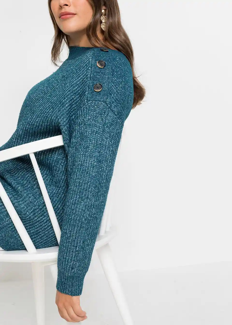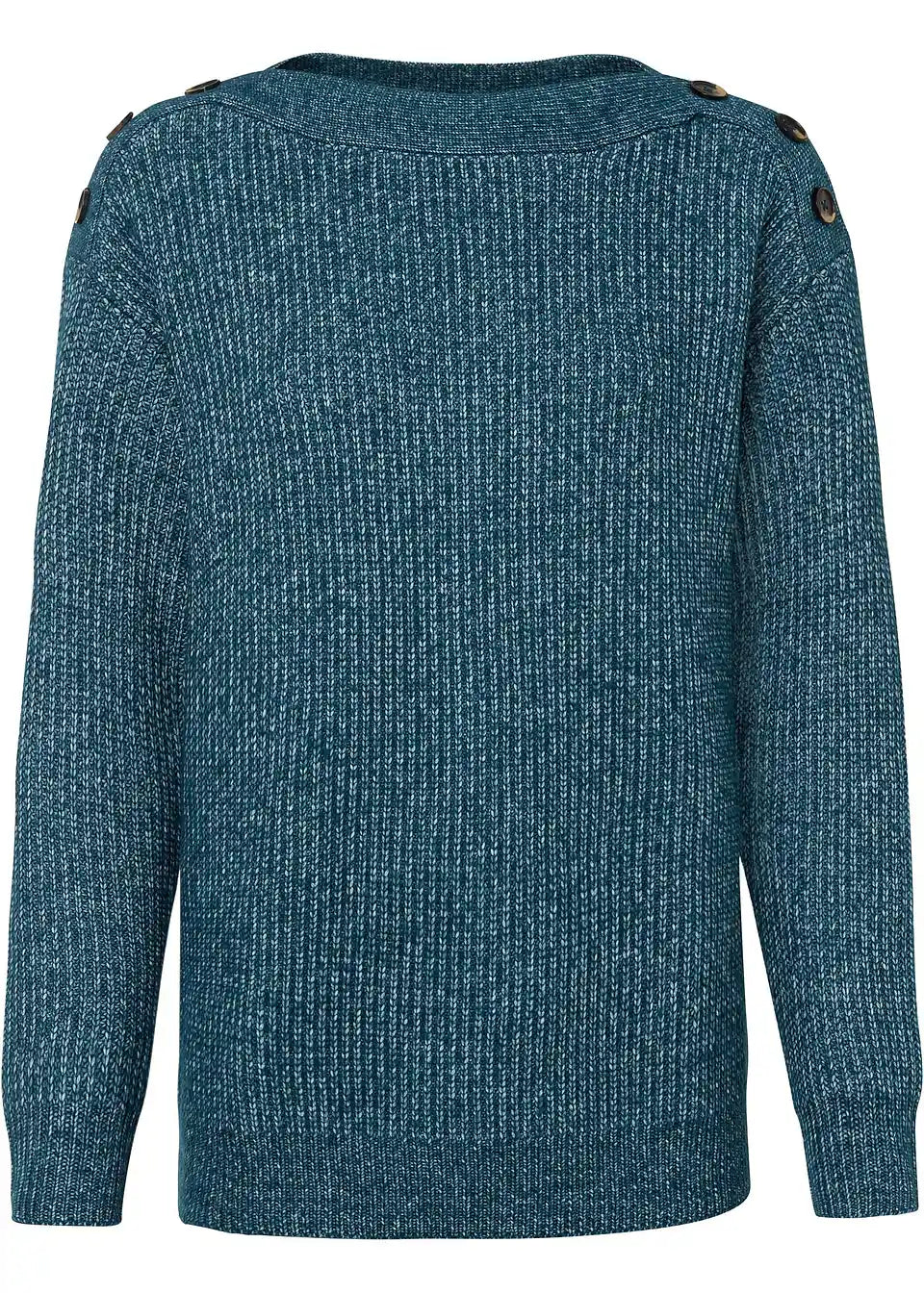 Čudovit pulover z gumbi znamke Bodyflirt. Pulover ima izrez v obliki čolna, ki je na koncu okrašen z gumbi. Vizualna dolžina pri št. 36/38 je približno 64 cm.