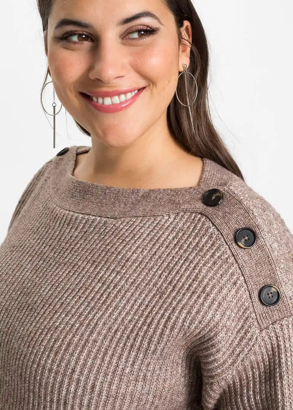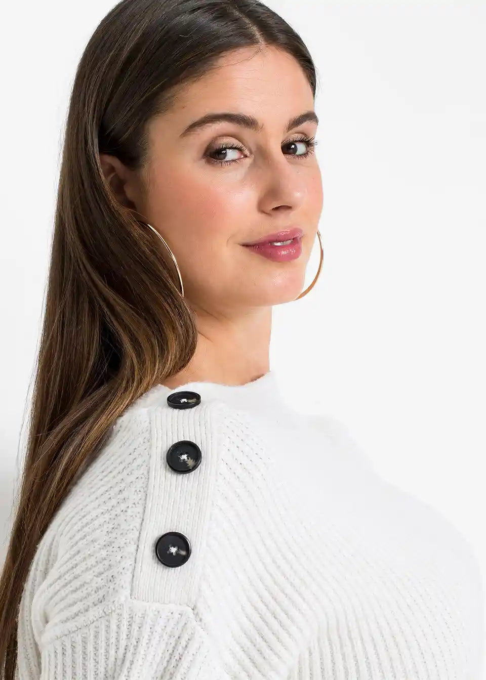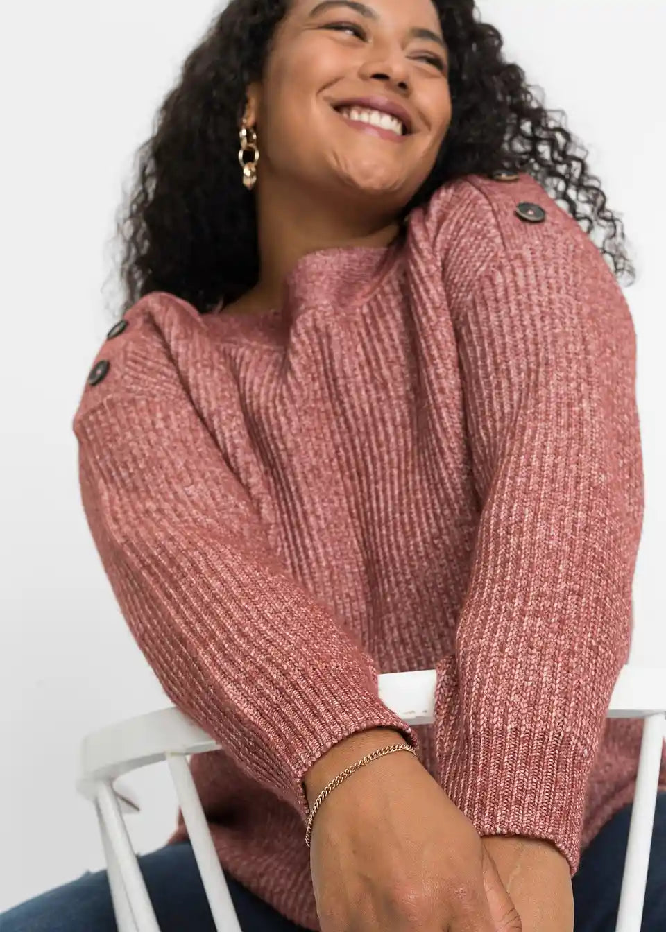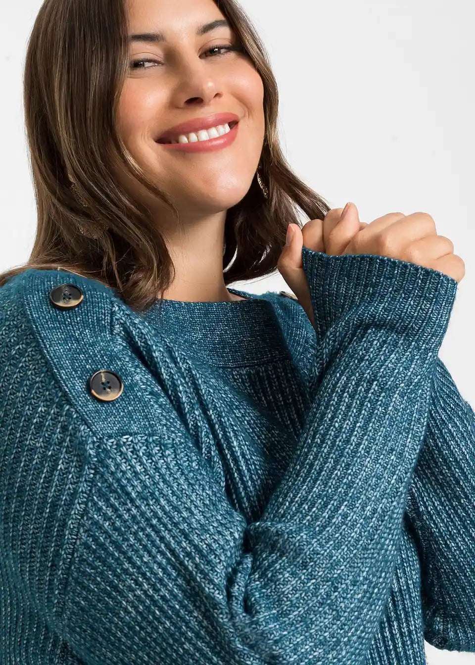Čudovit pulover z gumbi znamke Bodyflirt. Pulover ima izrez v obliki čolna, ki je na koncu okrašen z gumbi. Vizualna dolžina pri št. 36/38 je približno 64 cm.