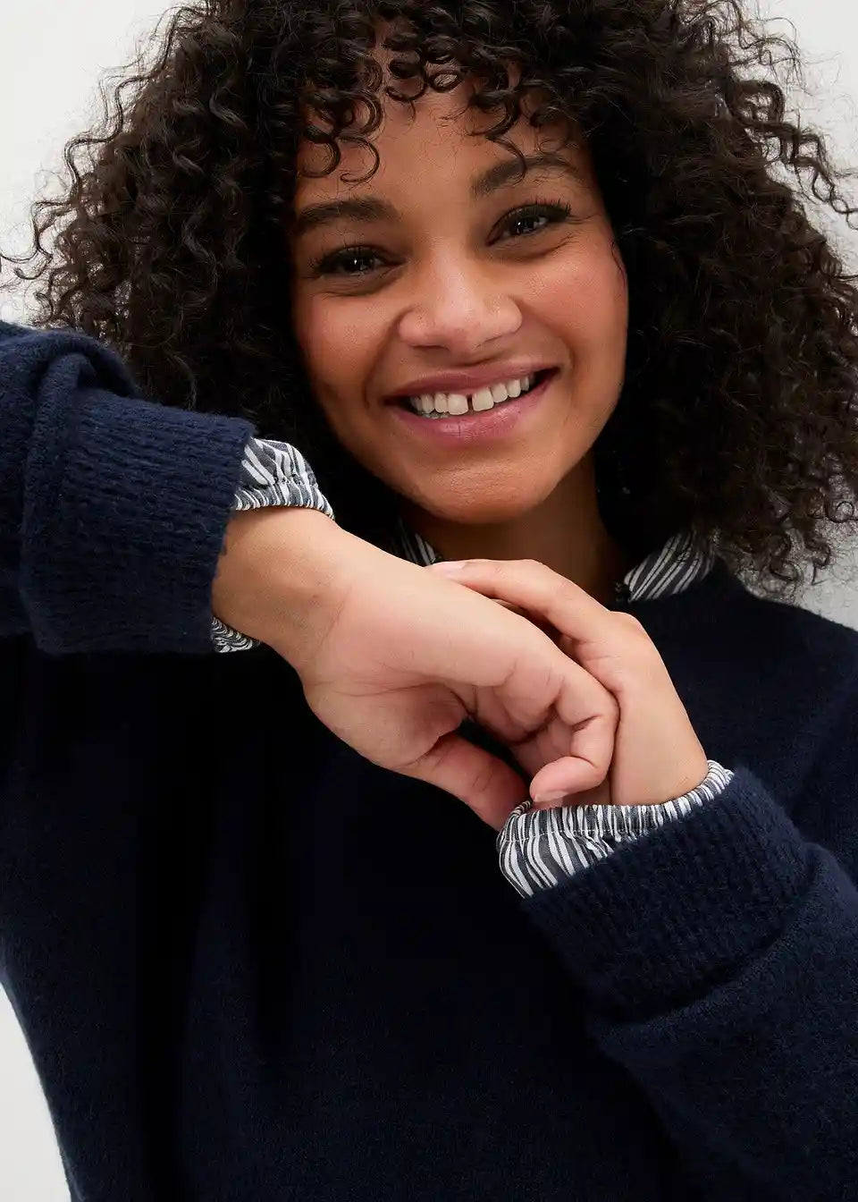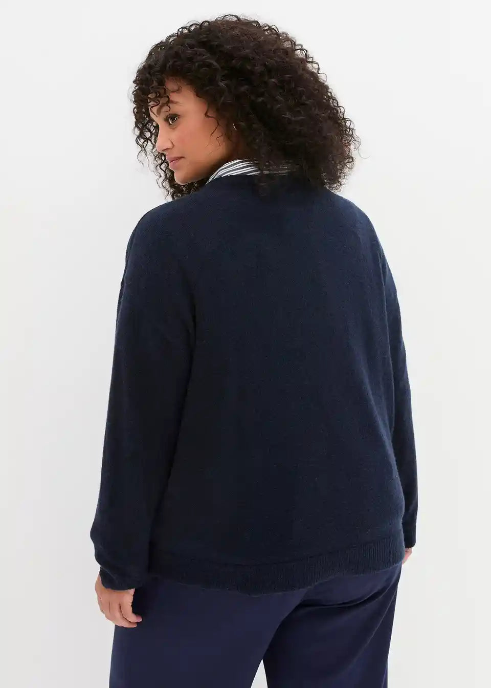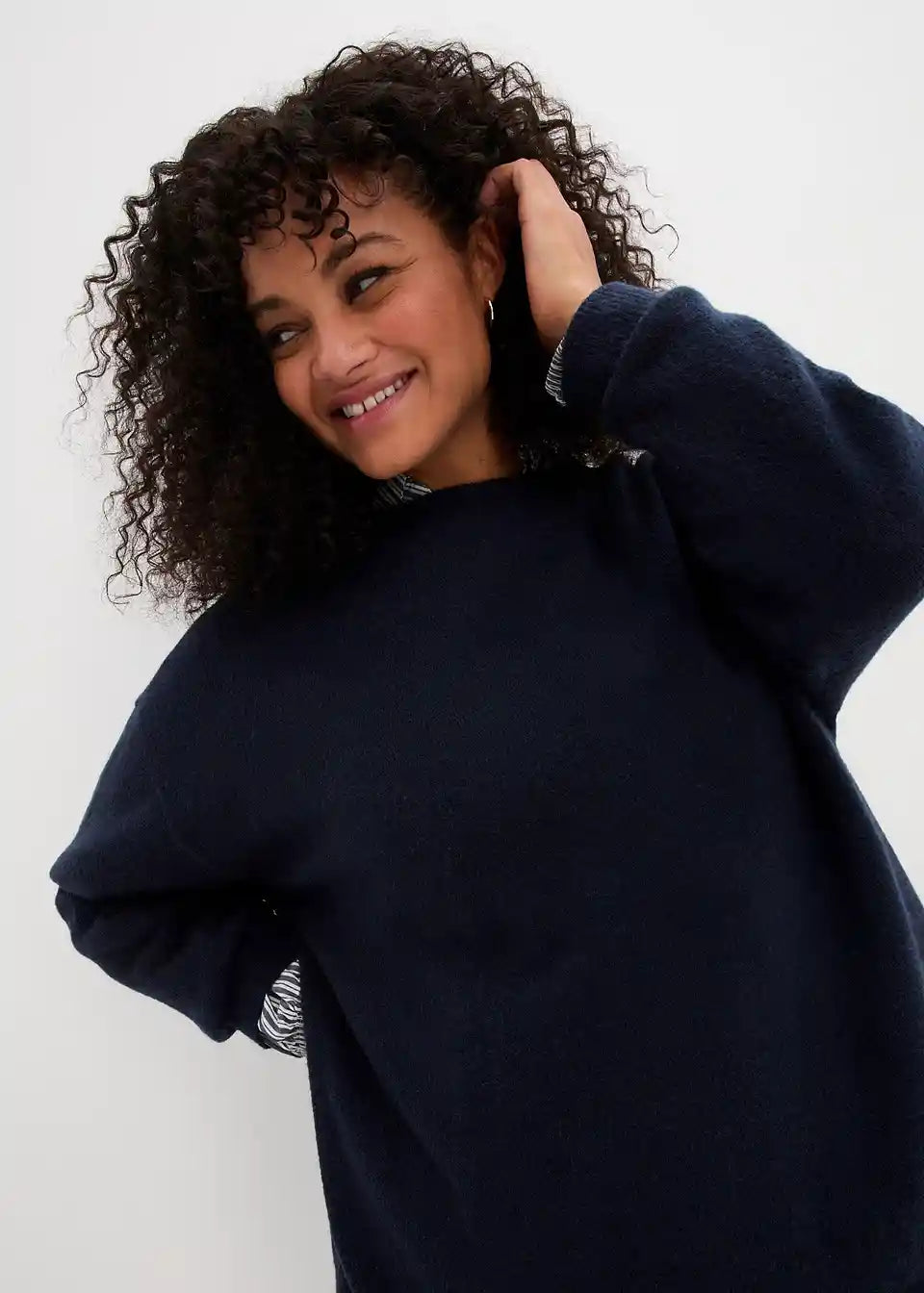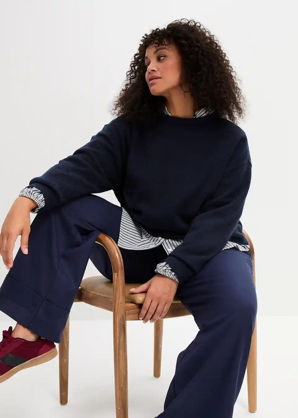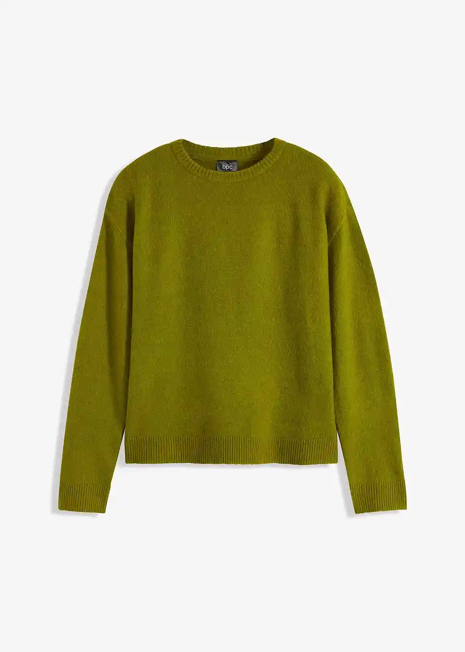 Pulover z okroglim izrezom in v rokave podaljšanimi ramami