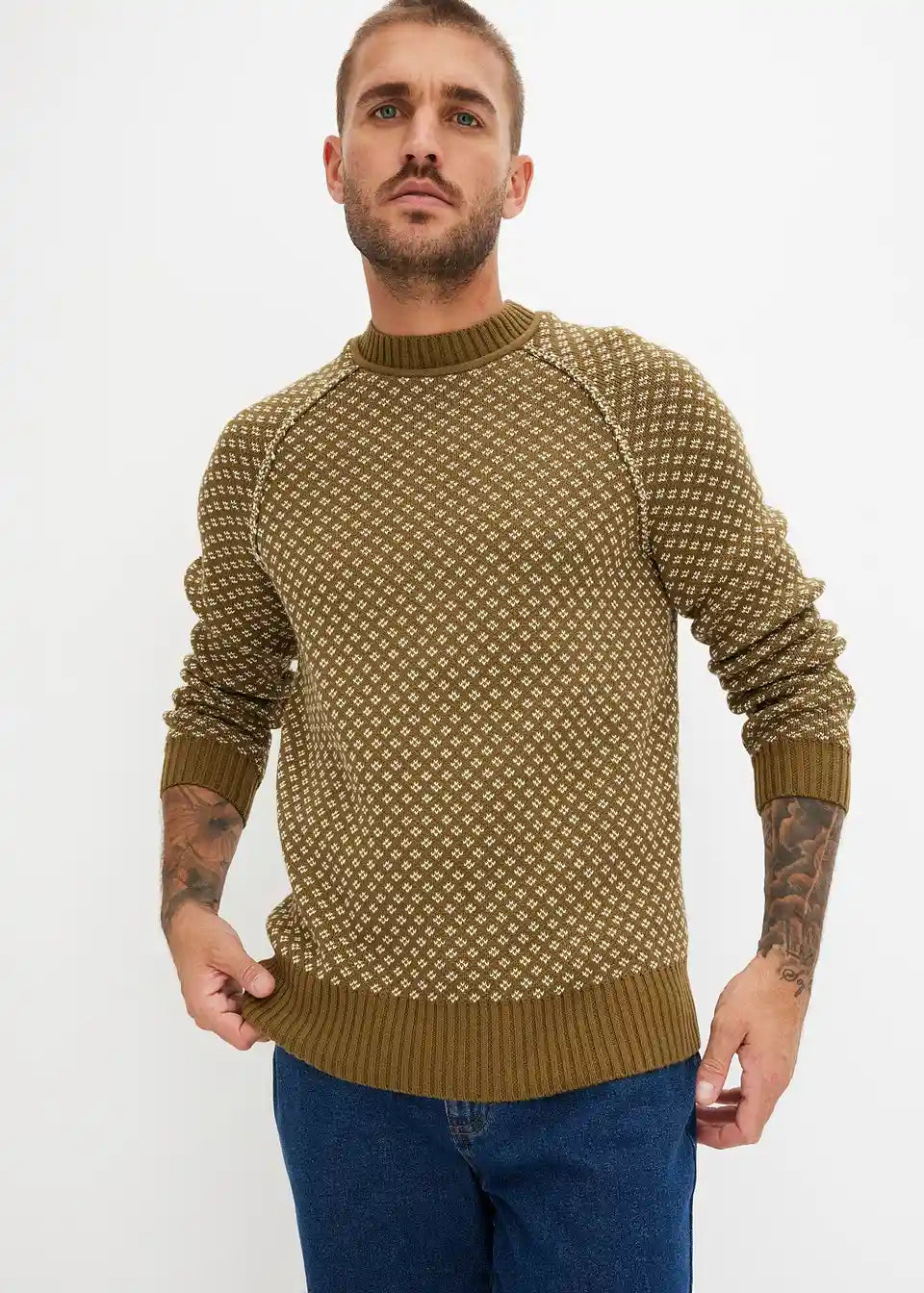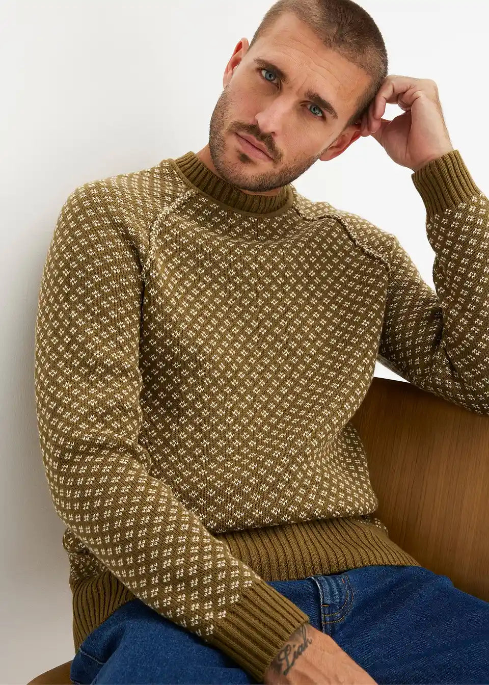 Modni pulover z okroglim izrezom z minimalnim vzorcem
