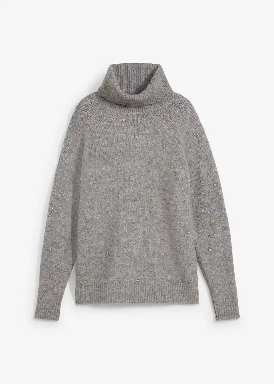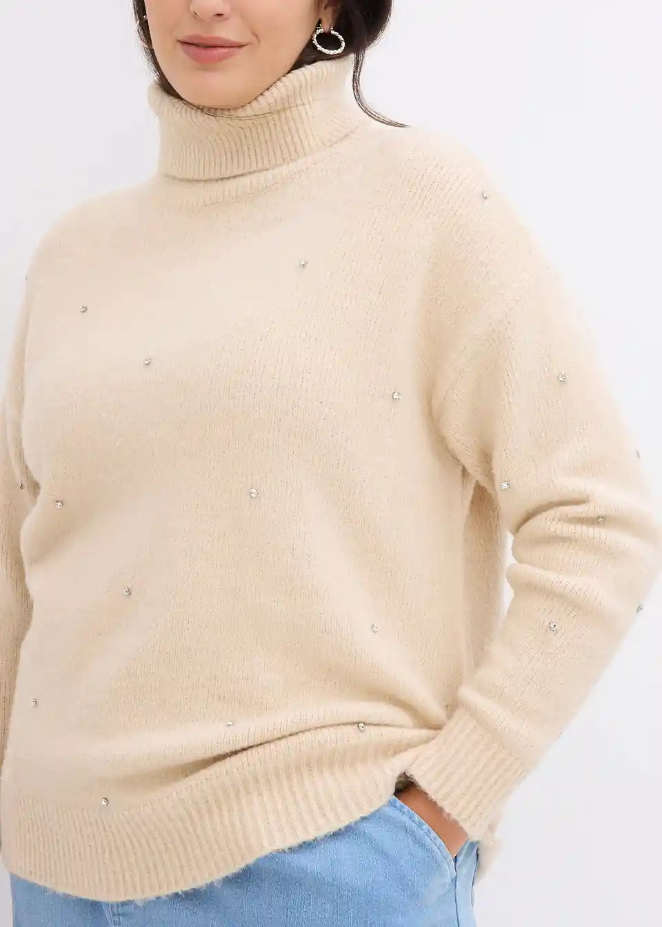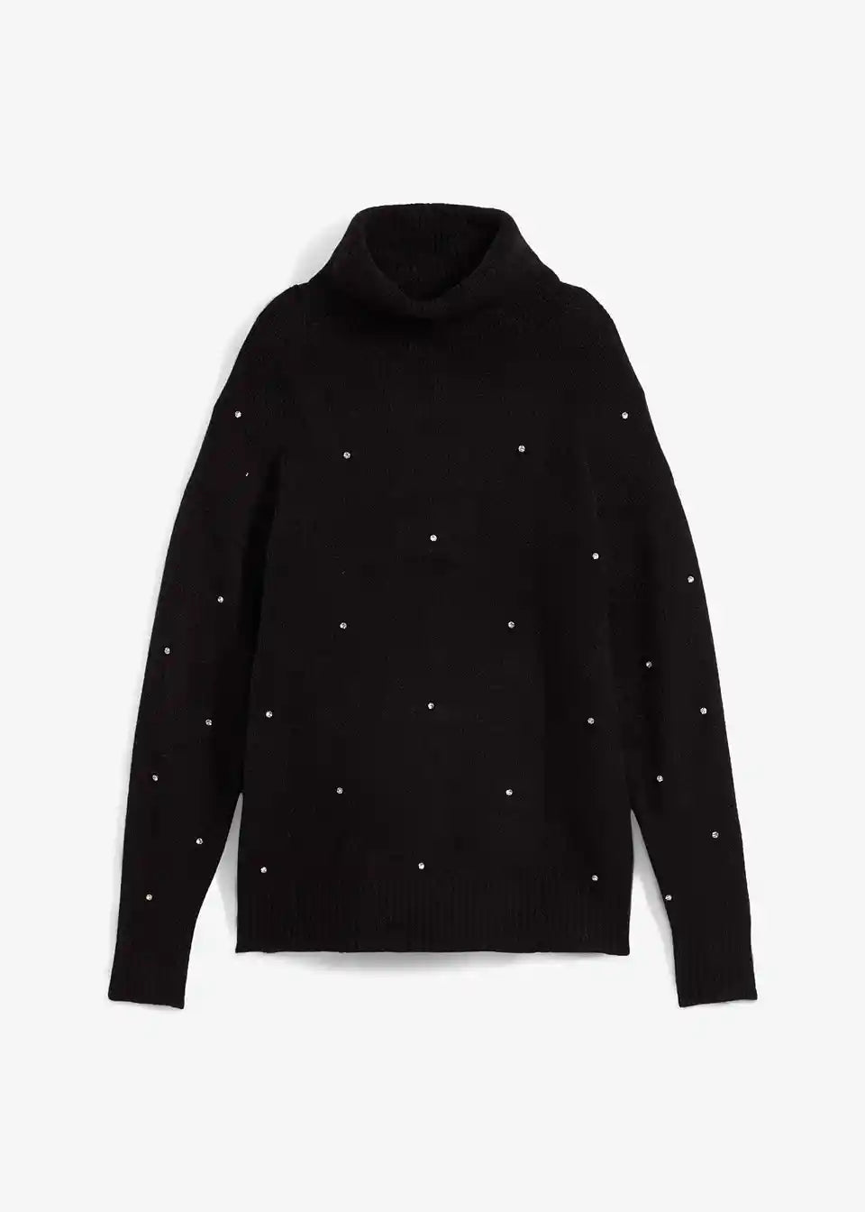 Pulover s puli ovratnikom in bleščečimi kamenčki