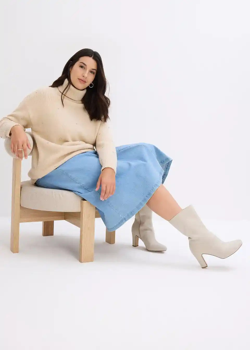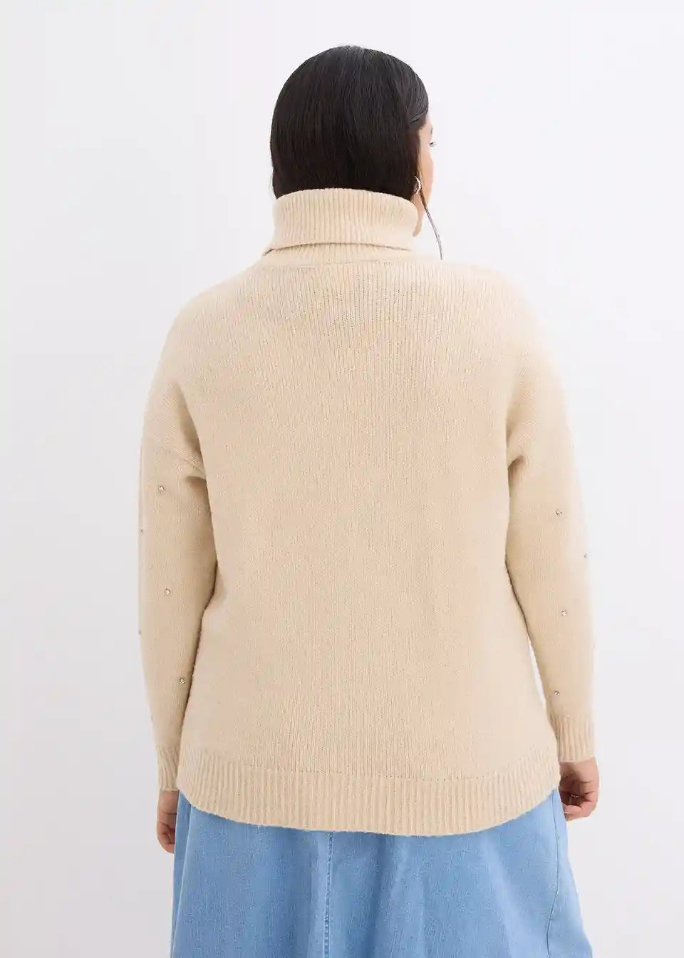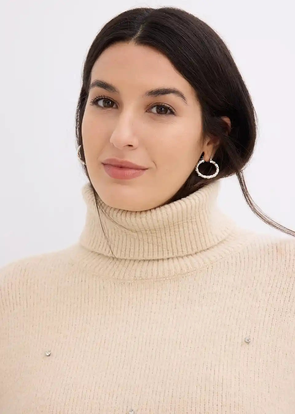 Pulover s puli ovratnikom in bleščečimi kamenčki