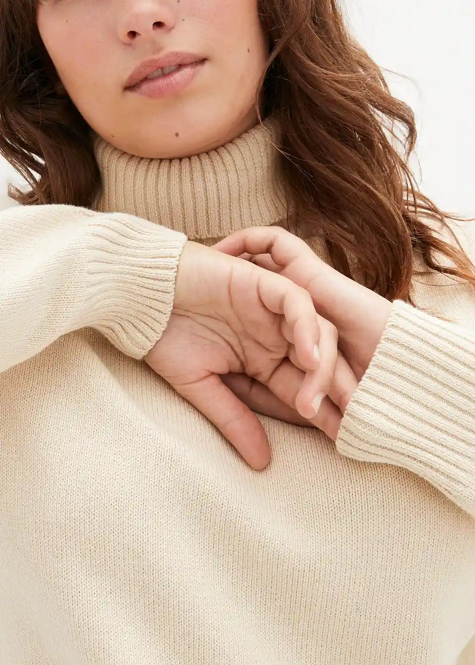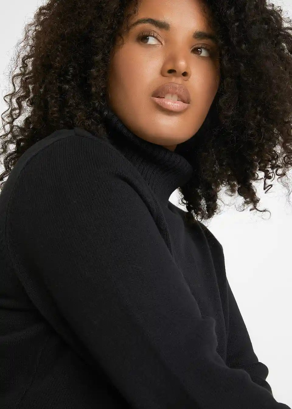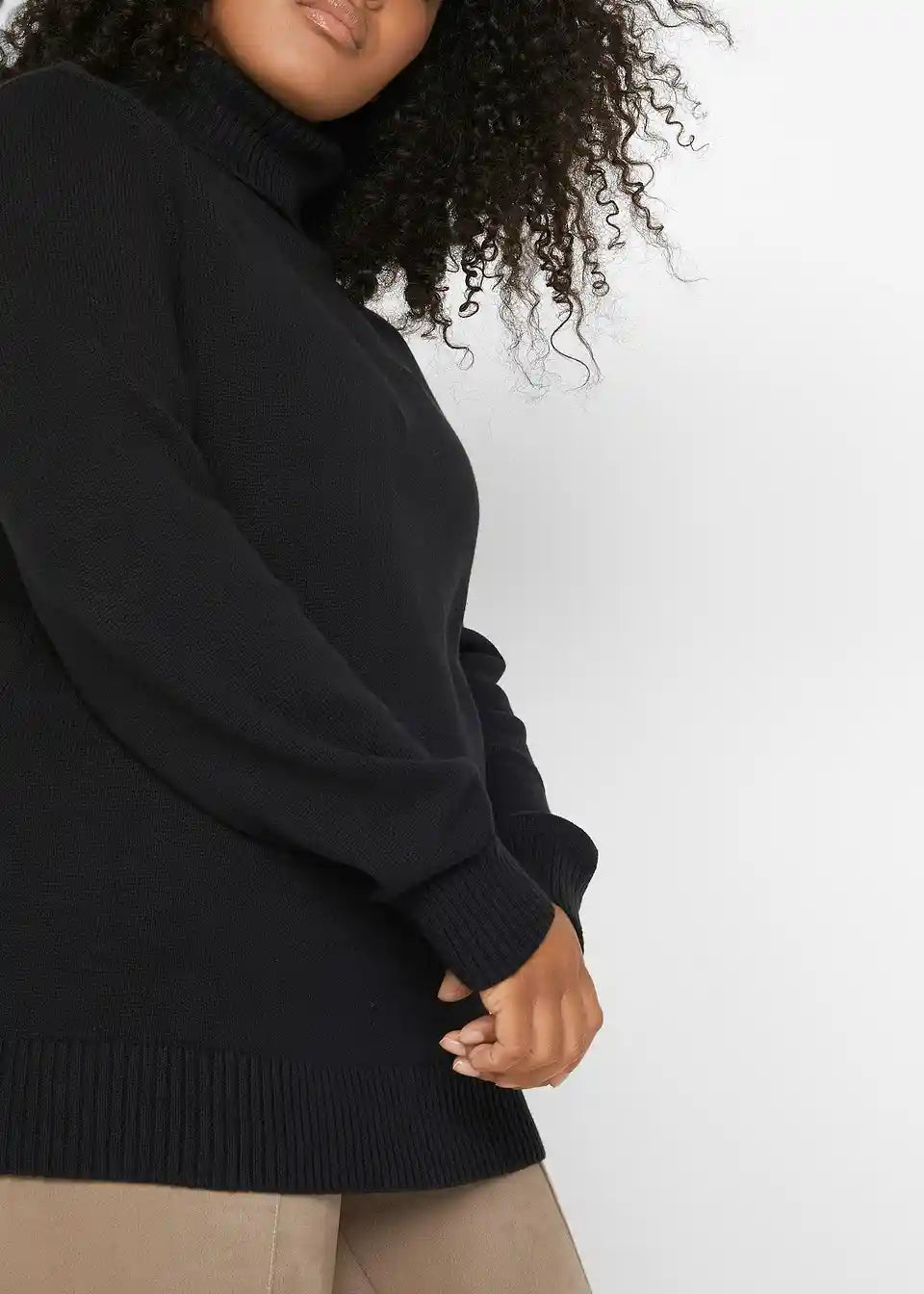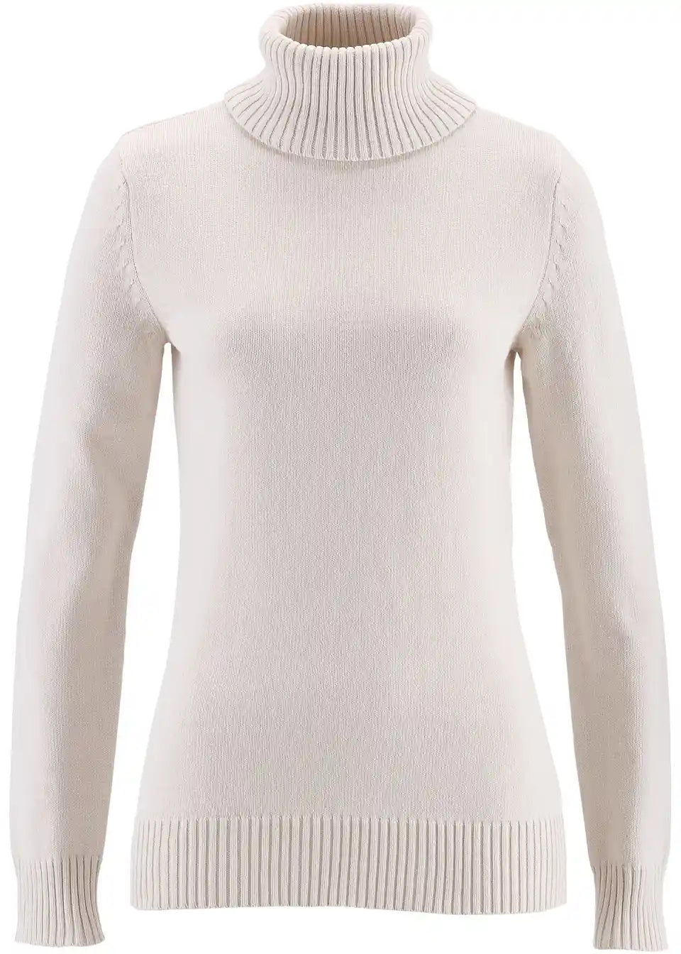 Privlačen pulover z visokim ovratnikom in rebrastimi robovi