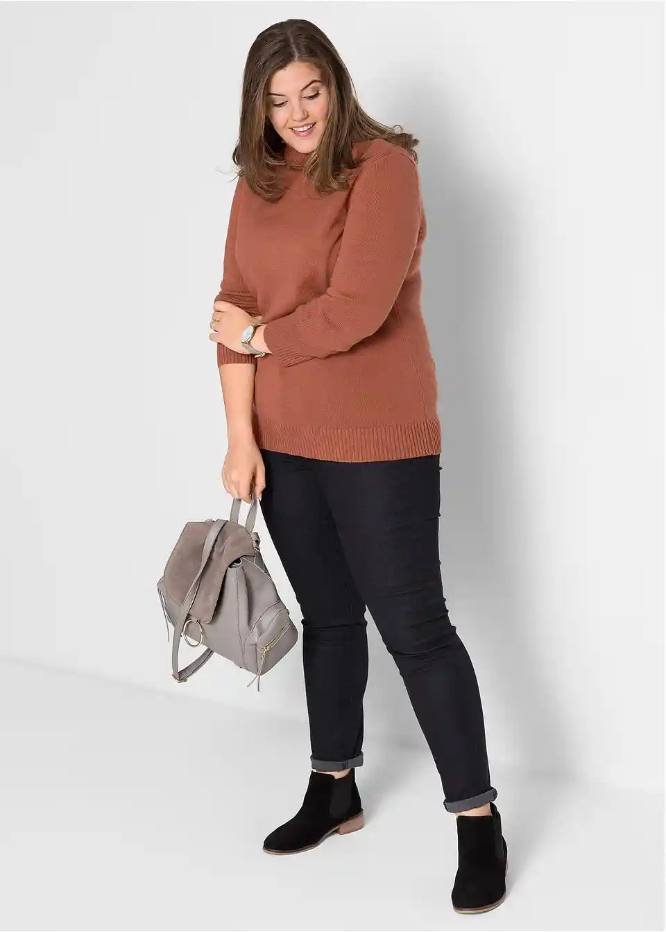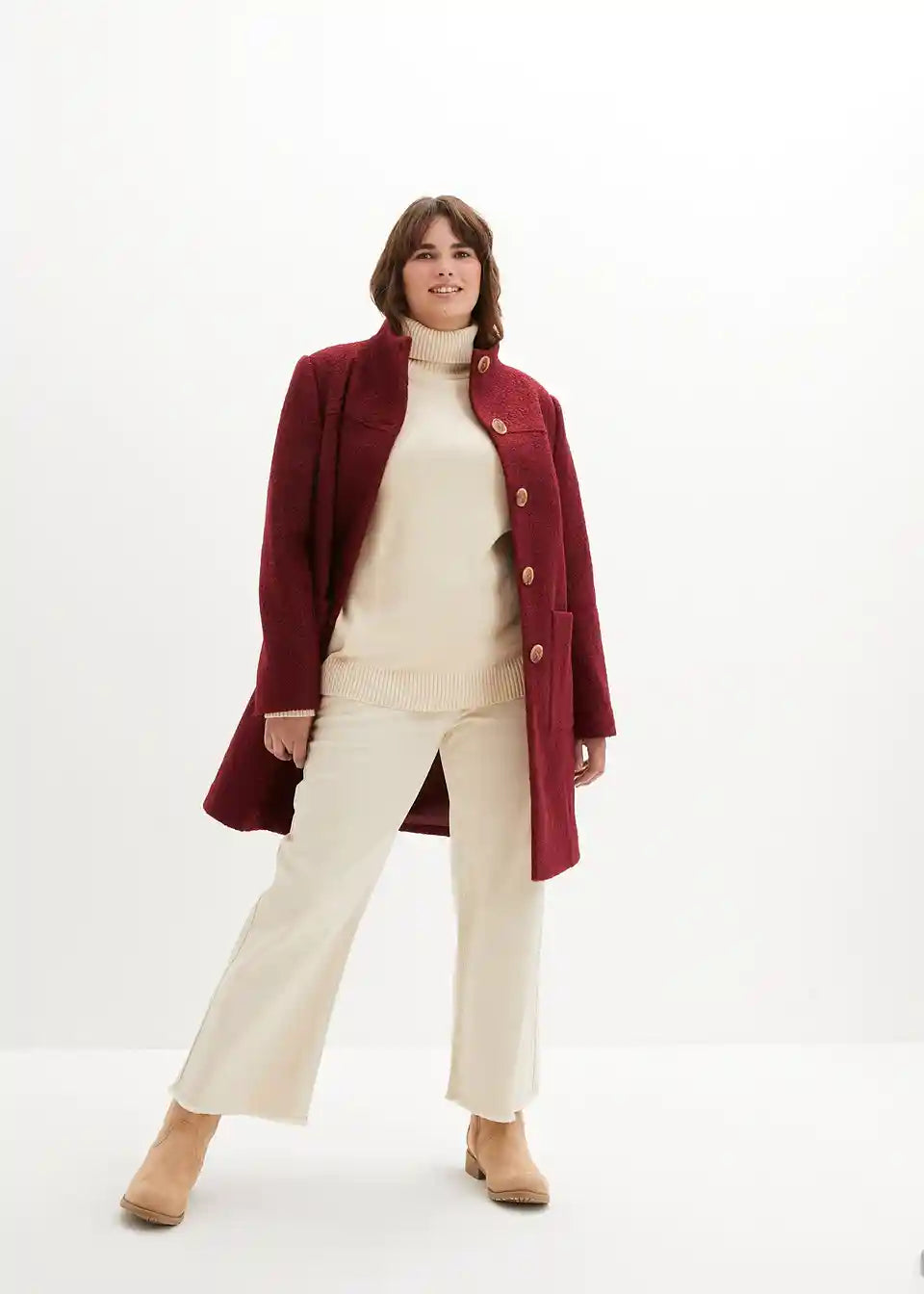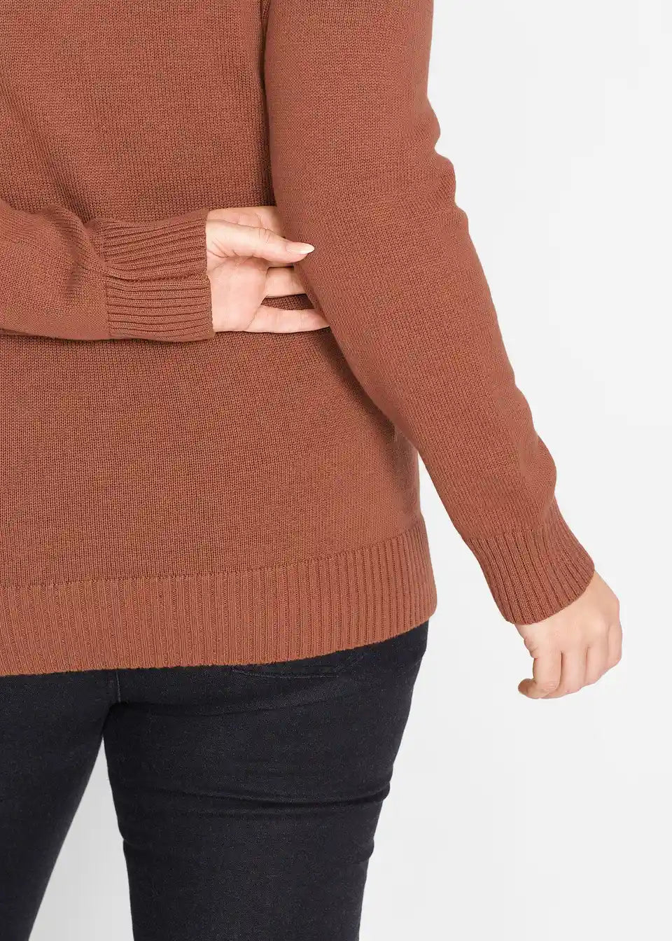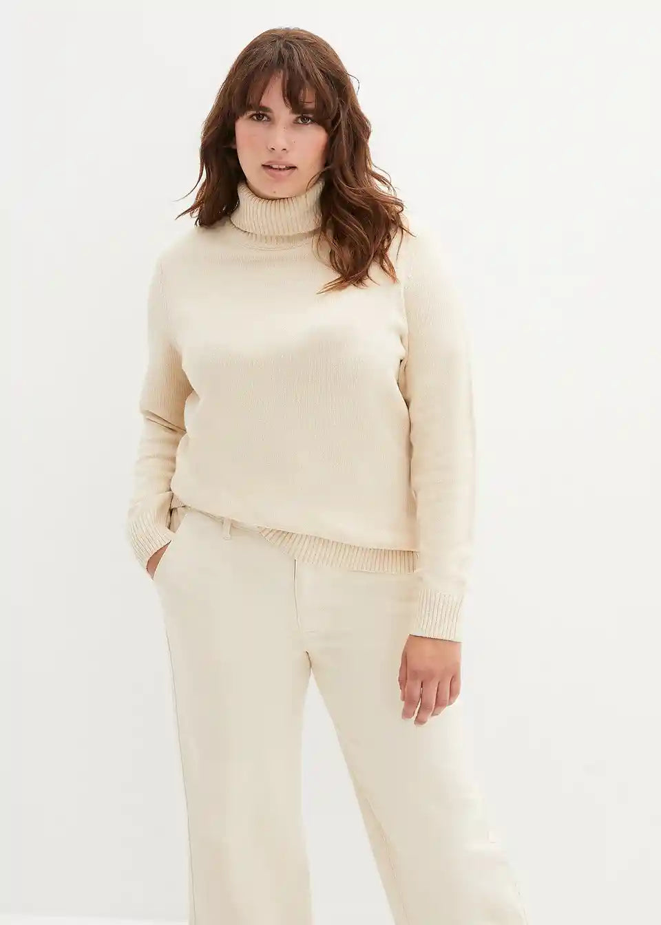 Osnovni kos za hladnejše dni je čudovit pulover z visokim ovratnikom znamke bpc. Prijetno mehki rebrasti robovi na rokavih in spodnjem robu zagotavljajo udobje pri nošenju in dober oprijem. Kombinirati ga je mogoče s kavbojkami ali žametnimi krili. Gležnjarji ali škornji dopolnijo videz.