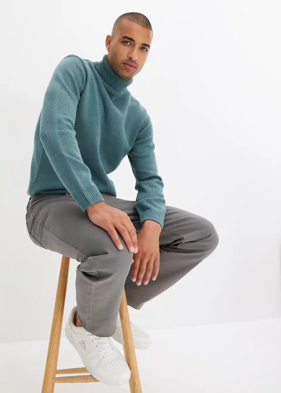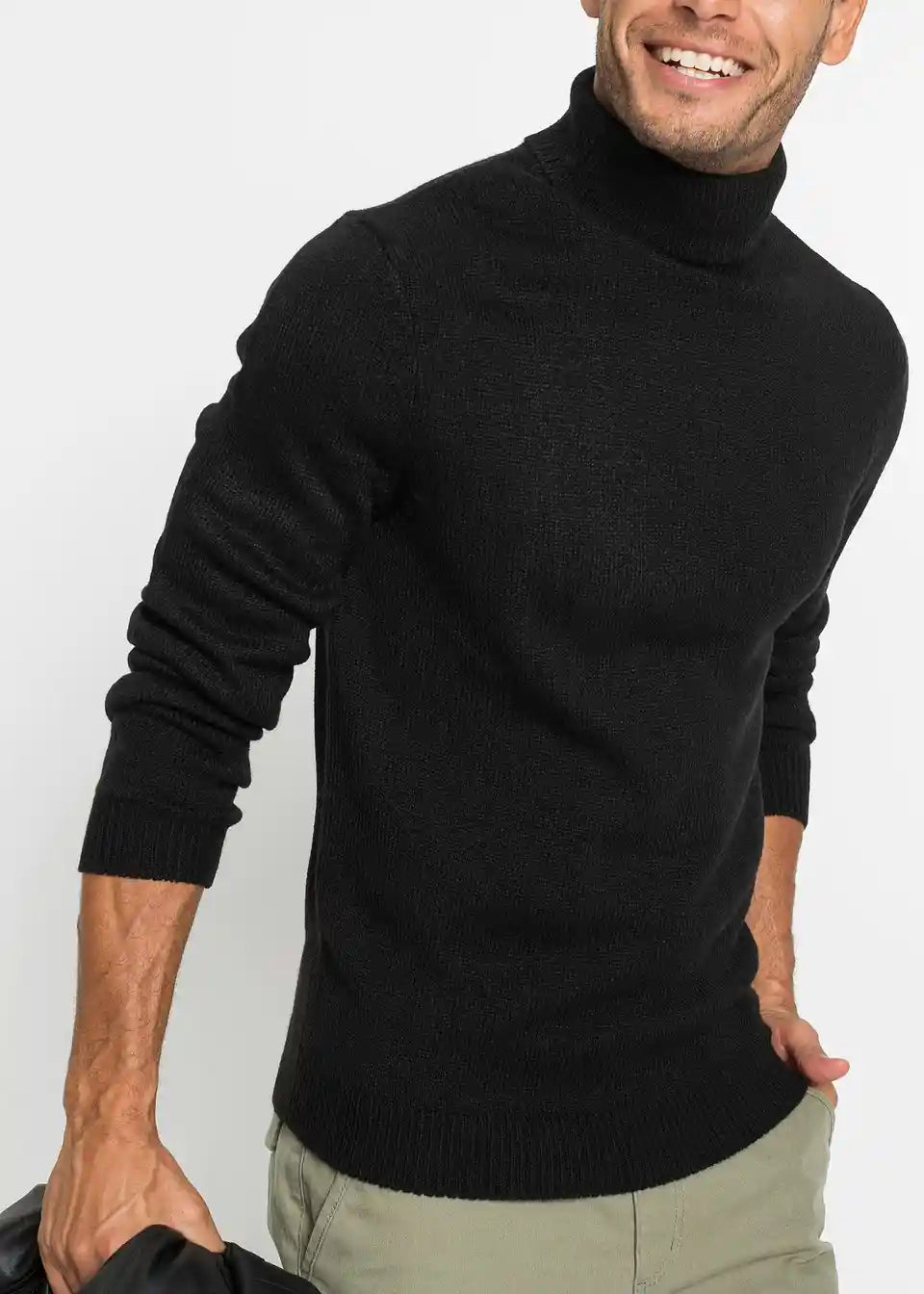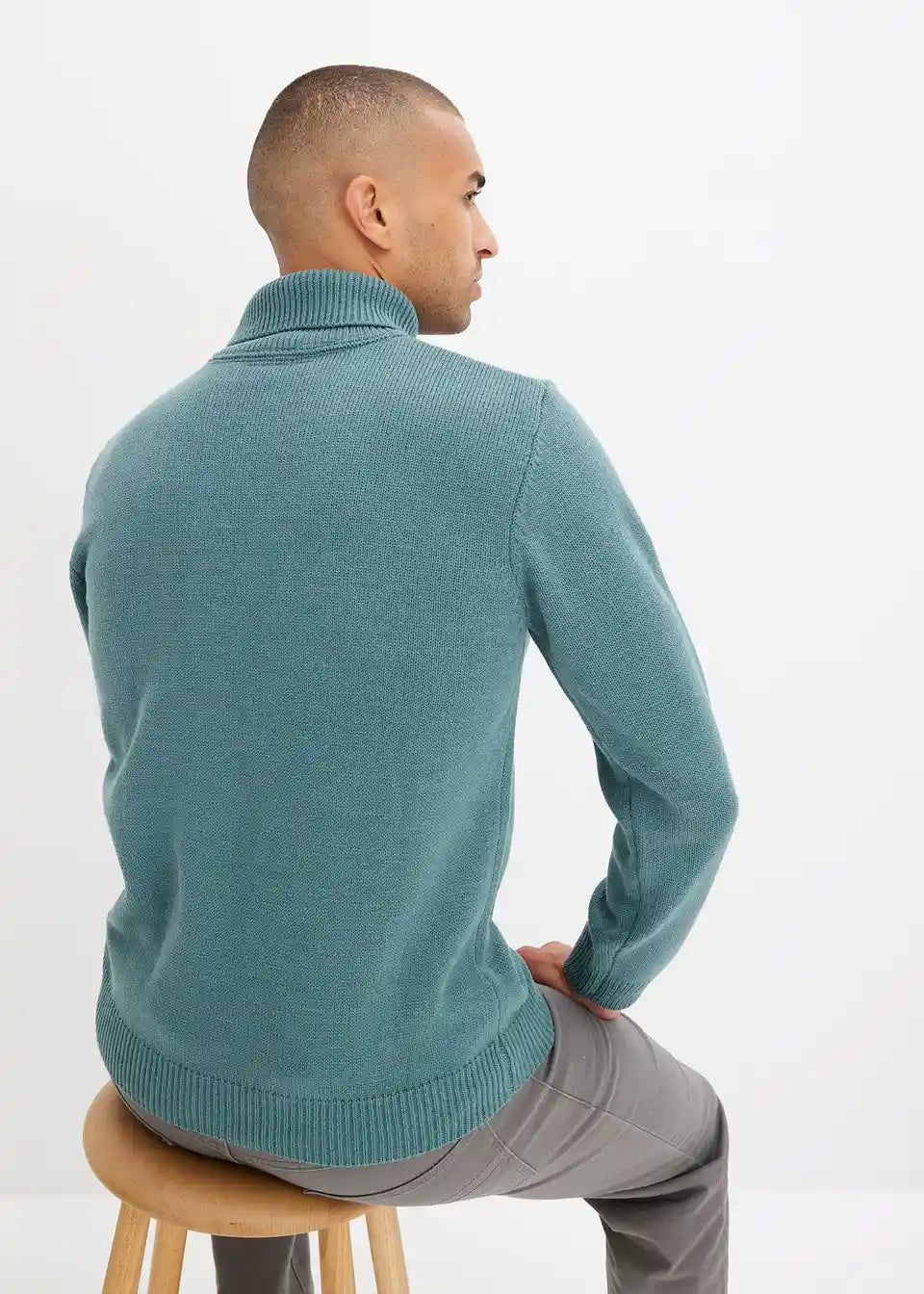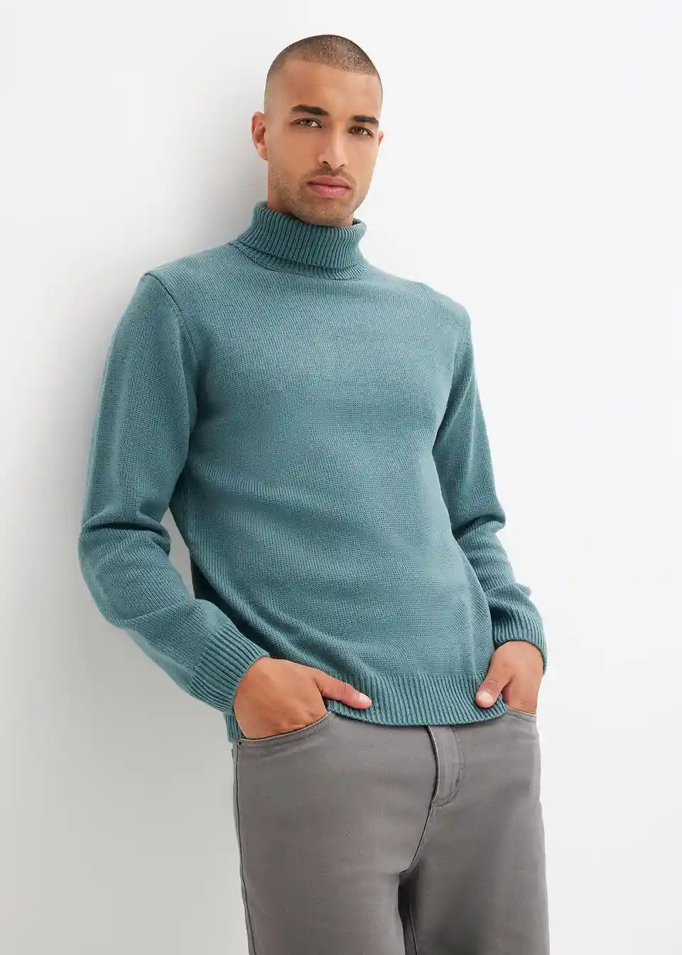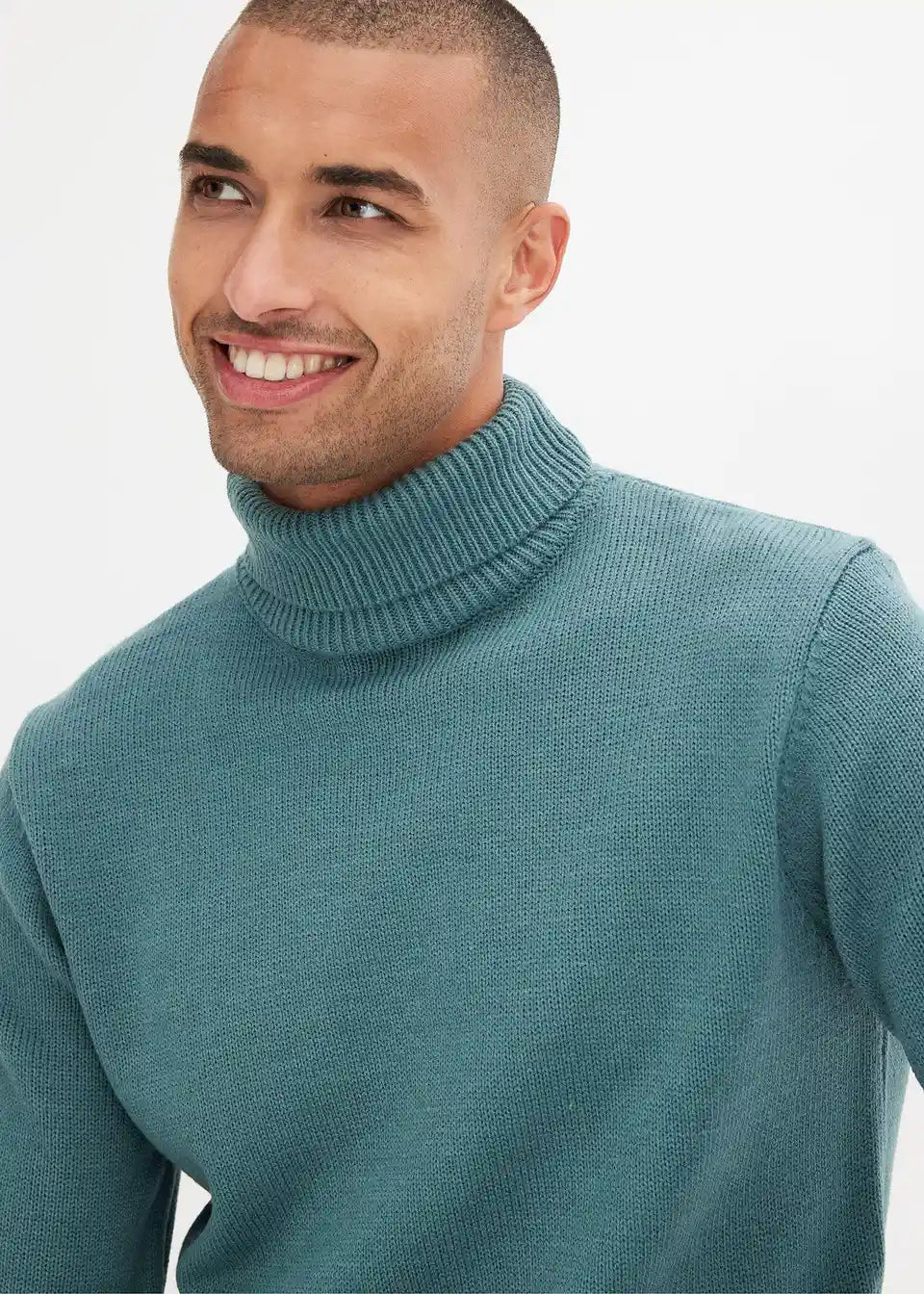 Čudovit osnovni pulover z visokim ovratnikom in rebrastimi zaključki