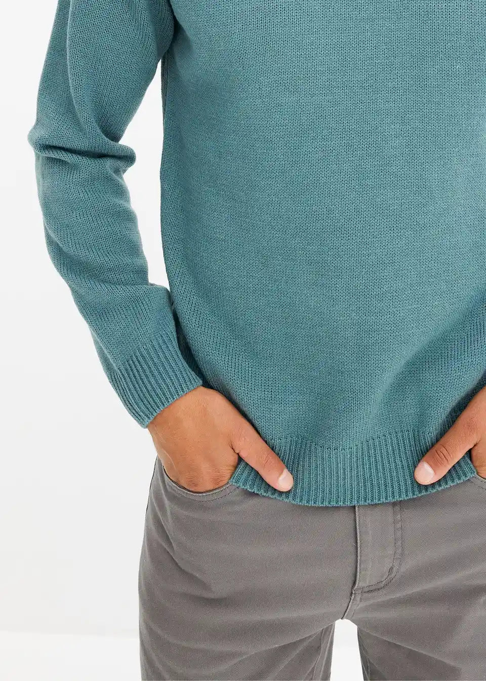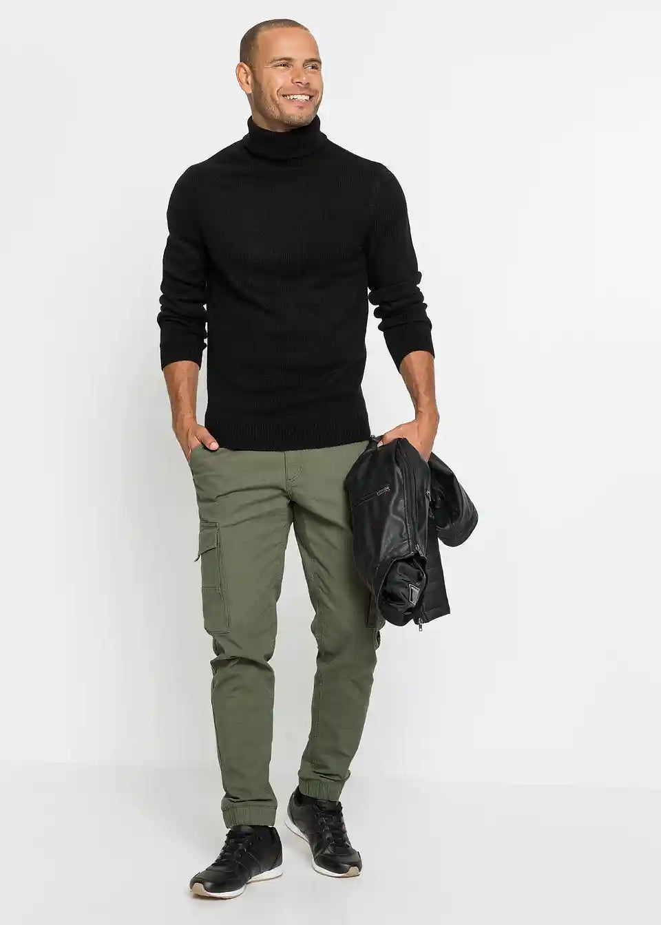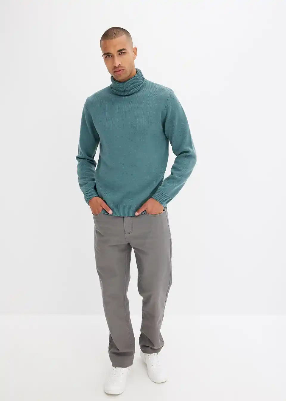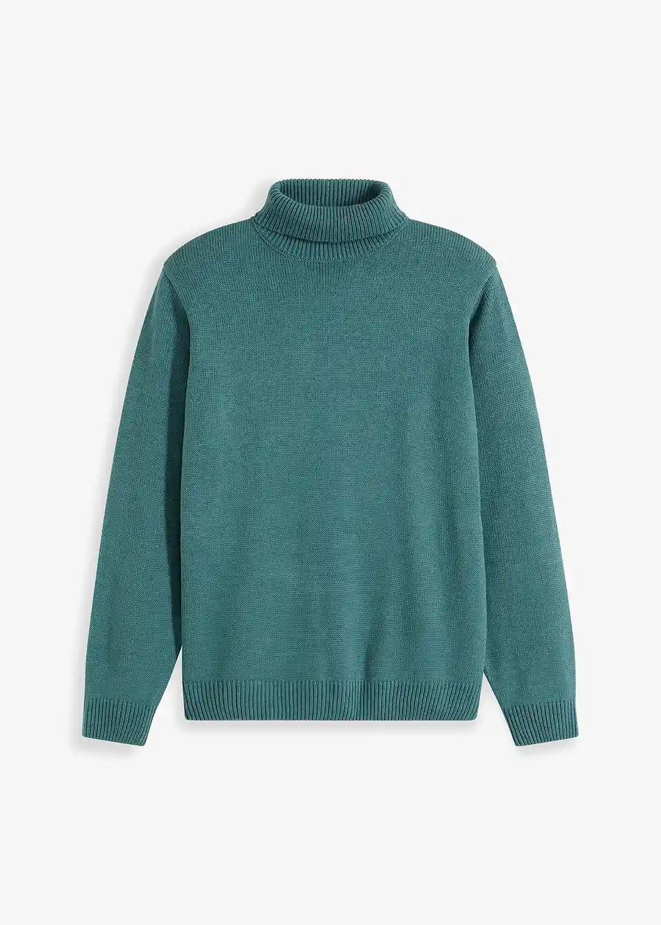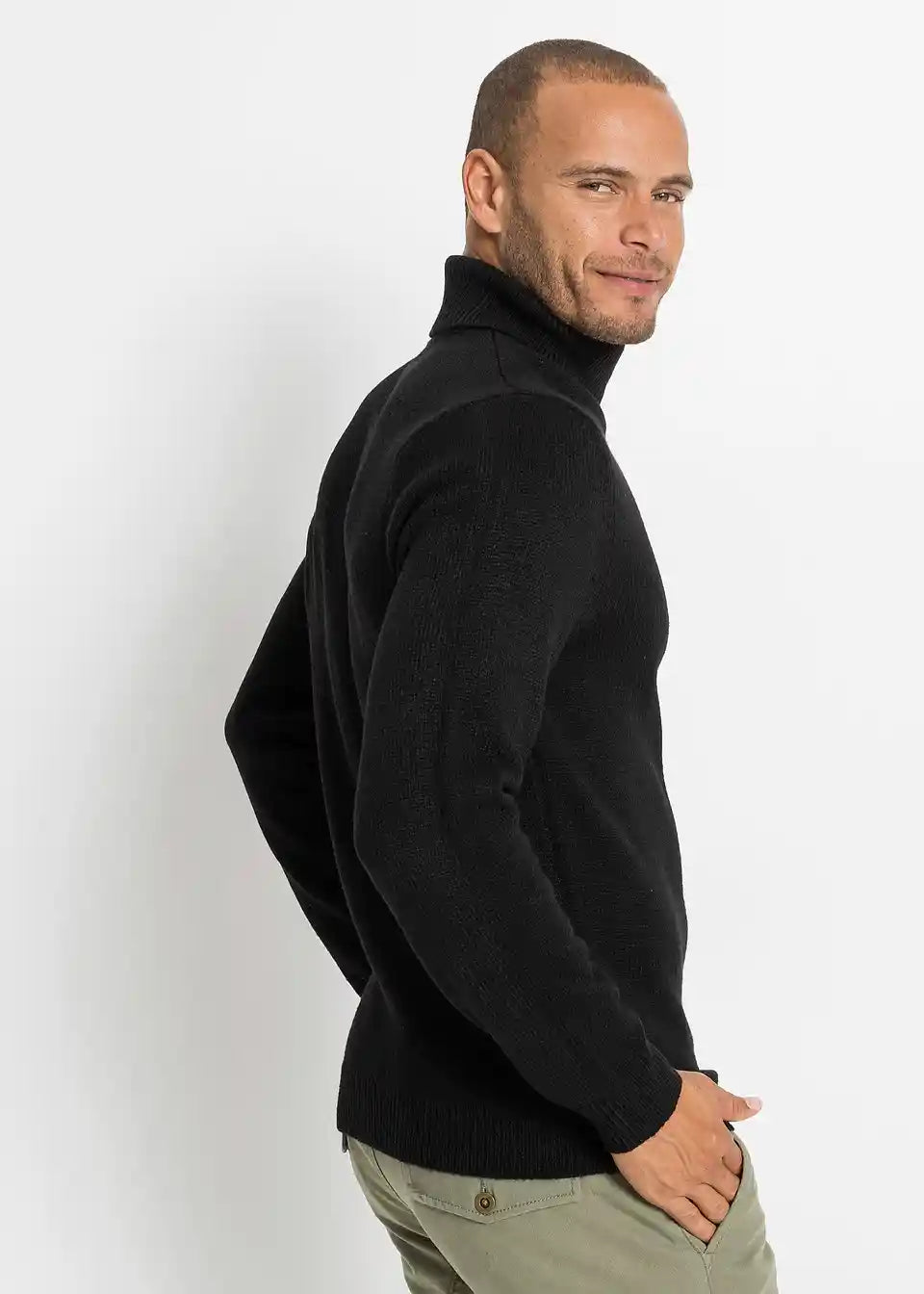 Čudovit osnovni pulover z visokim ovratnikom in rebrastimi zaključki