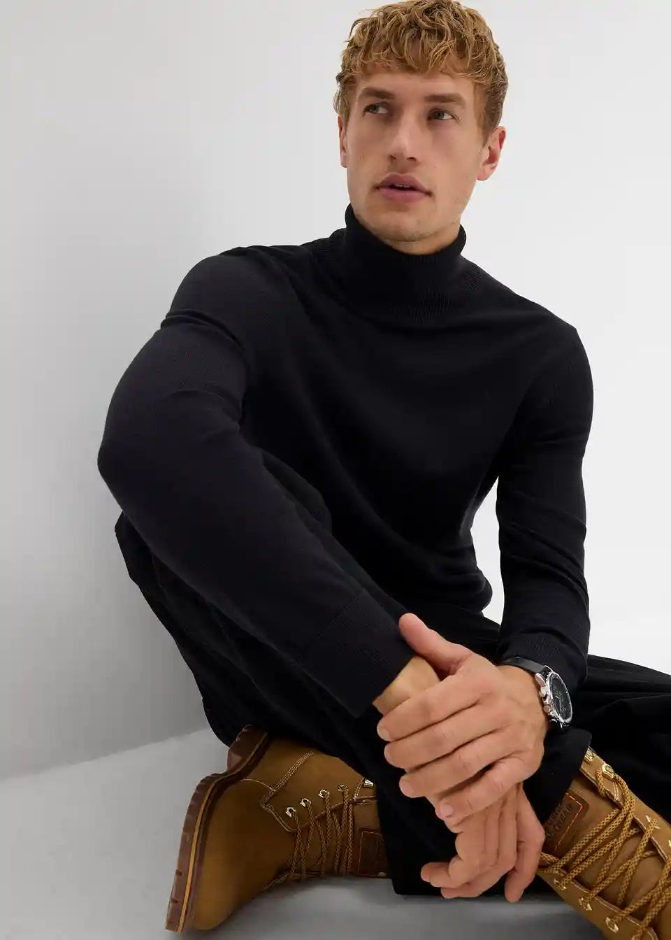 Fino pleten pulover s puli ovratnikom s plemenito merino volno v ozkem kroju