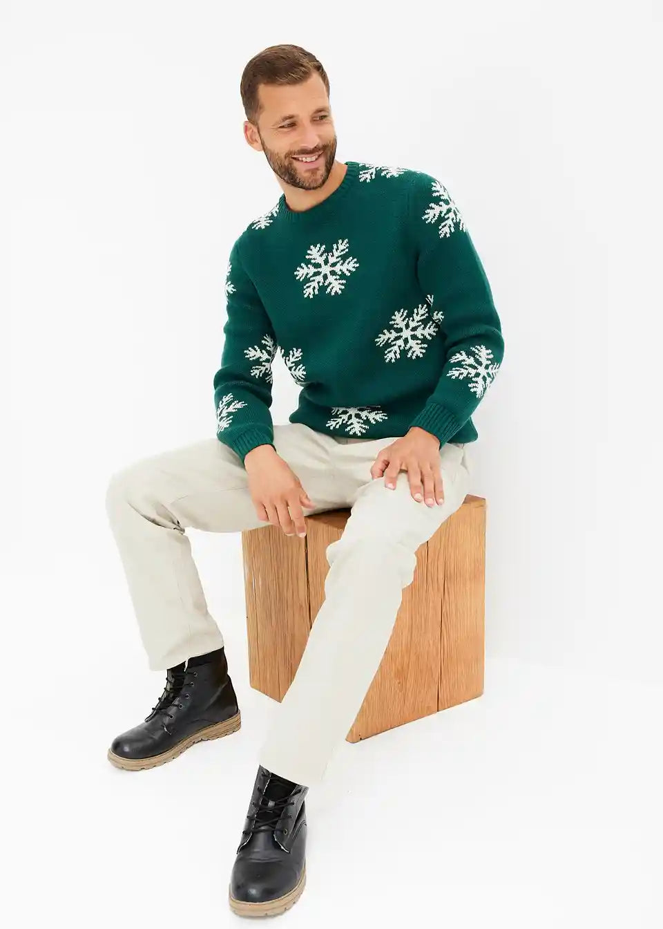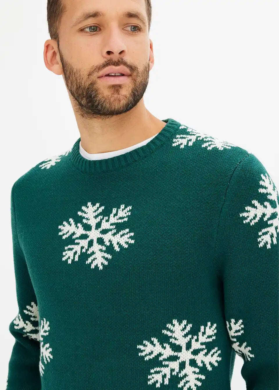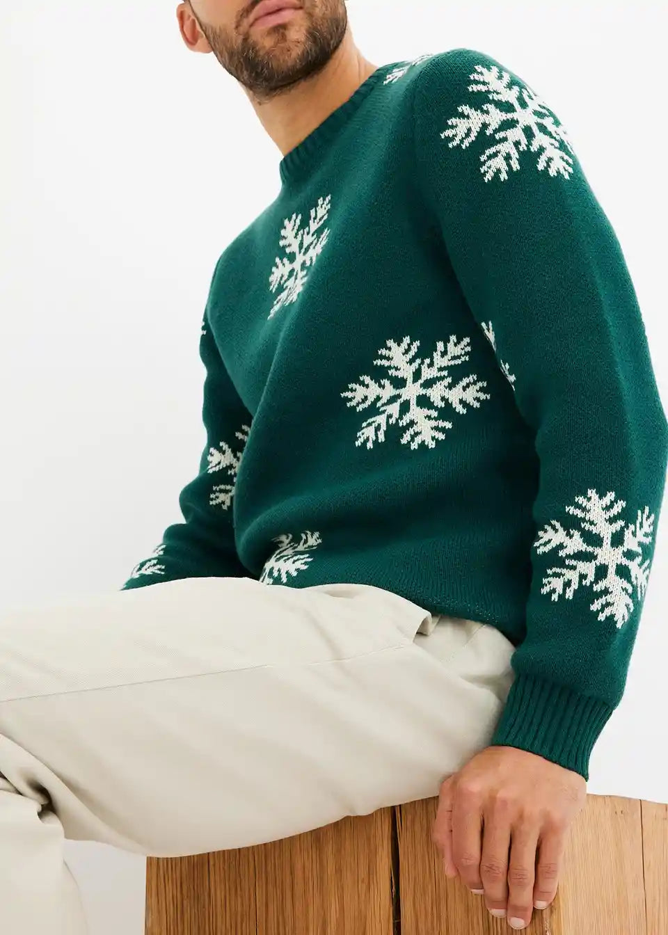 Ležeren pulover z zimskim tiskom, z recikliranim bombažem