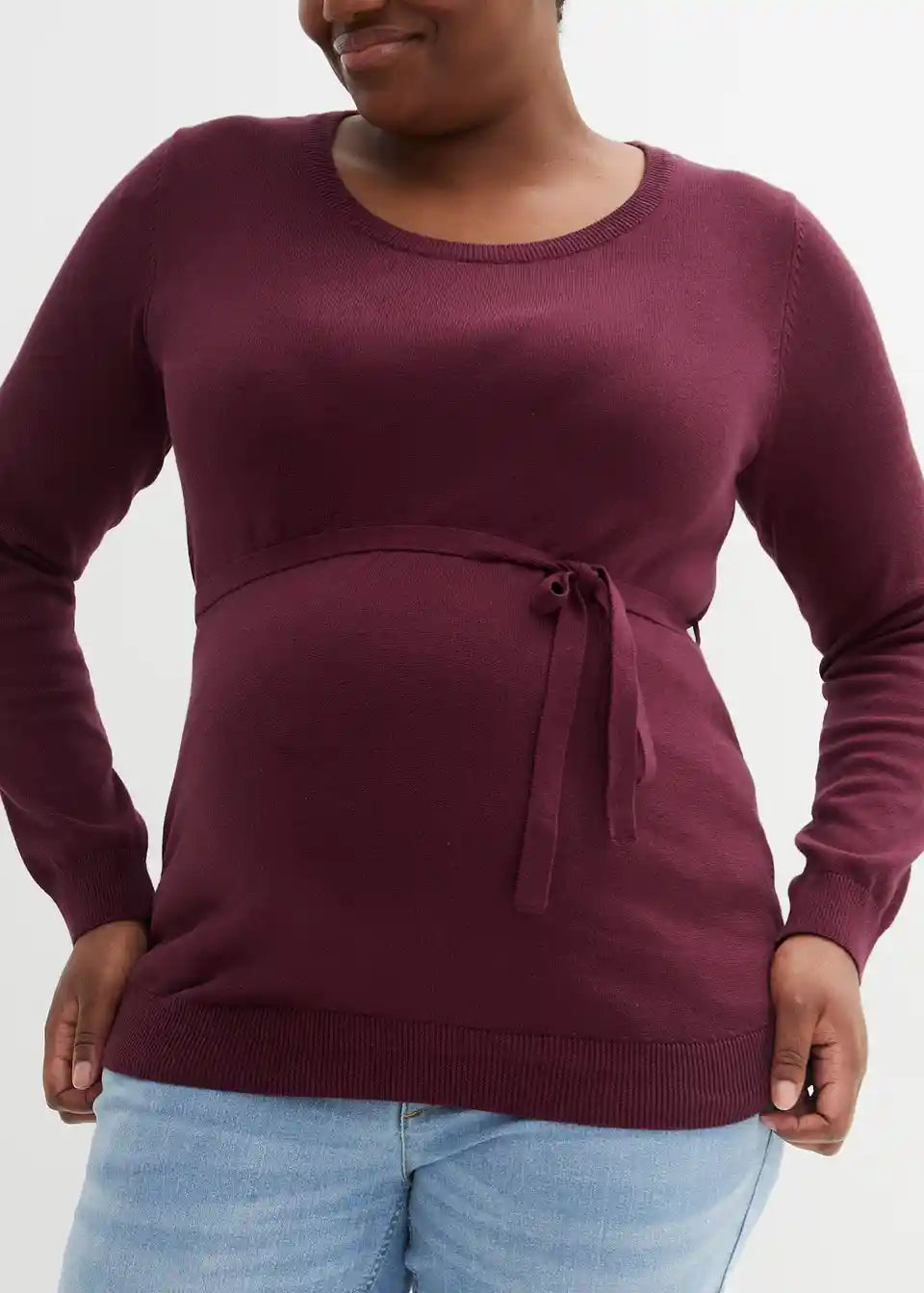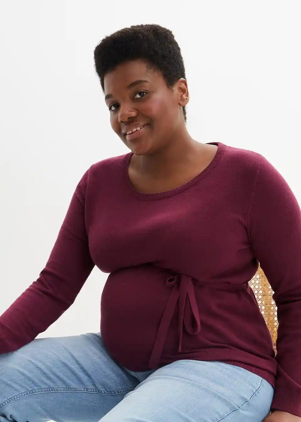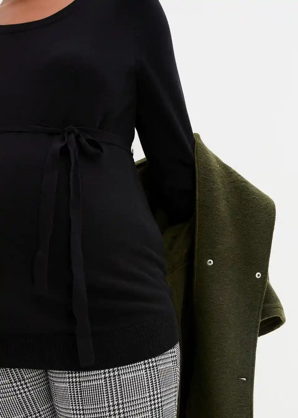 Nosečniški pulover iz čistega bombaža s trakom za zavezovanje