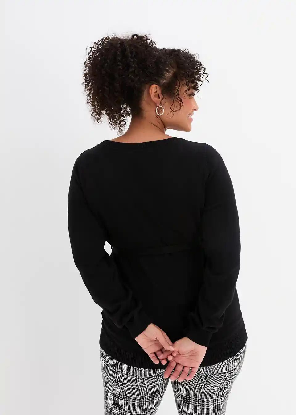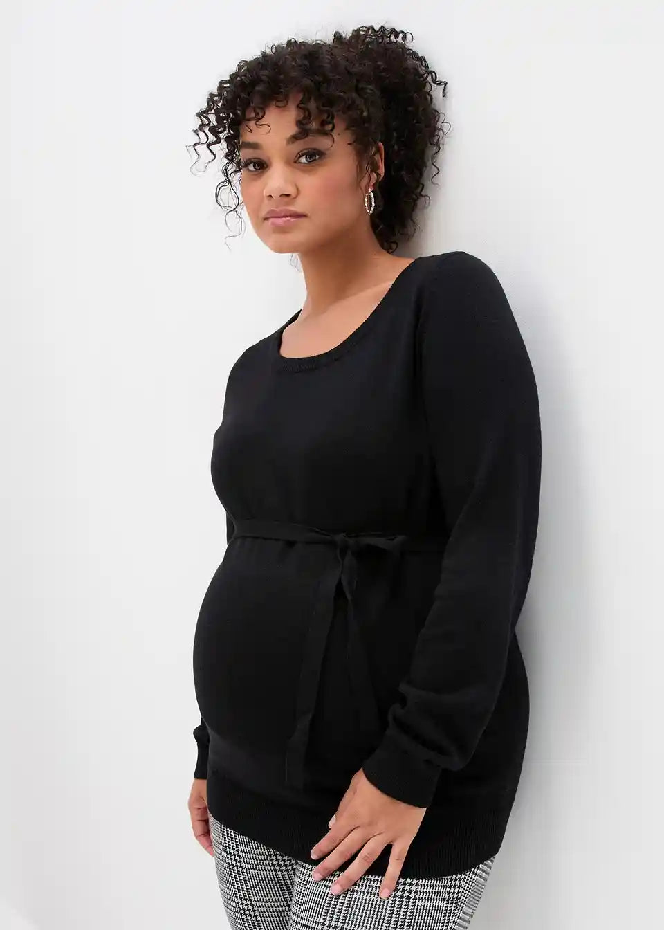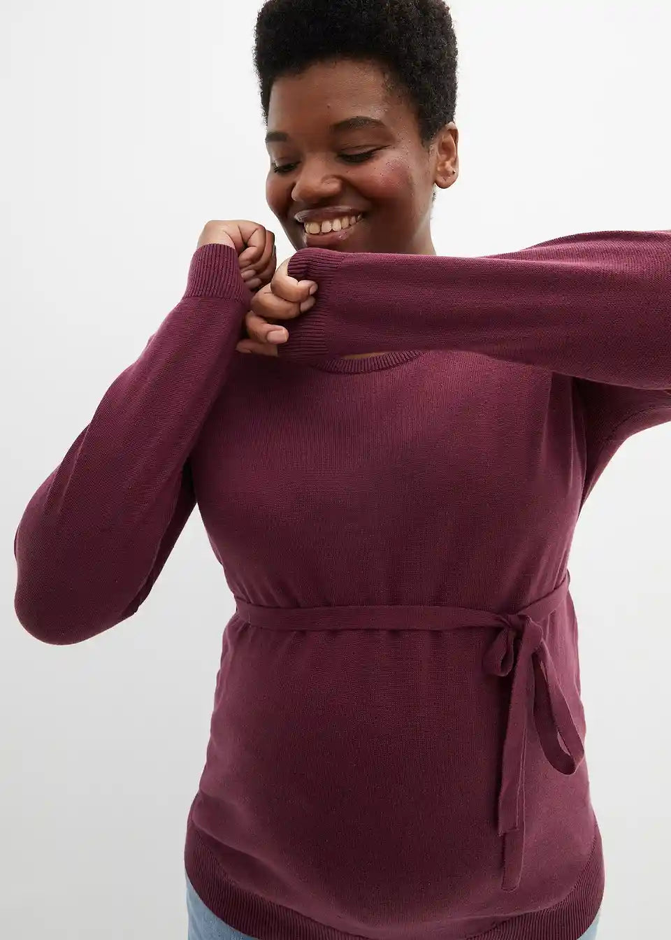 Nosečniški pulover iz čistega bombaža s trakom za zavezovanje