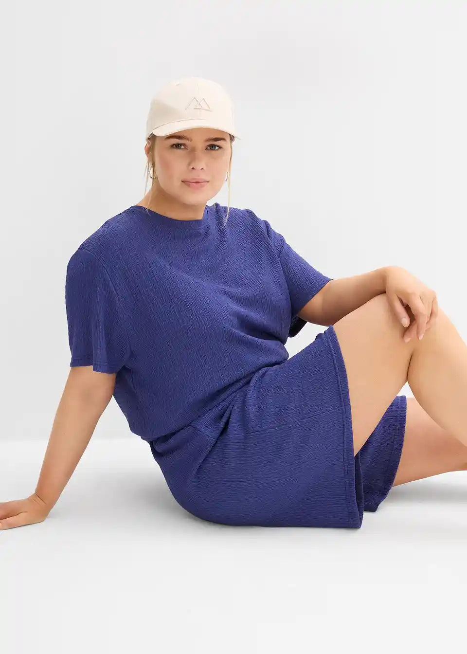 Pulz hlače iz rahlo strukturiranega materiala z udobnim pasom