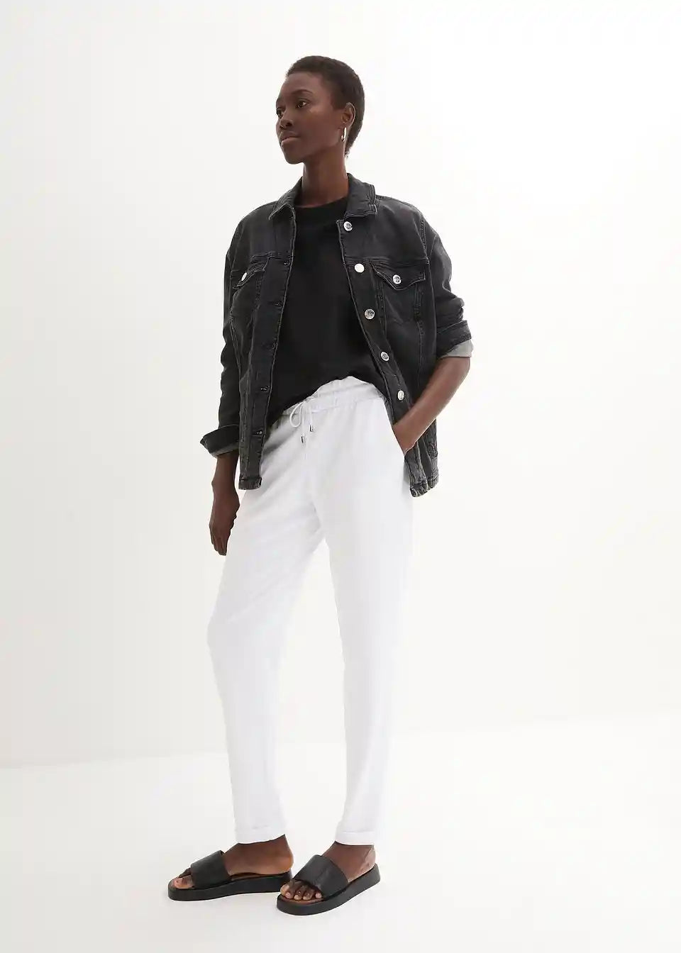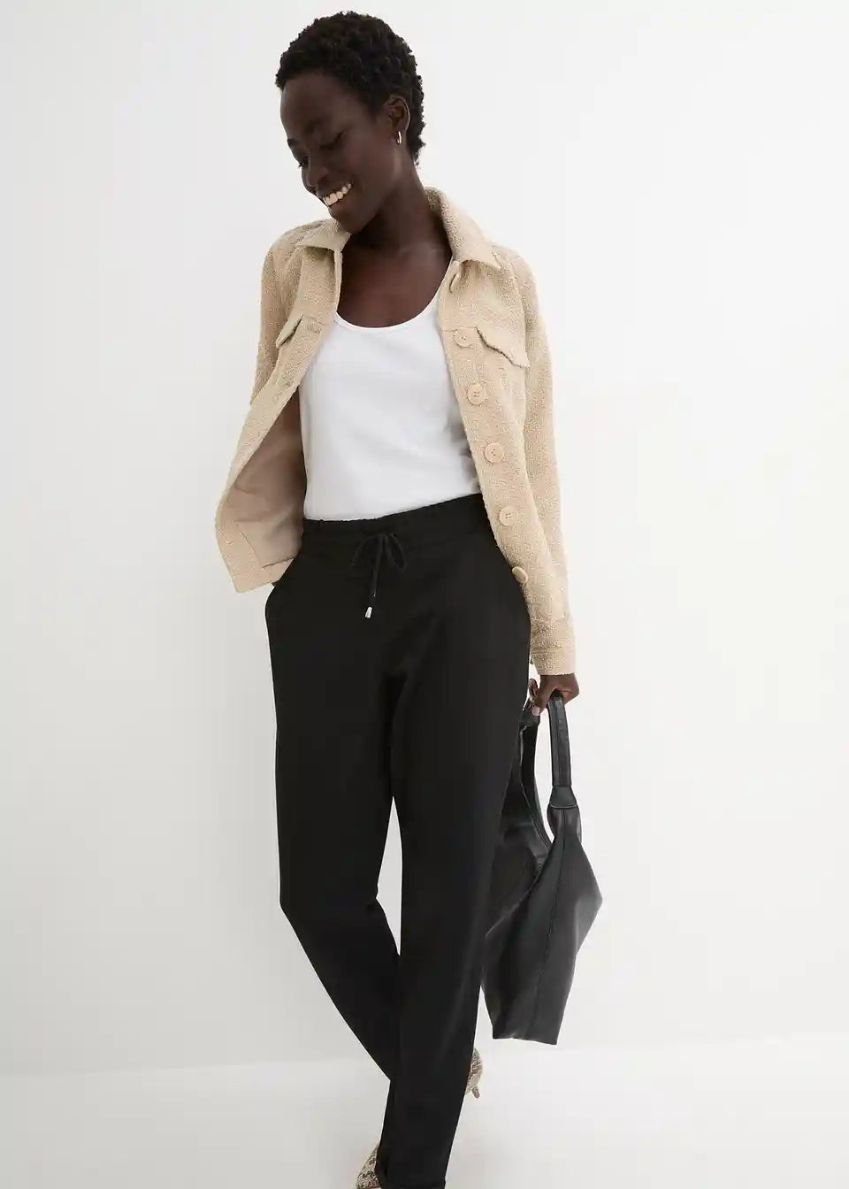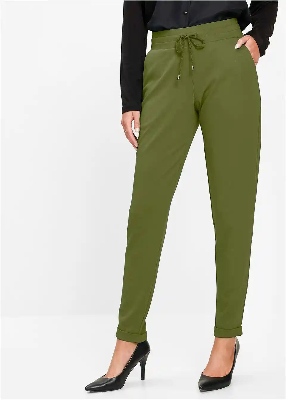 Hlače iz Punto Di Roma trikoja brez zapenjanja z elastičnim pasom