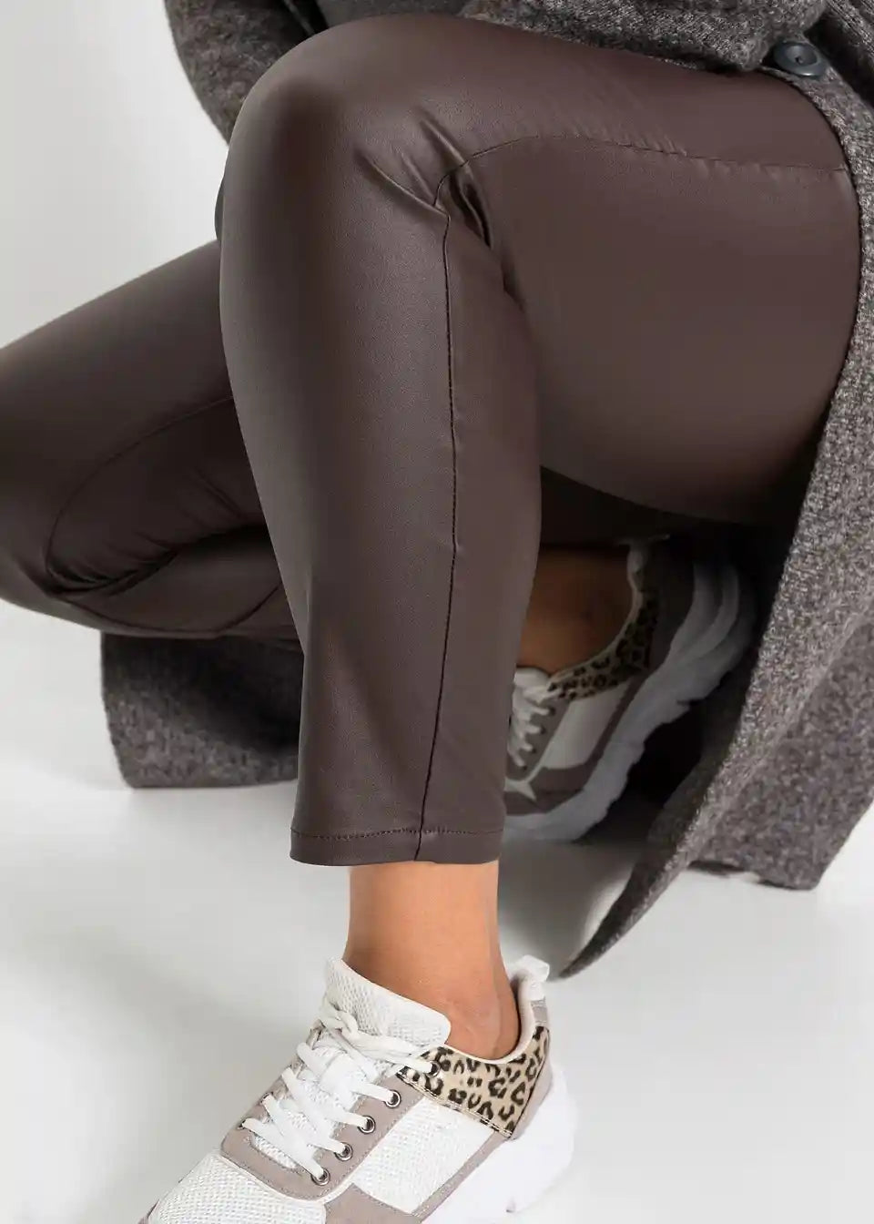 Moderen privlačen kos - Push-up raztegljive hlače v videzu usnja