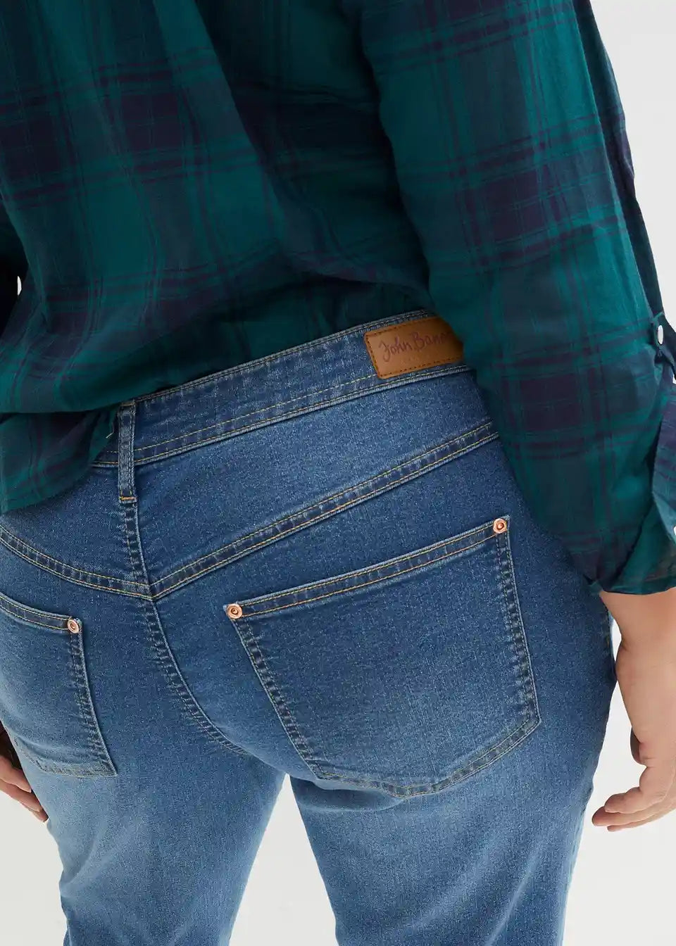 Ravne kavbojke s srednje visokim pasom in stretch materialom