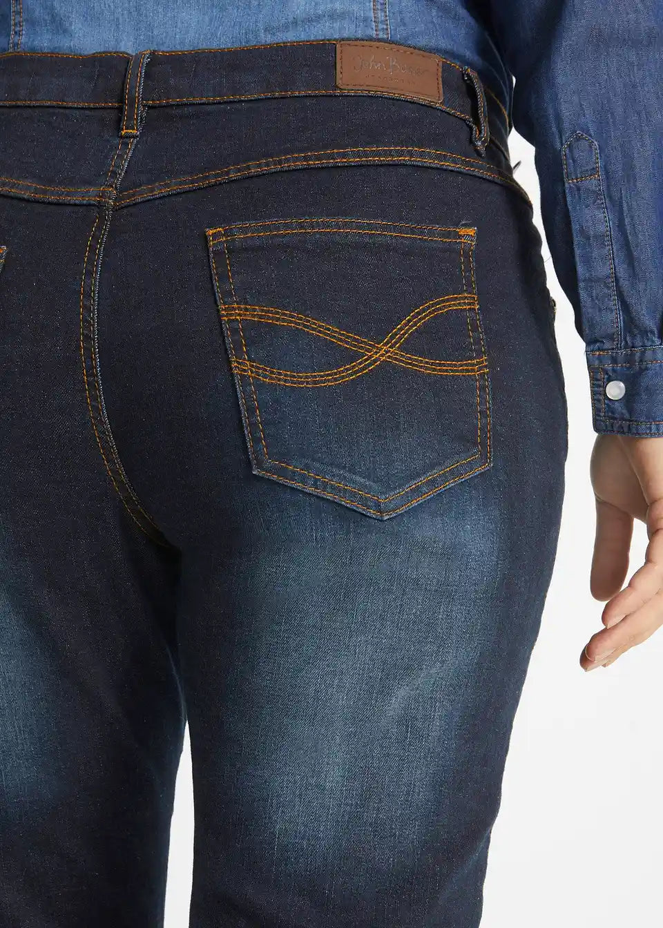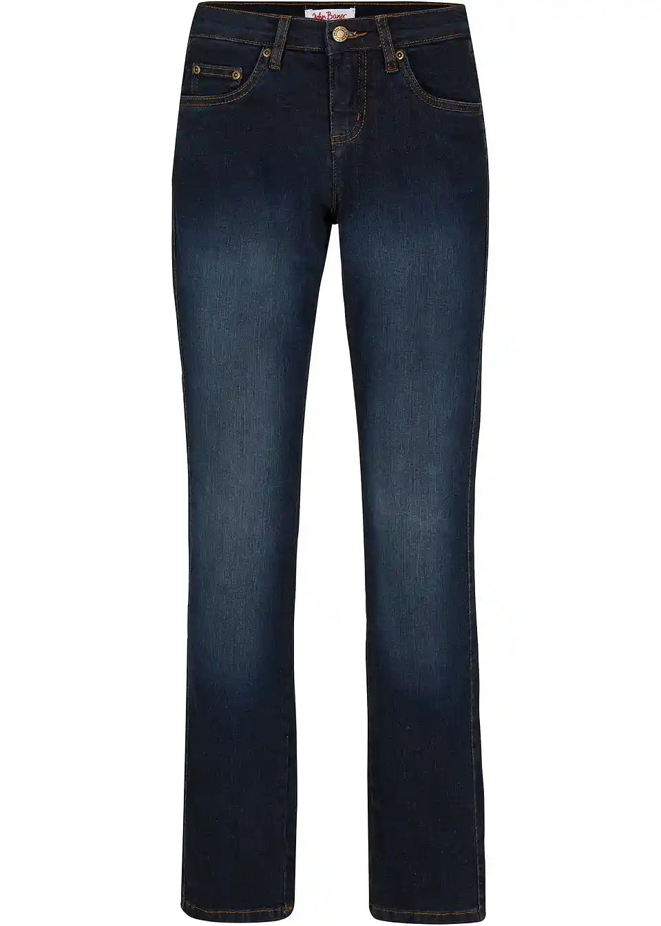 Bestseller Stretch Jeans znamke John Baner imajo učinek optičnega shujševalnika: sprednji šiv optično podaljša in zoži noge. Običajna širina na stegnih ter nekoliko nižja višina pasu zagotavljata udobje teh prilegajočih se jeans hlač. Jeans hlače v 5-žepni obliki z ravno krojenimi hlačnicami so videti sproščene in jih lahko kombinirate k številnim različnim outfitom. Še posebej v kombinaciji z visokimi čevlji in modnimi topi te Stretch Jeans odlično poudarijo postavo.
