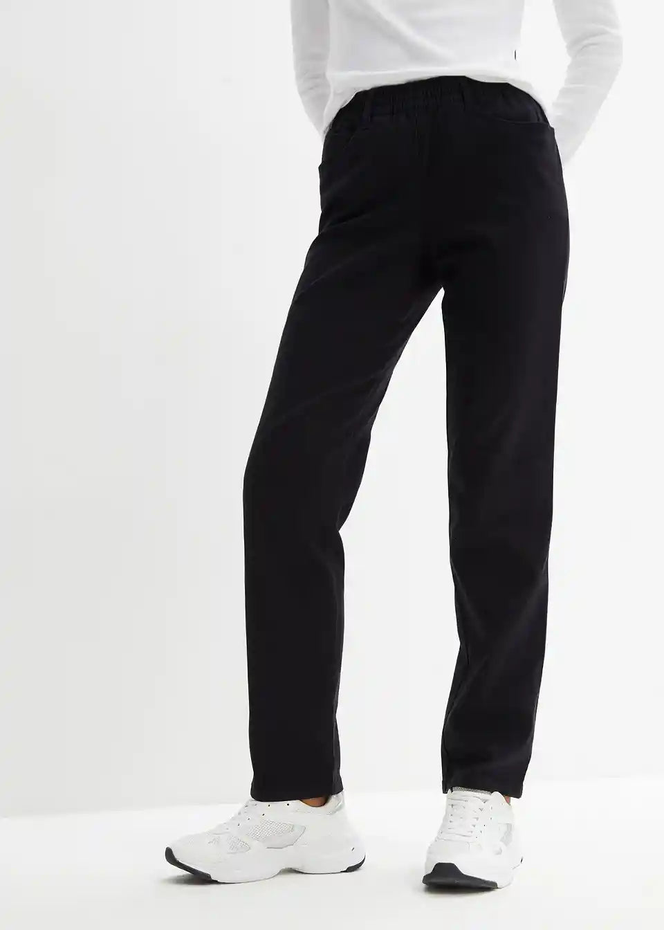 Udobne raztegljive hlače z elastičnim pasom in ravnimi hlačnicami